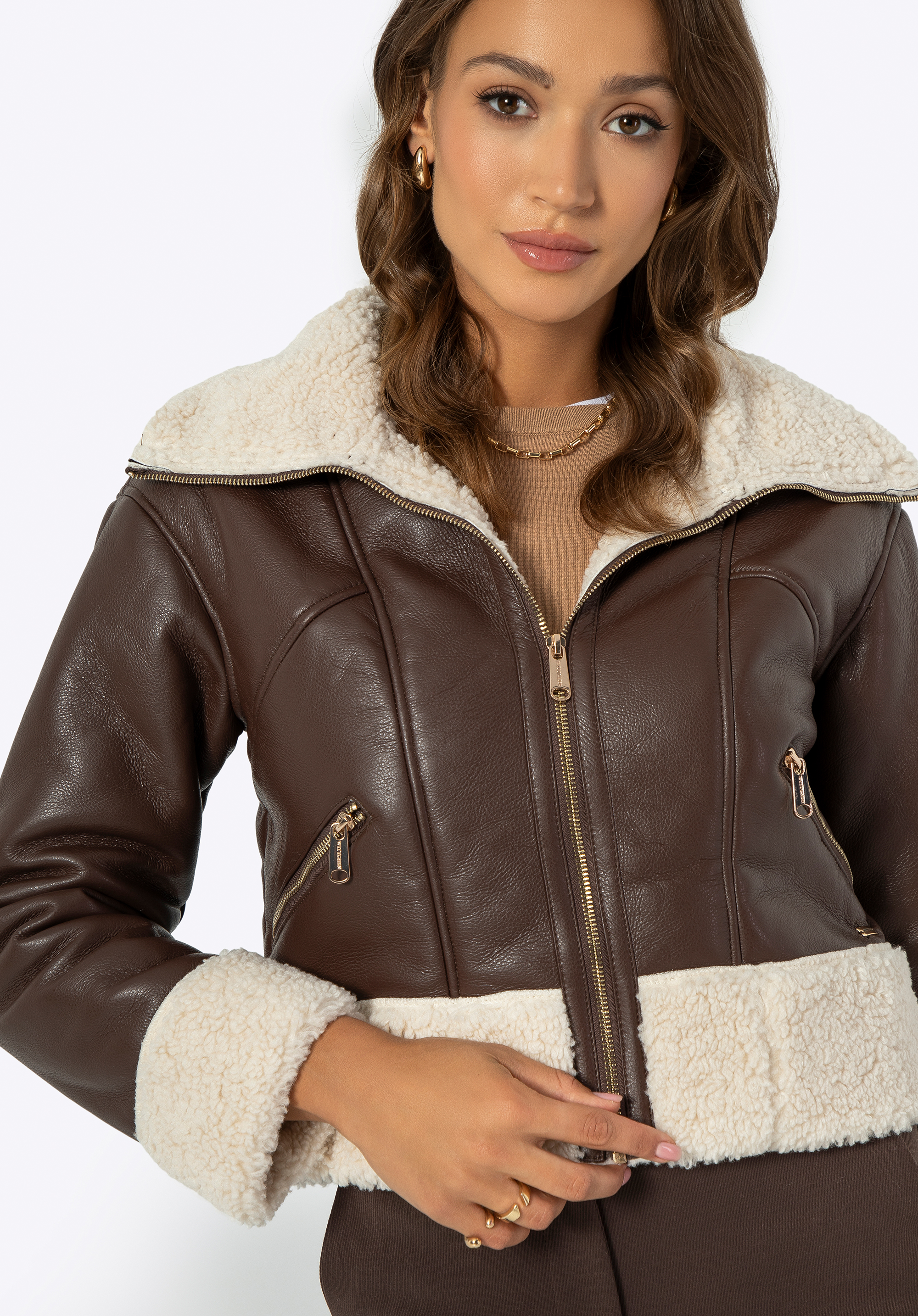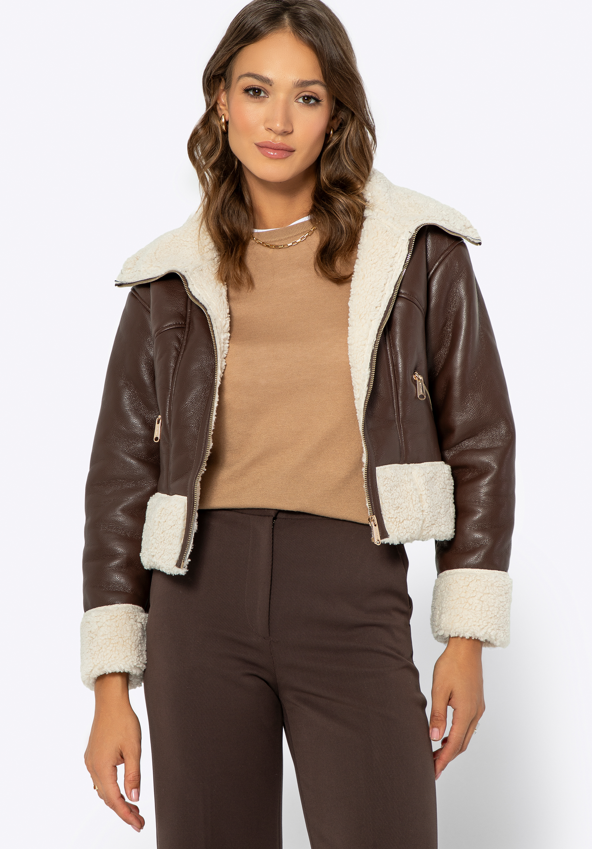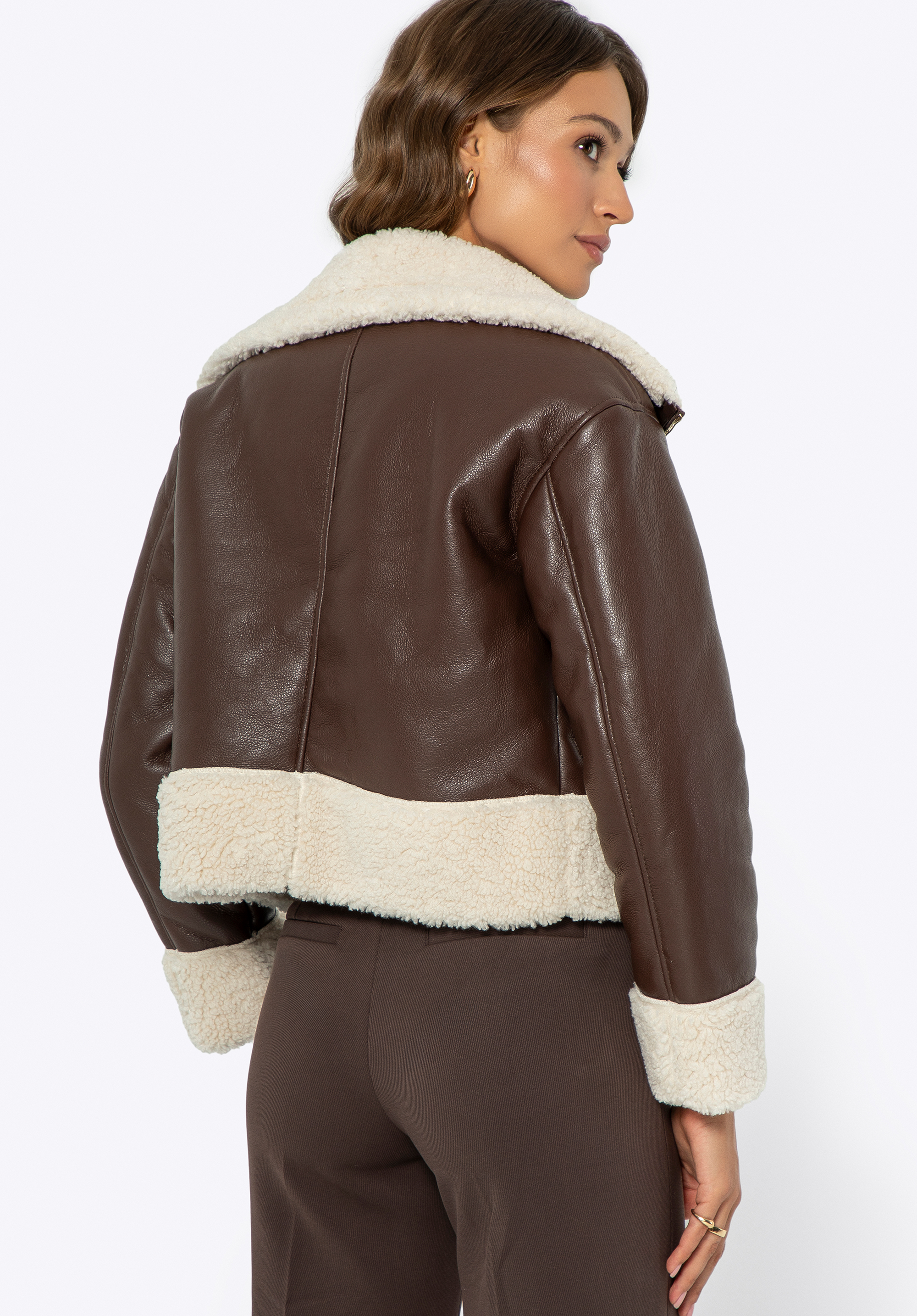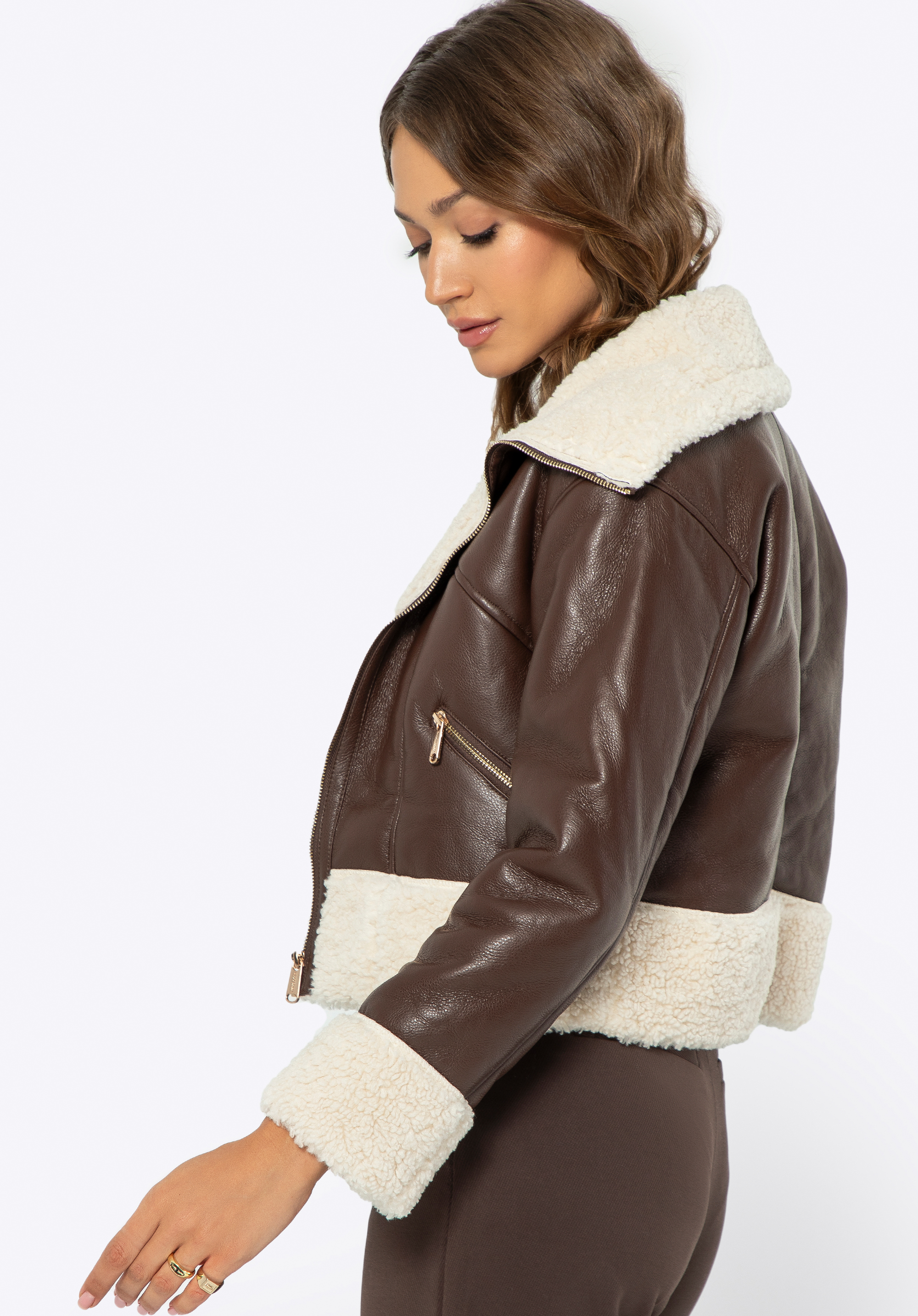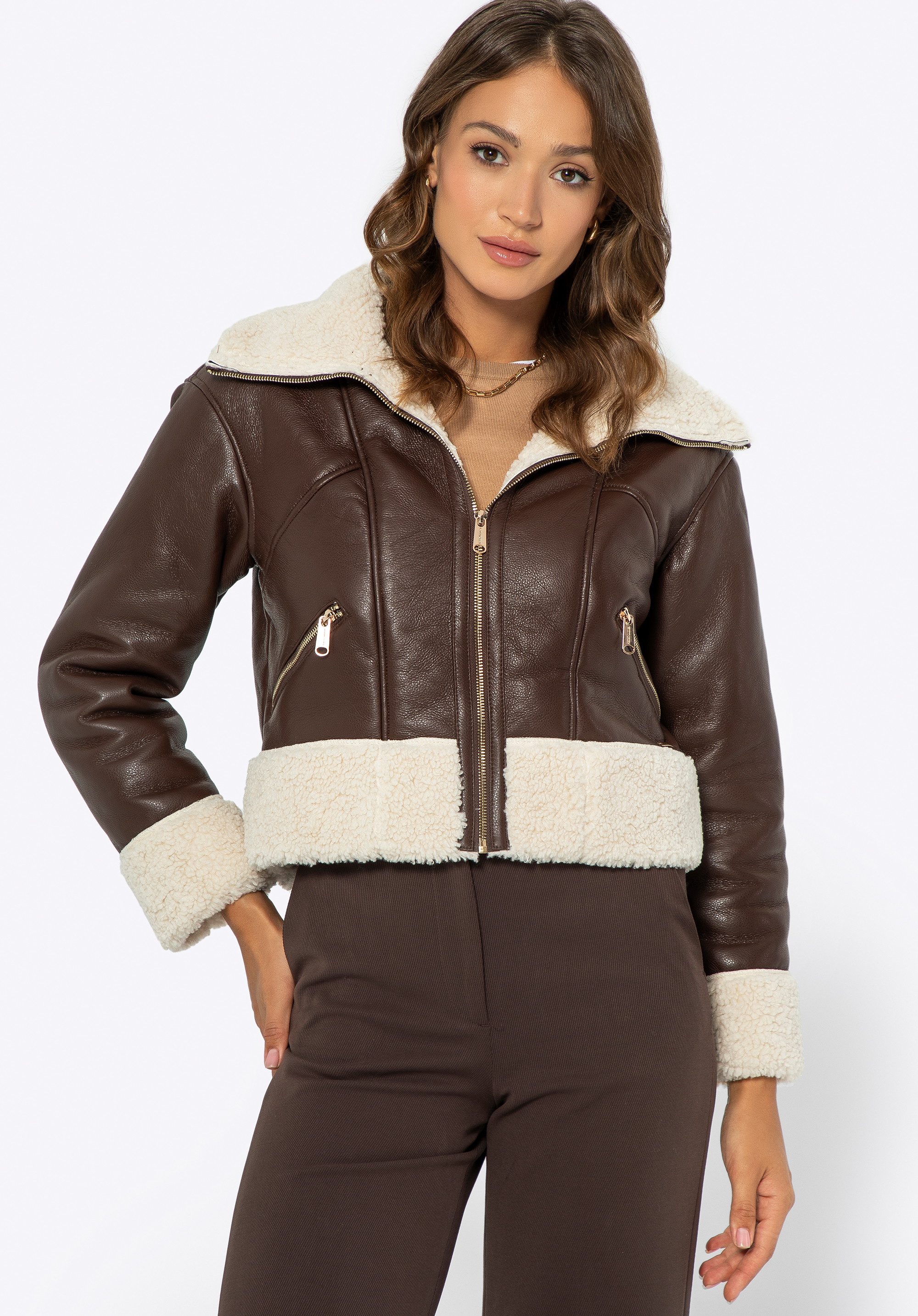 Відкрийте для себе ідеальне поєднання сучасного дизайну та комфорту з жіночою курткою з екошкіри. Цей унікальний дизайн було створено з урахуванням холодних днів і пропонує все, що вам потрібно, щоб виглядати та почуватися чудово. М''яка внутрішня підкладка зі штучного хутра забезпечує виняткове задоволення від носіння, а простий крій робить куртку надзвичайно універсальною. Вона ідеально підійде як для повсякденного, так і для елегантного стилю, додаючи нотку розкоші та тепла у ваш гардероб.