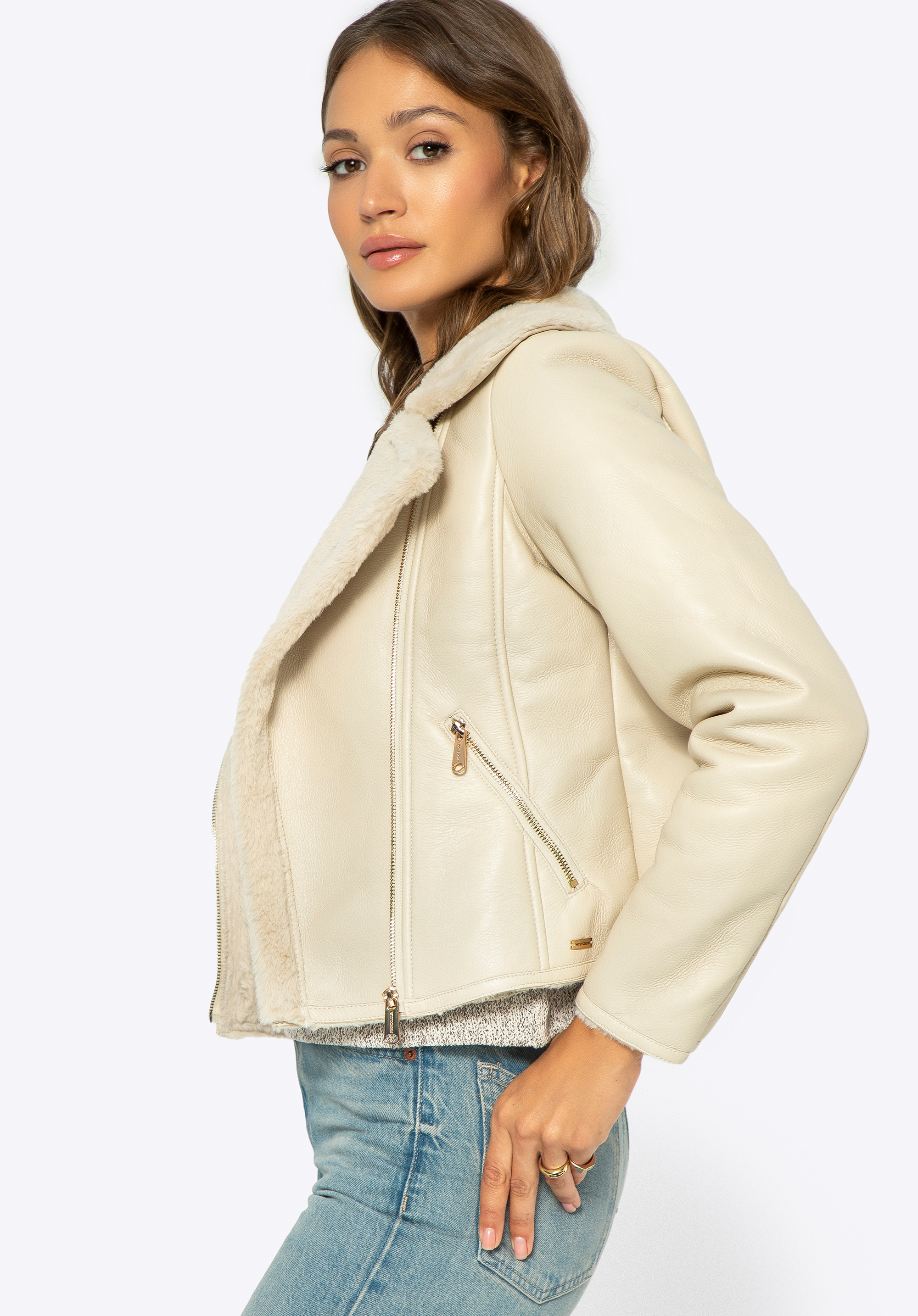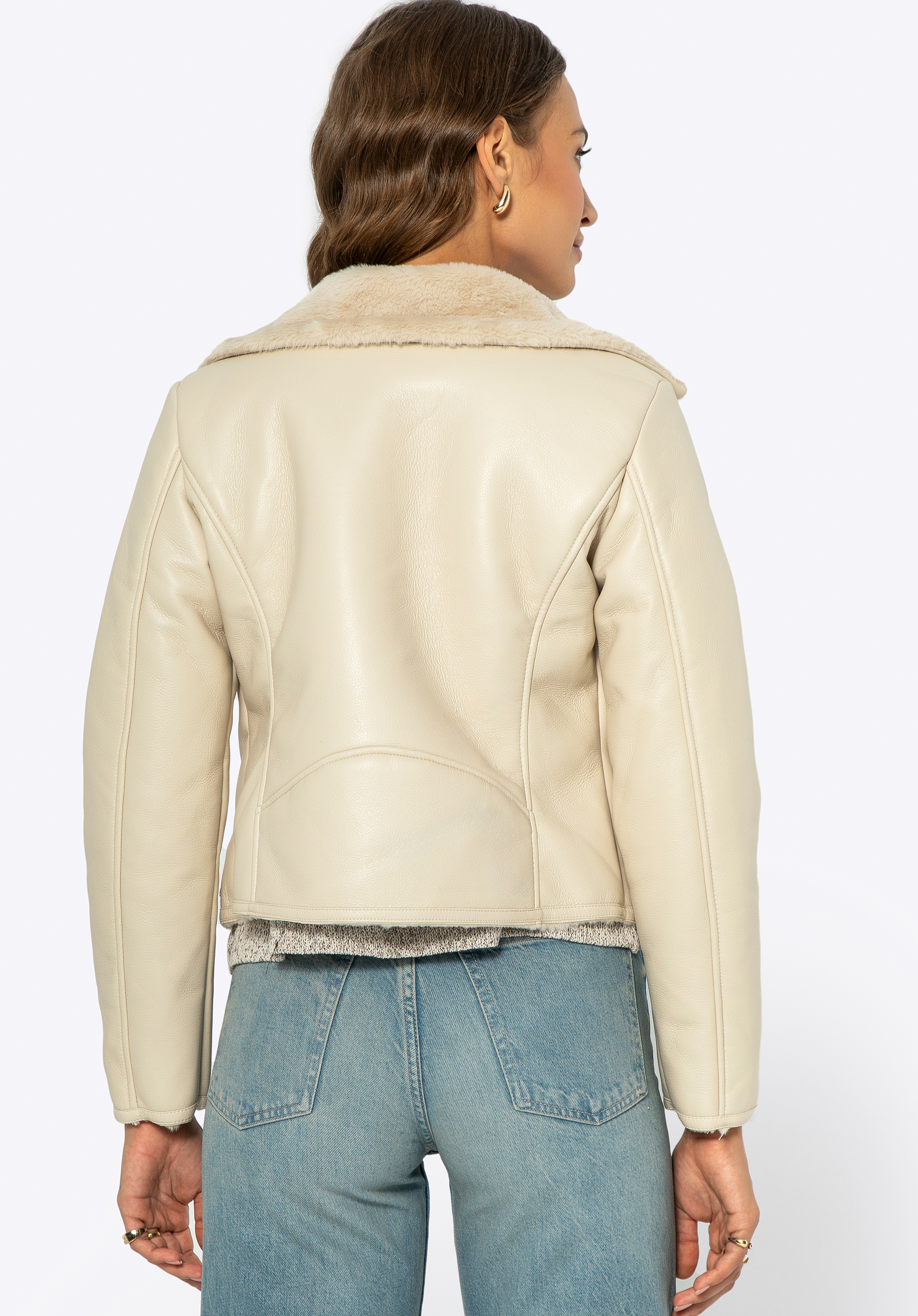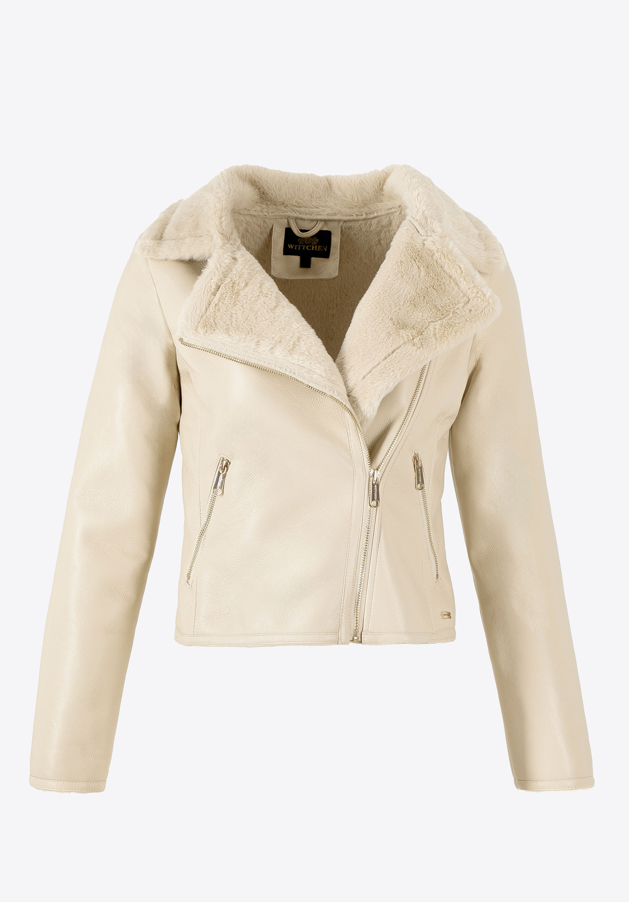 Ось байкерська куртка, яка поєднує в собі все, що вам подобається в моді: сучасний дизайн, комфорт і елегантність. Ця жіноча куртка з екошкіри - ідеальний вибір для жінок, які хочуть виділятися не тільки стилем, але й увагою до деталей. Штучне хутро на комірі додає розкоші та тепла, ідеально підходить для холодних днів. Функціональні діагональні кишені на блискавці не тільки стильні, але й практичні, ідеально підходять для зберігання дрібниць.
