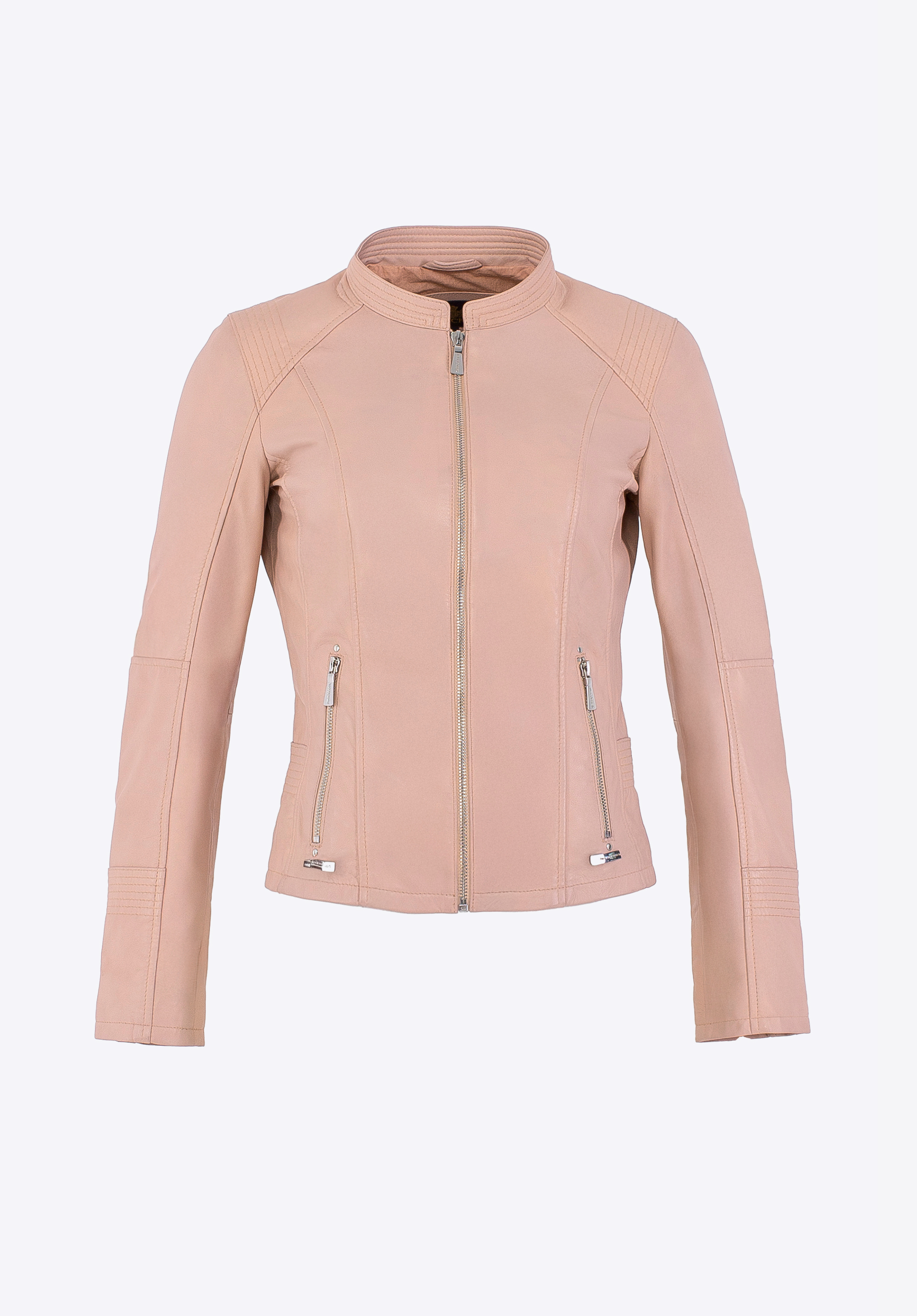 - Делікатний комір-стійка: Не тільки підкреслює елегантність куртки, але й забезпечує додатковий захист від вітру.