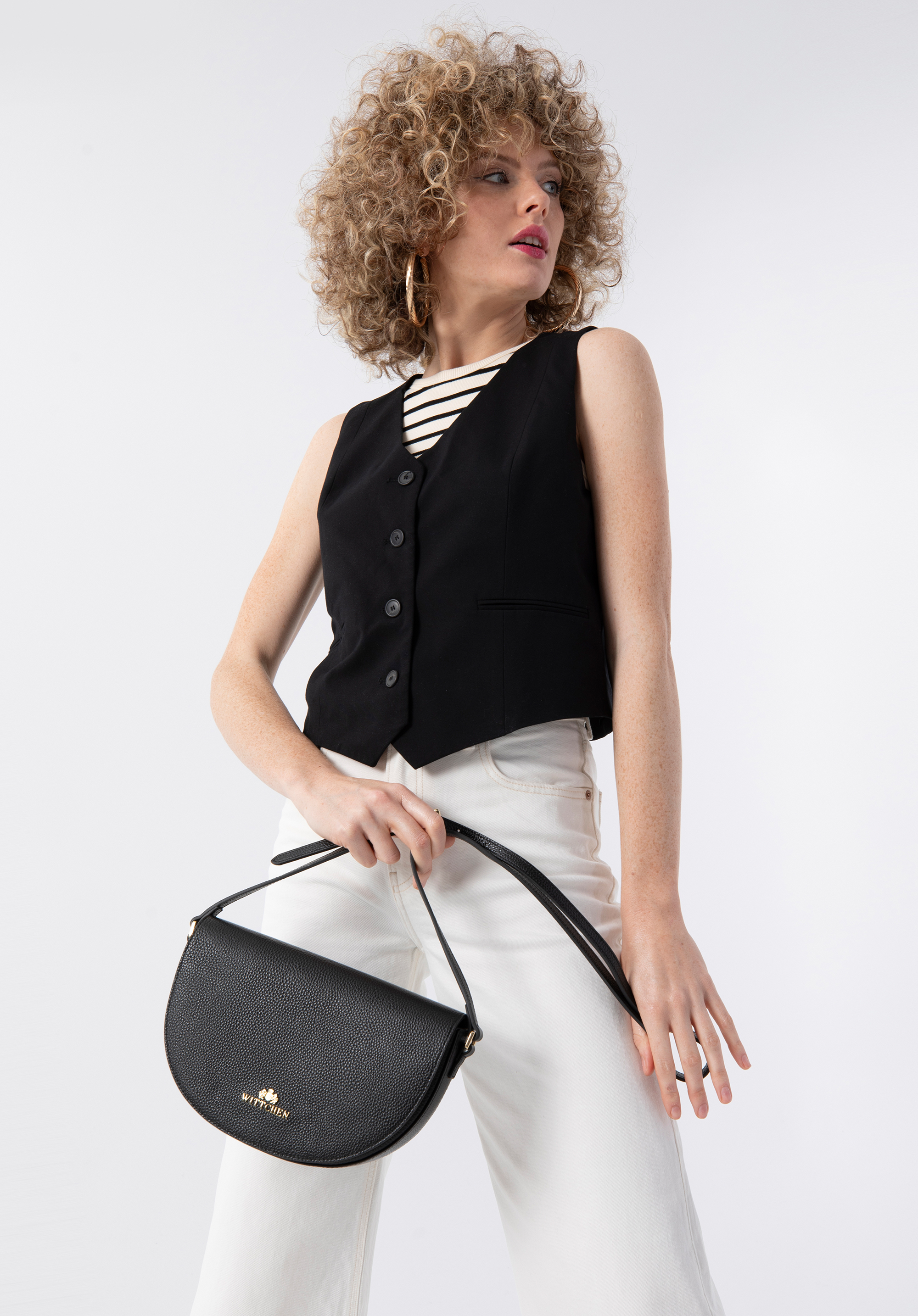 Ця незмінна жіноча підсідельна сумка ідеально підійде кожному любителю класичного стилю. Він виготовлений із високоякісної галькової шкіри та досить тонкий, ідеально підходить для носіння таких необхідних речей, як невеликий гаманець, телефон, серветки та ваша улюблена губна помада. Стиль сумки-сідла доповнює практично будь-який одяг, будь то ваше улюблене літнє плаття або пуховик і черевики. Візьміть його з собою на весілля, у кіно чи вечірні прогулянки у вихідні — ви виглядатимете елегантно в будь-якій ситуації. Сідельна сумка з галькової шкіри — це універсальний аксесуар, який залишатиметься стильним протягом багатьох сезонів, що робить його незамінним гардеробом.
