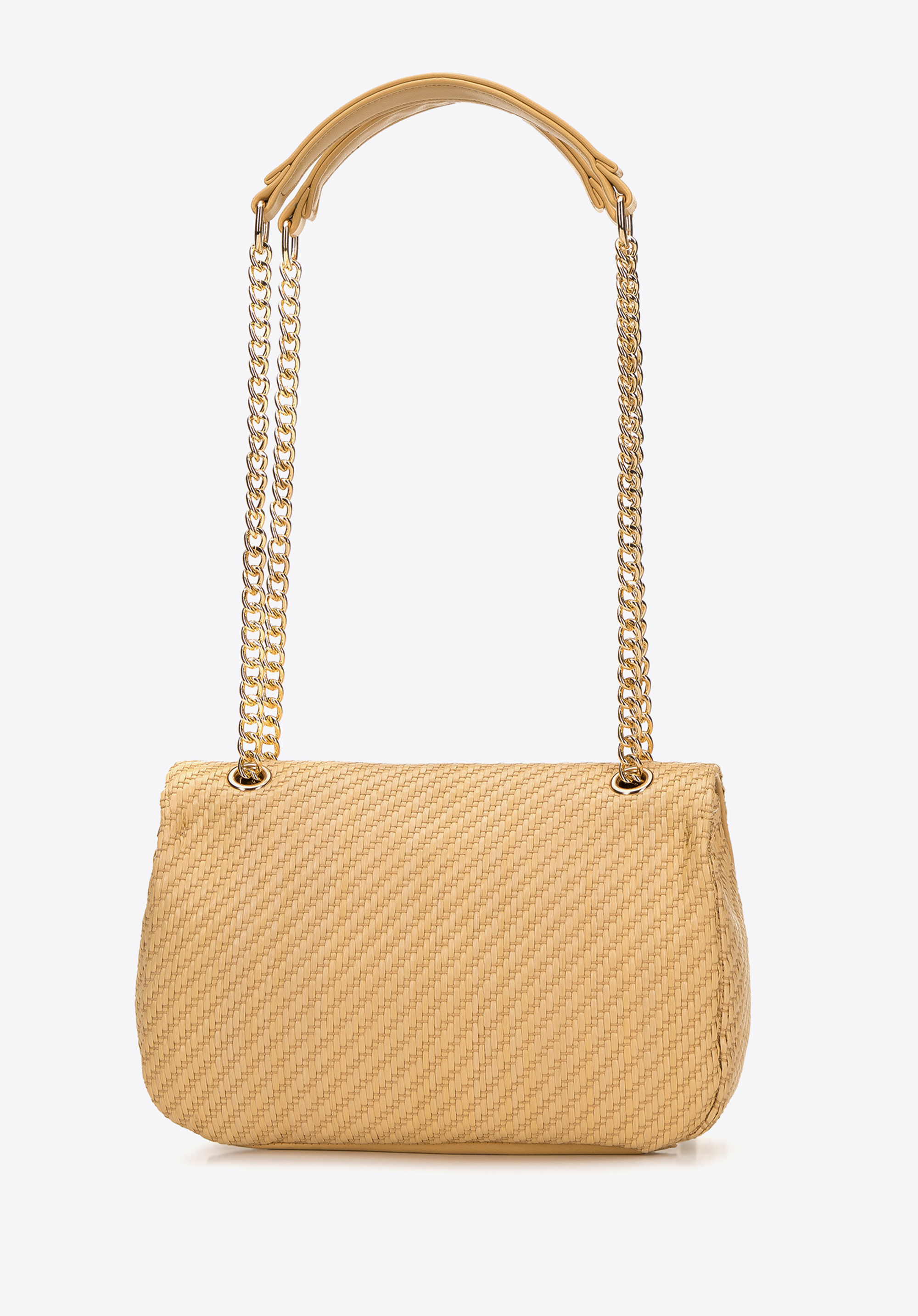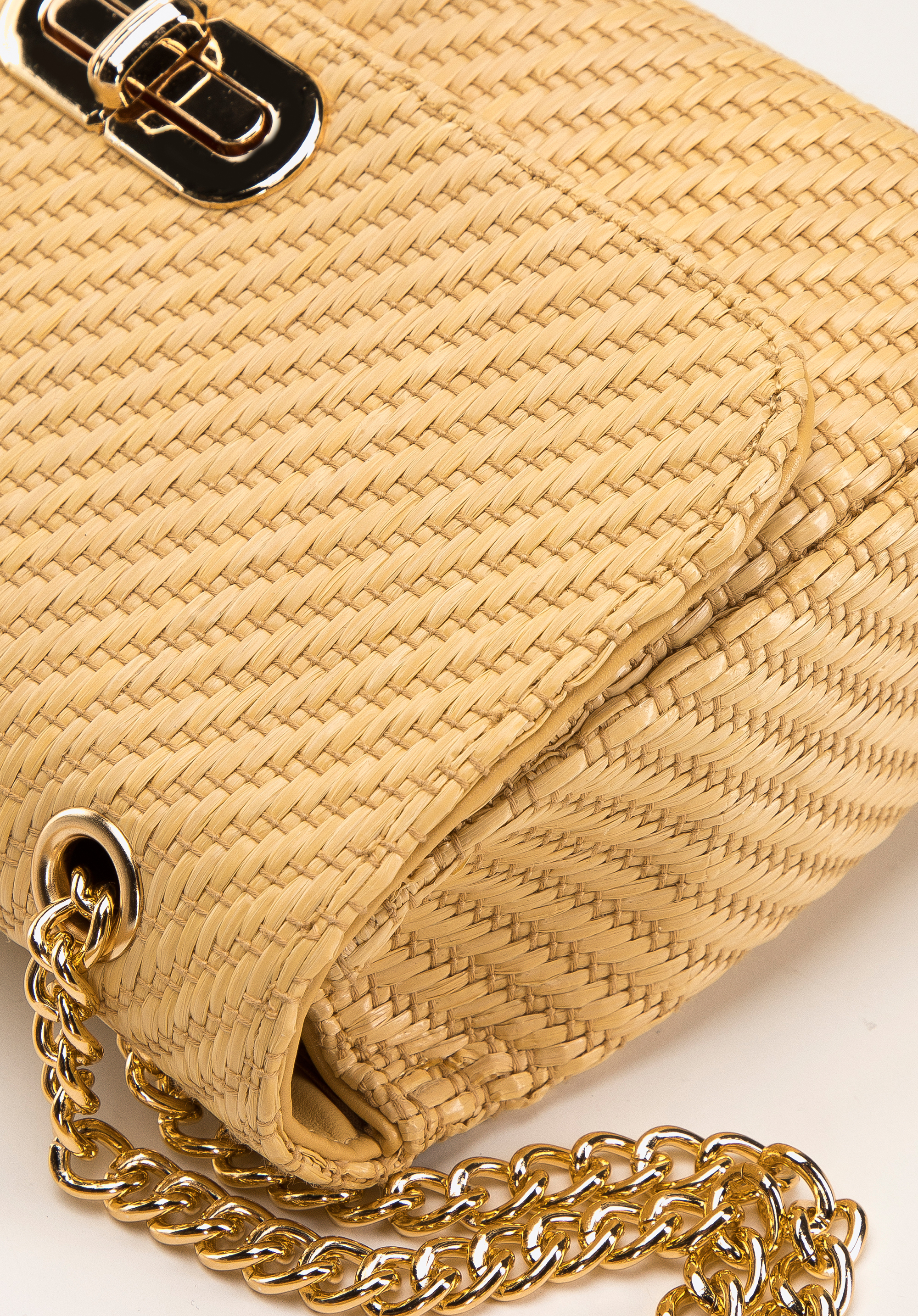 Ця маленька жіноча сумка додасть характеру будь-якому вашому літньому образу. Виготовлена з більш міцного варіанту солом''яного плетіння. Блискучий ланцюжок додає їй блиску, і ви можете носити її, як завгодно: складіть навпіл і повісьте сумку на плече, або використайте її на всю довжину і перекиньте поперек. Всередину можна помістити гаманець, телефон, крем для рук і улюблену помаду. Одягайте її з джинсовою сукнею або поєднуйте з широкими брюками і футболкою - ви будете виглядати стильно в будь-якій ситуації. Жіноча плетена сумка на ланцюжку - відмінний вибір як для прогулянки по пляжу, так і для відпустки.
