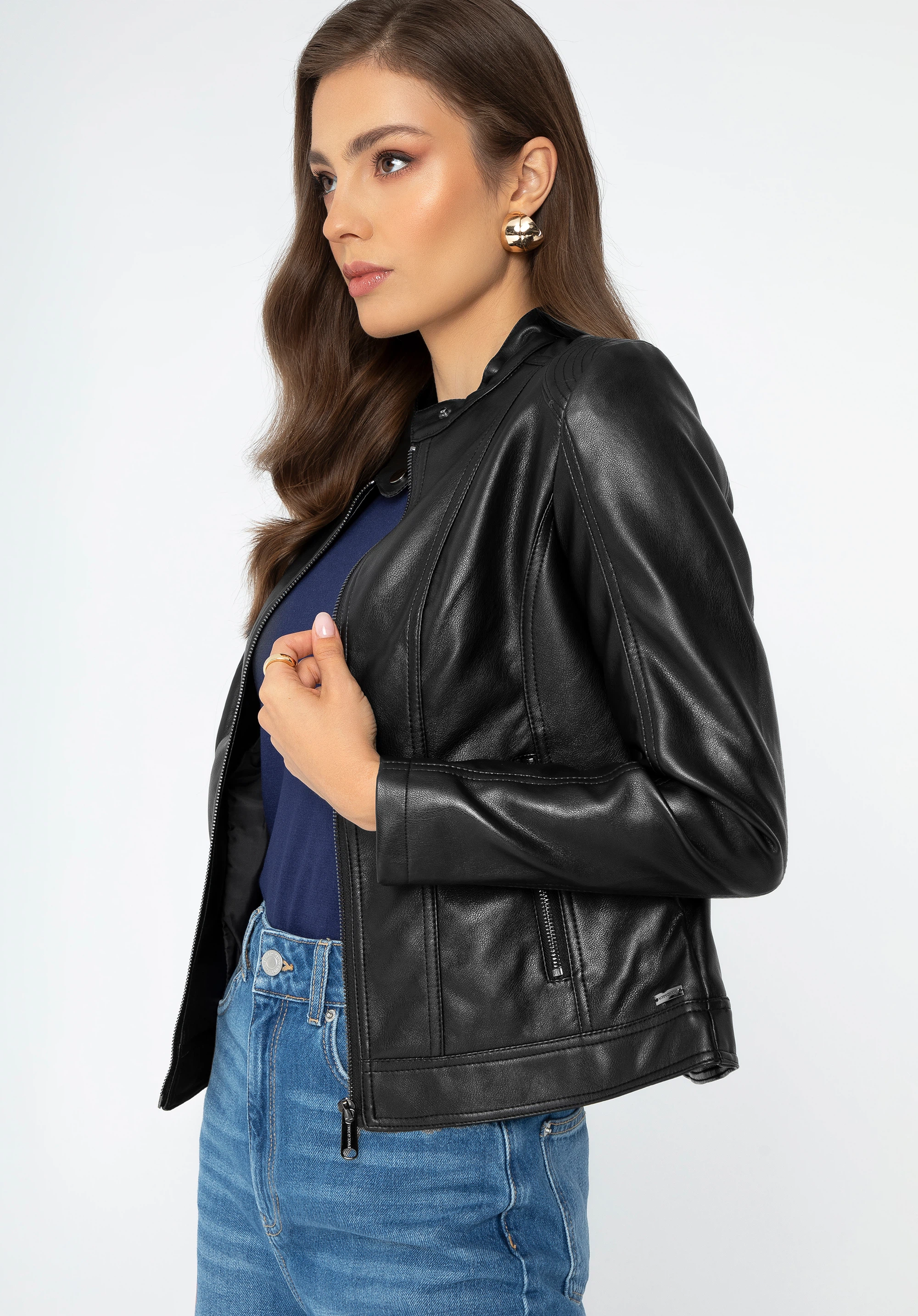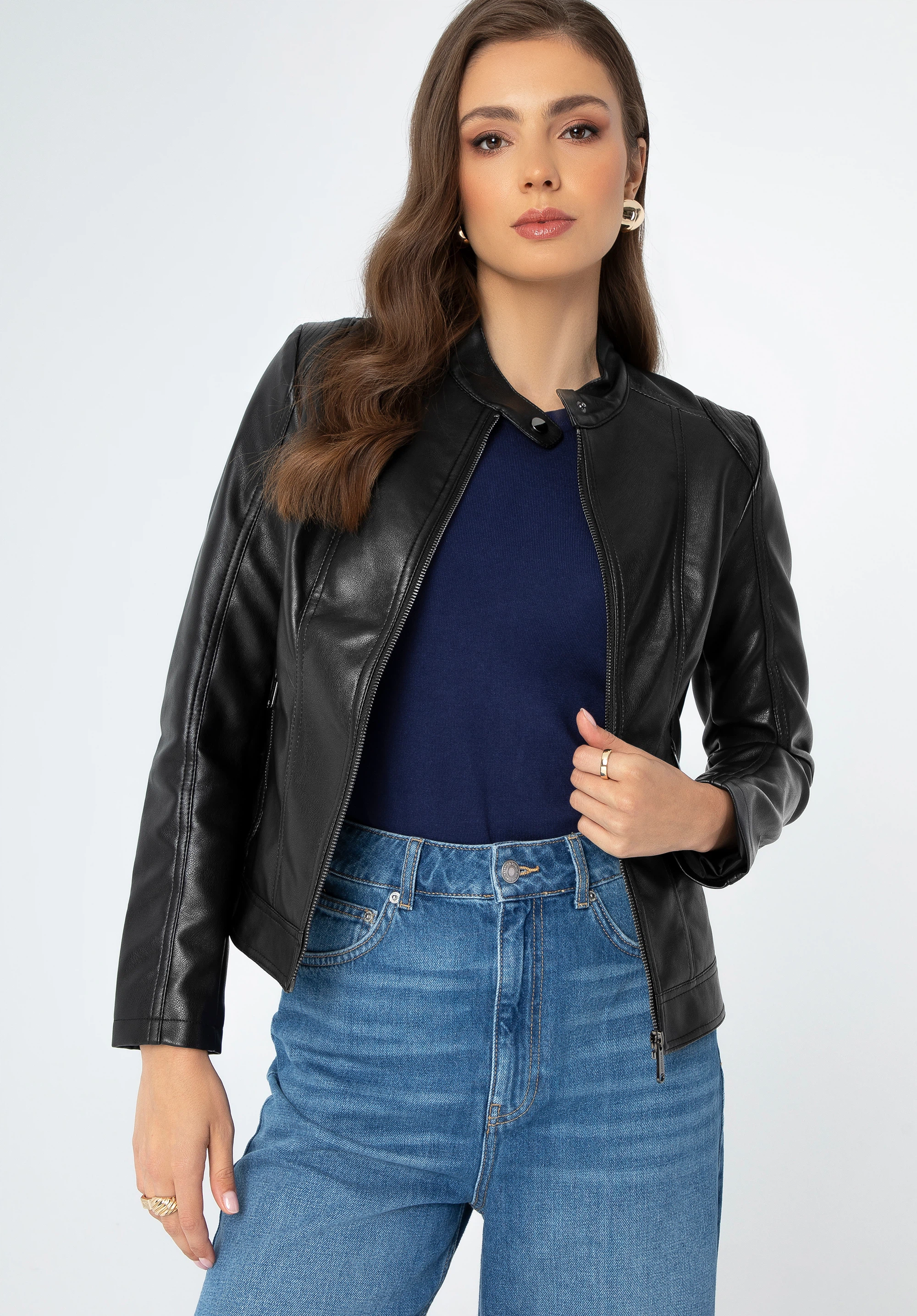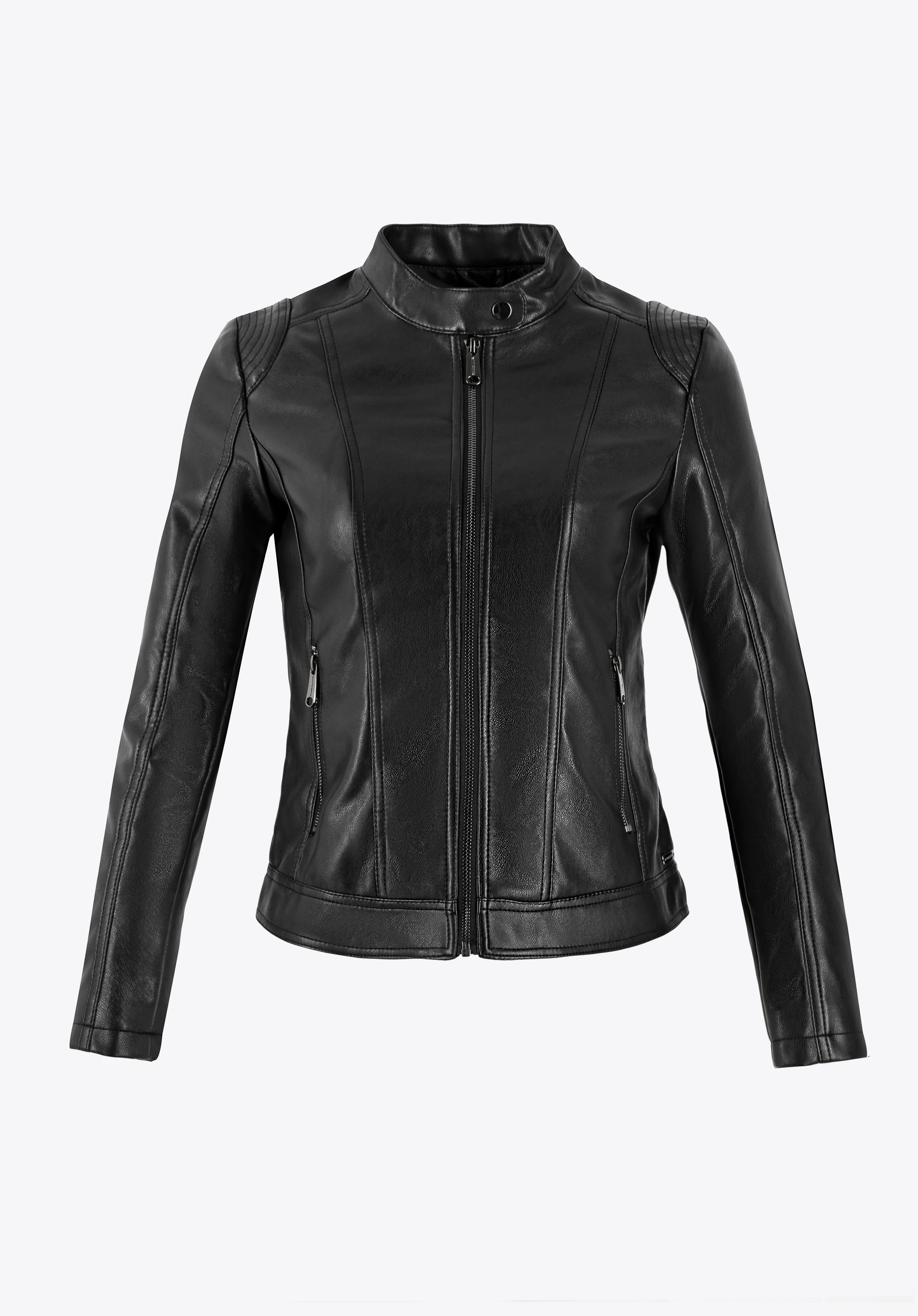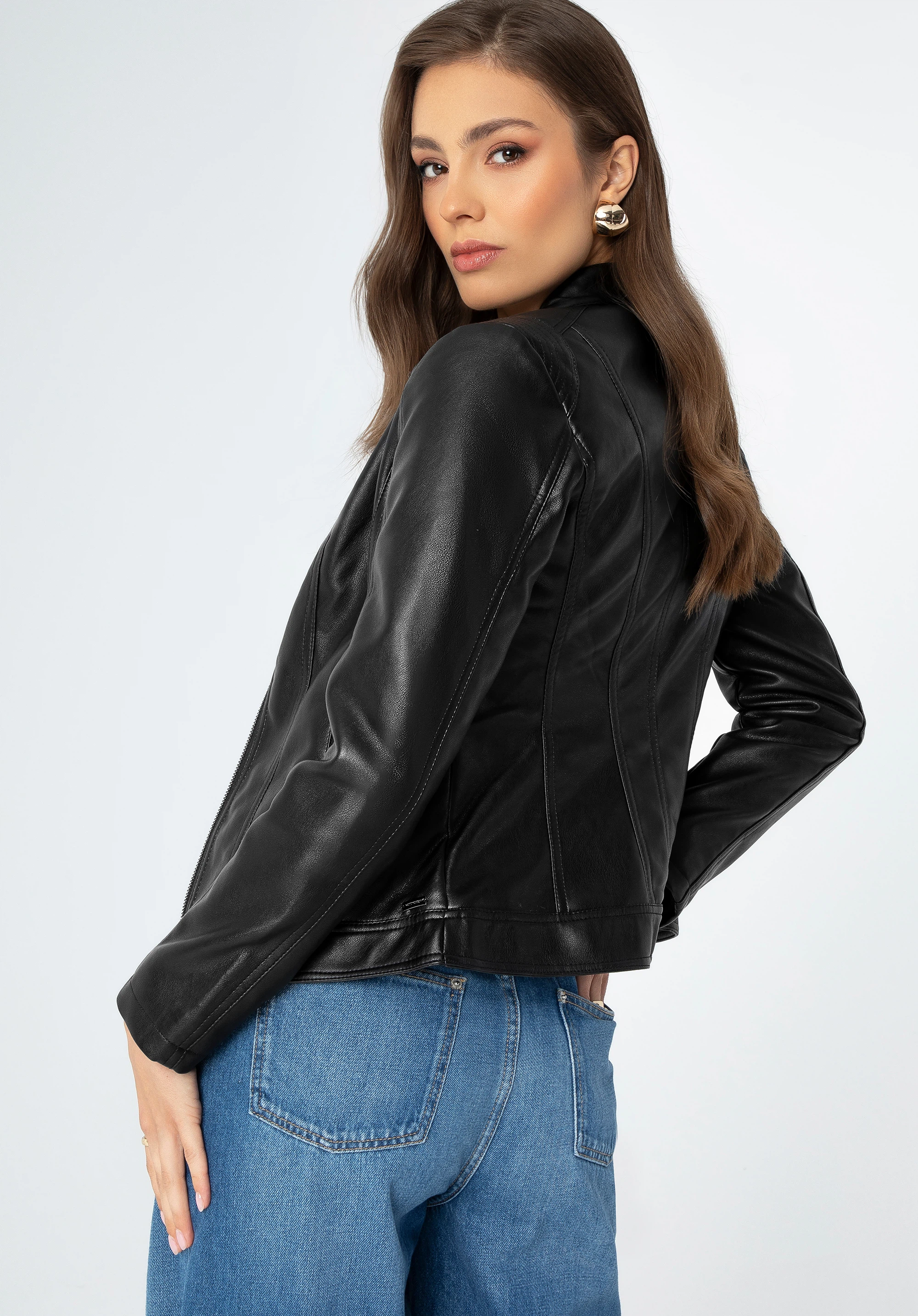 Жіноча приталена куртка з екошкіри Колір: чорний