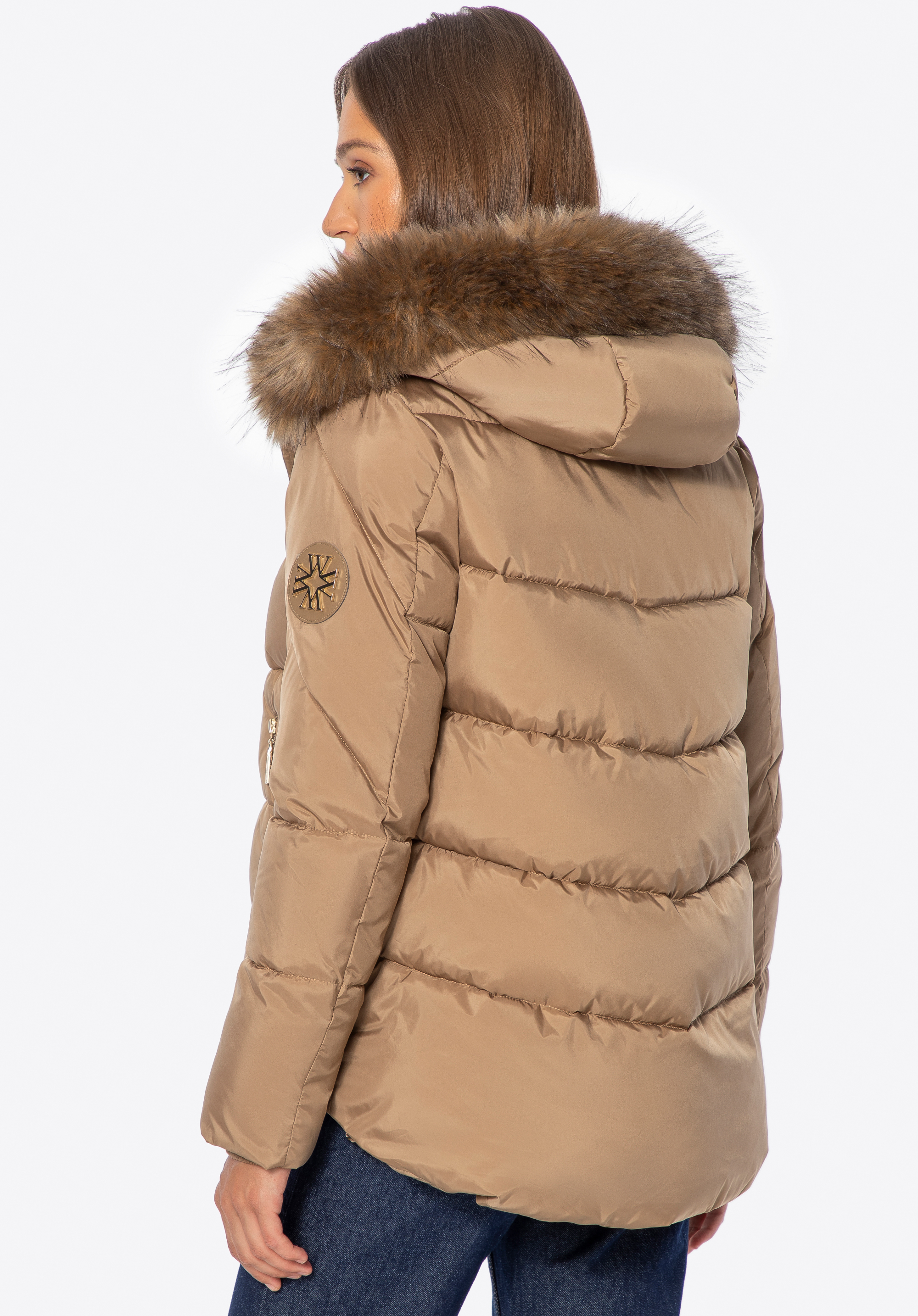 - Знімний капюшон з хутром: Стильний елемент, який захищає від холоду і дозволяє змінювати характер куртки залежно від погоди.