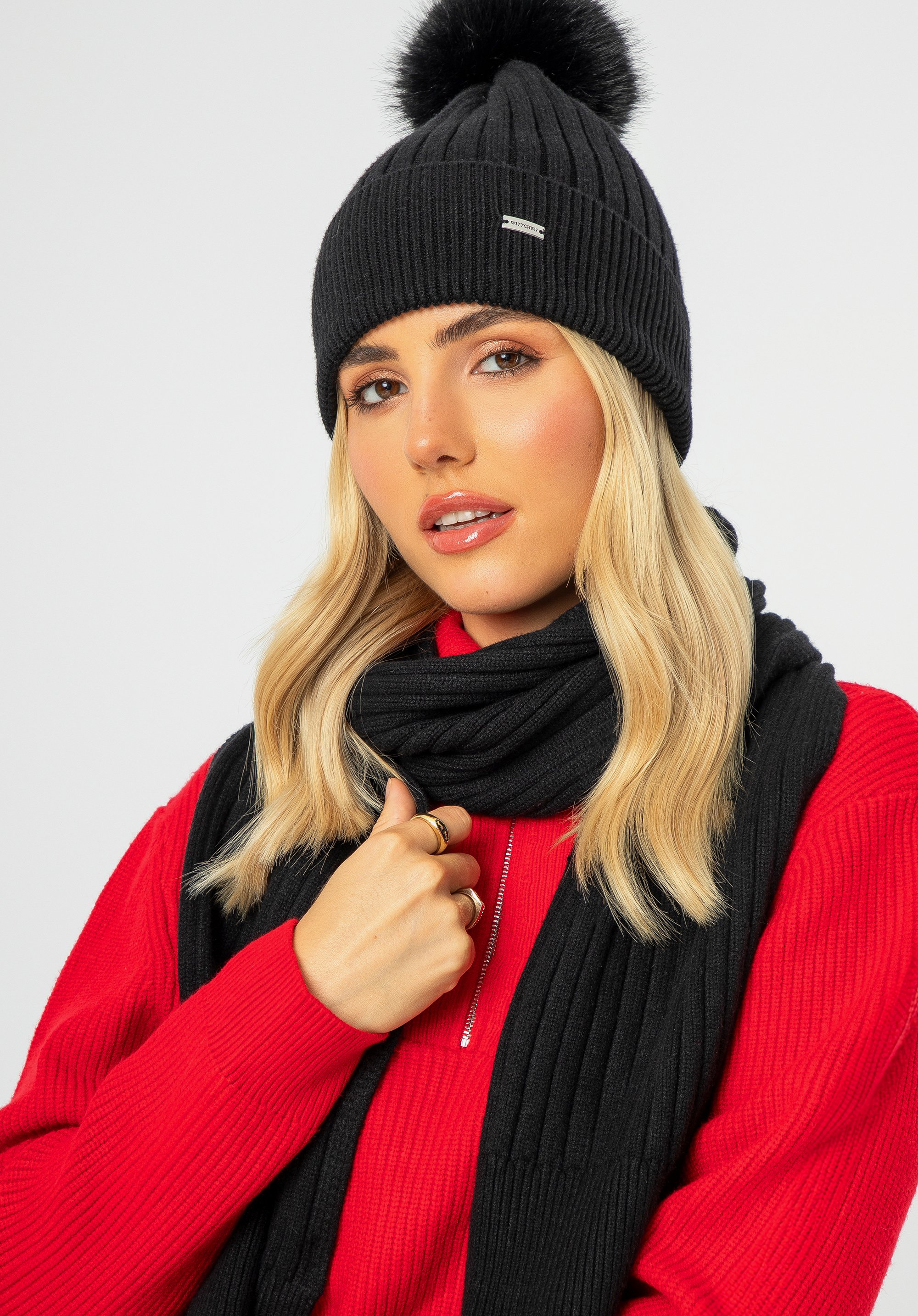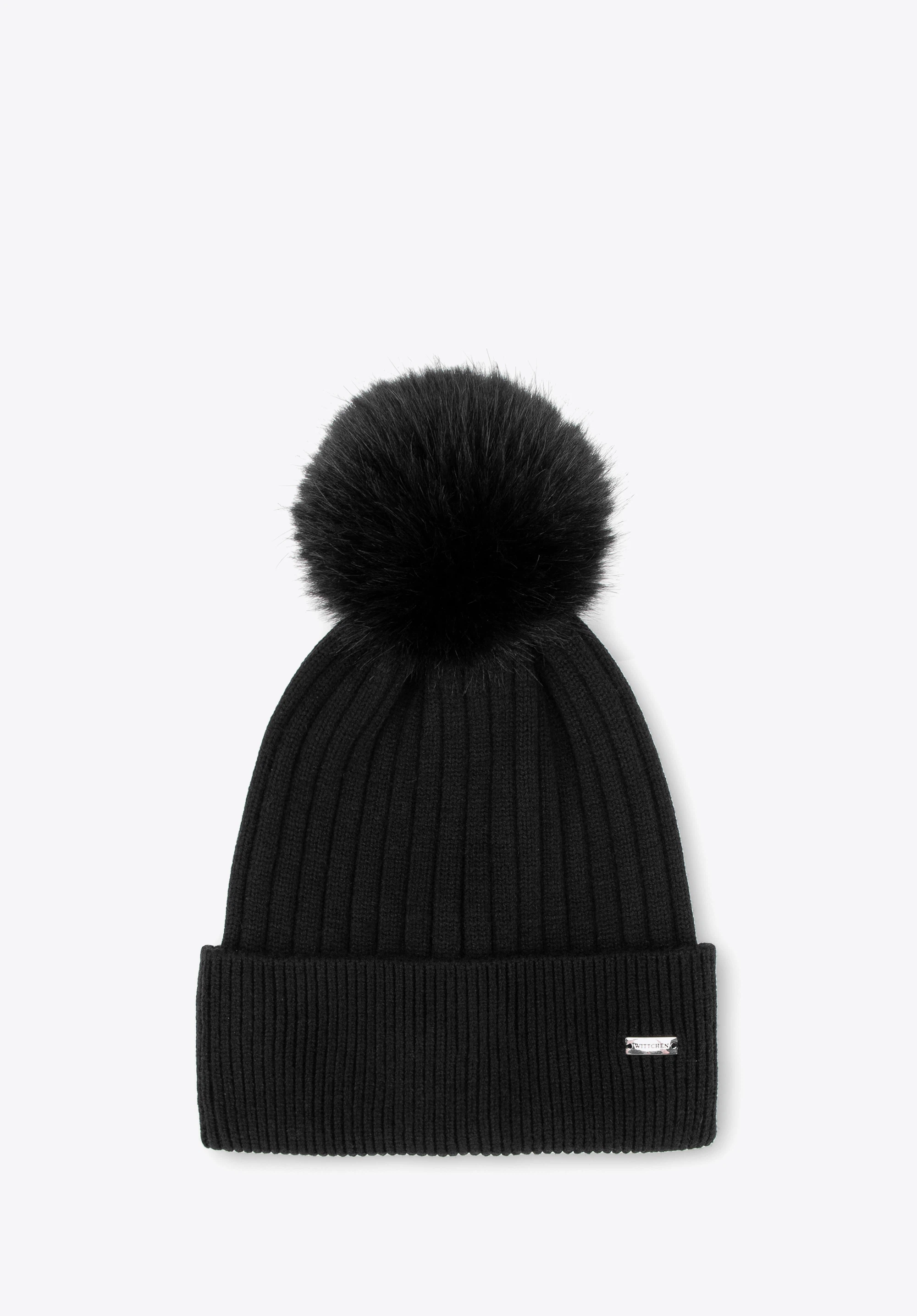 Жіноча шапка з хутряним помпоном Колір: чорний