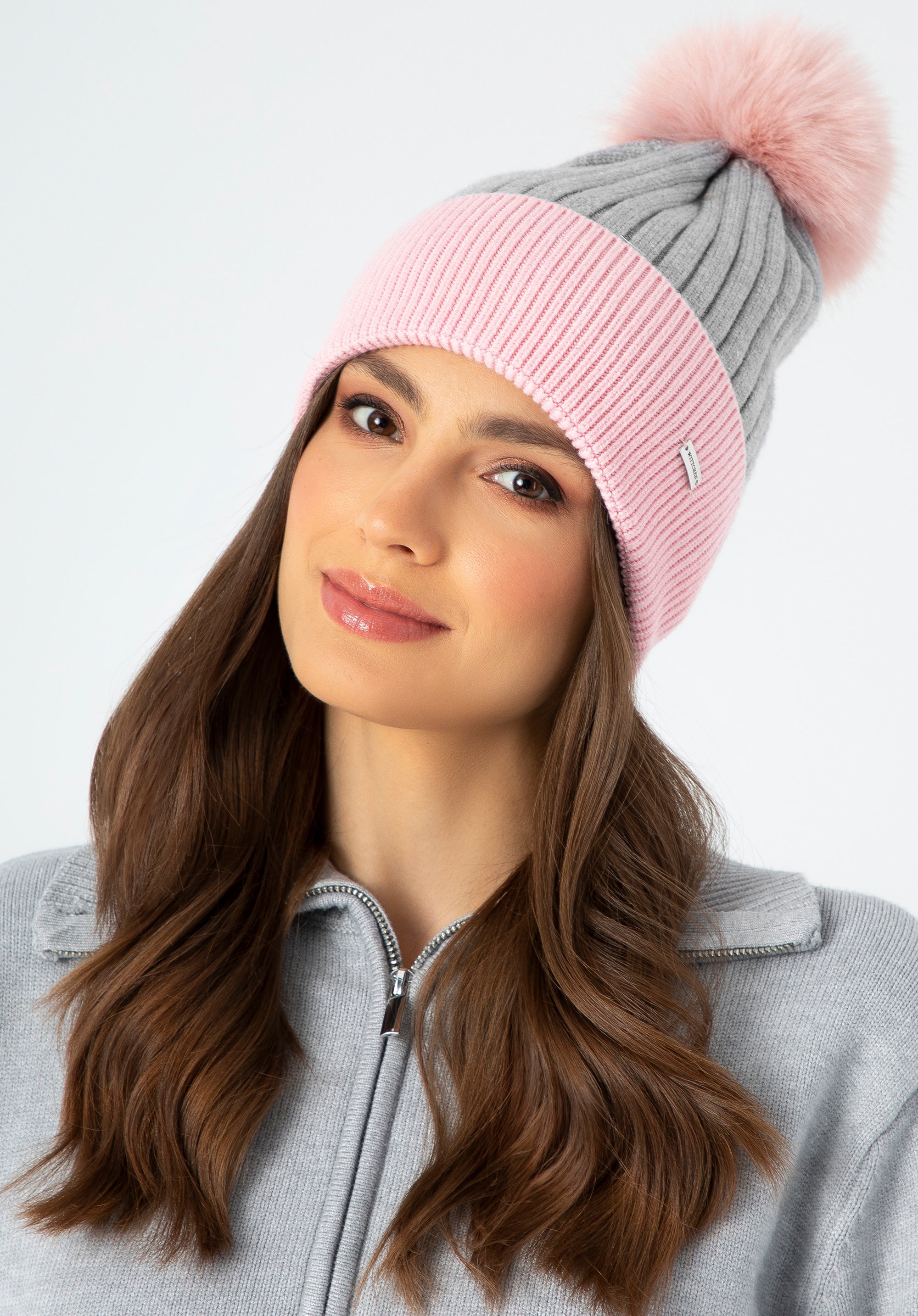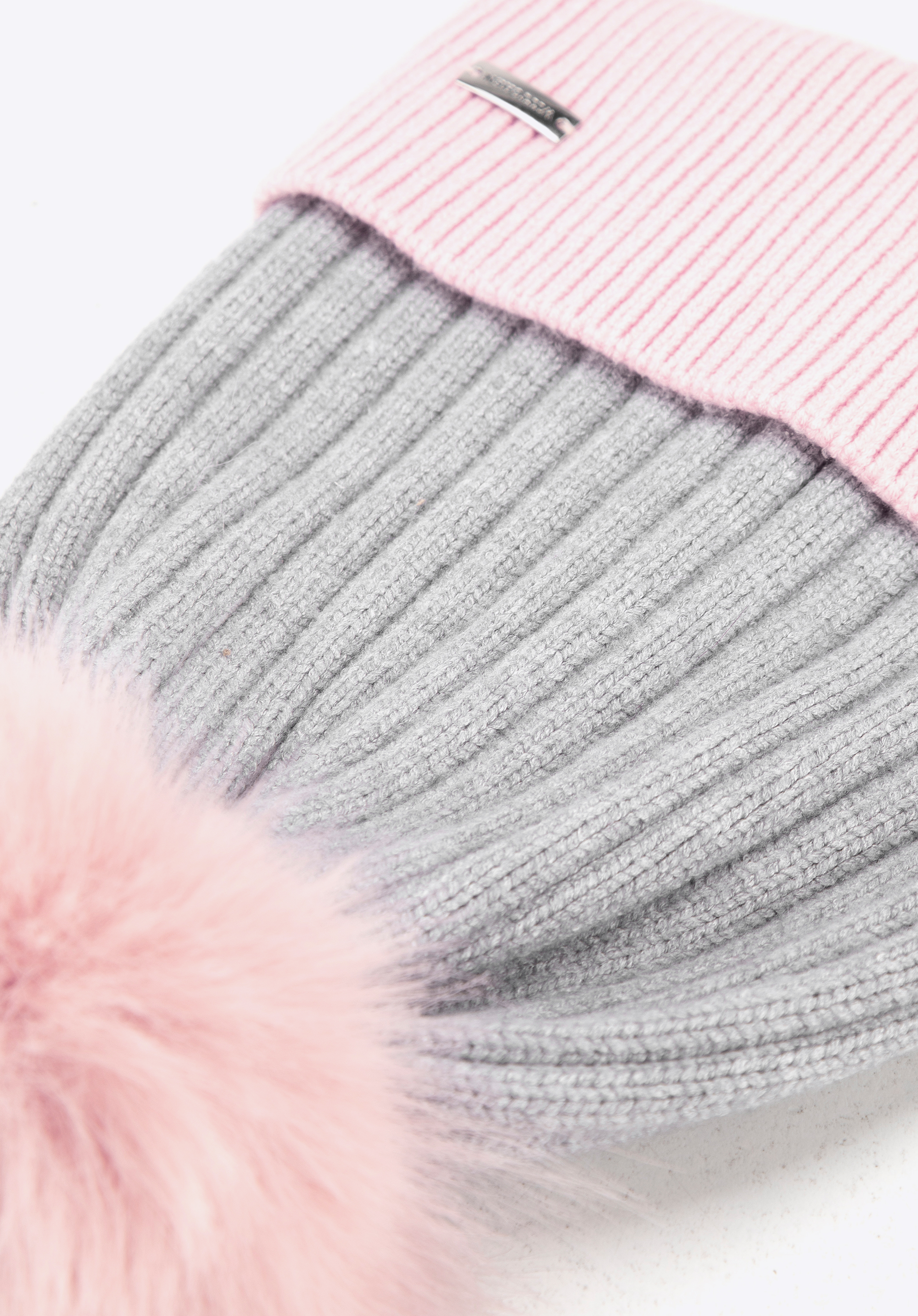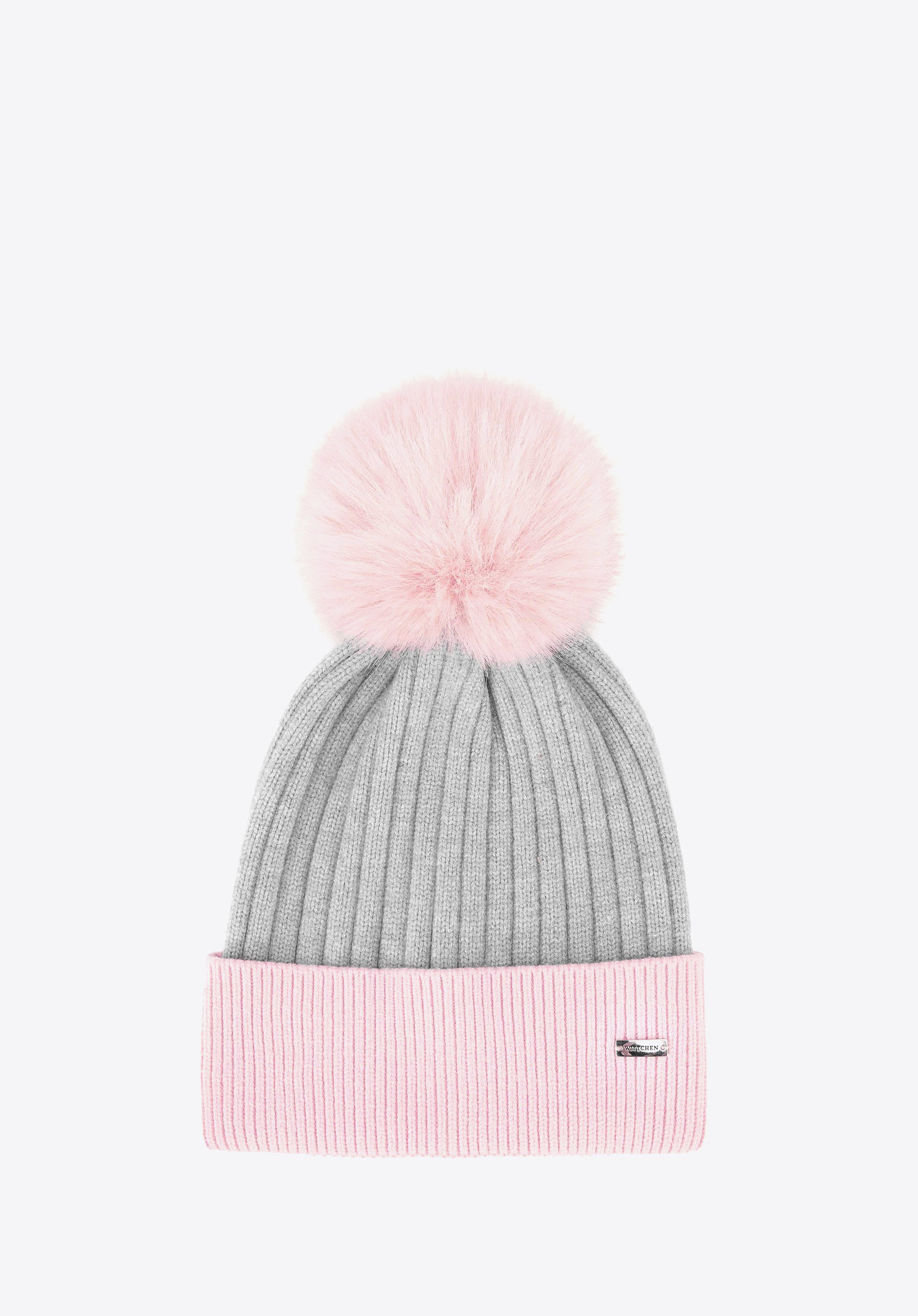 Жіноча шапка з хутряним помпоном Колір: сіро-рожевий