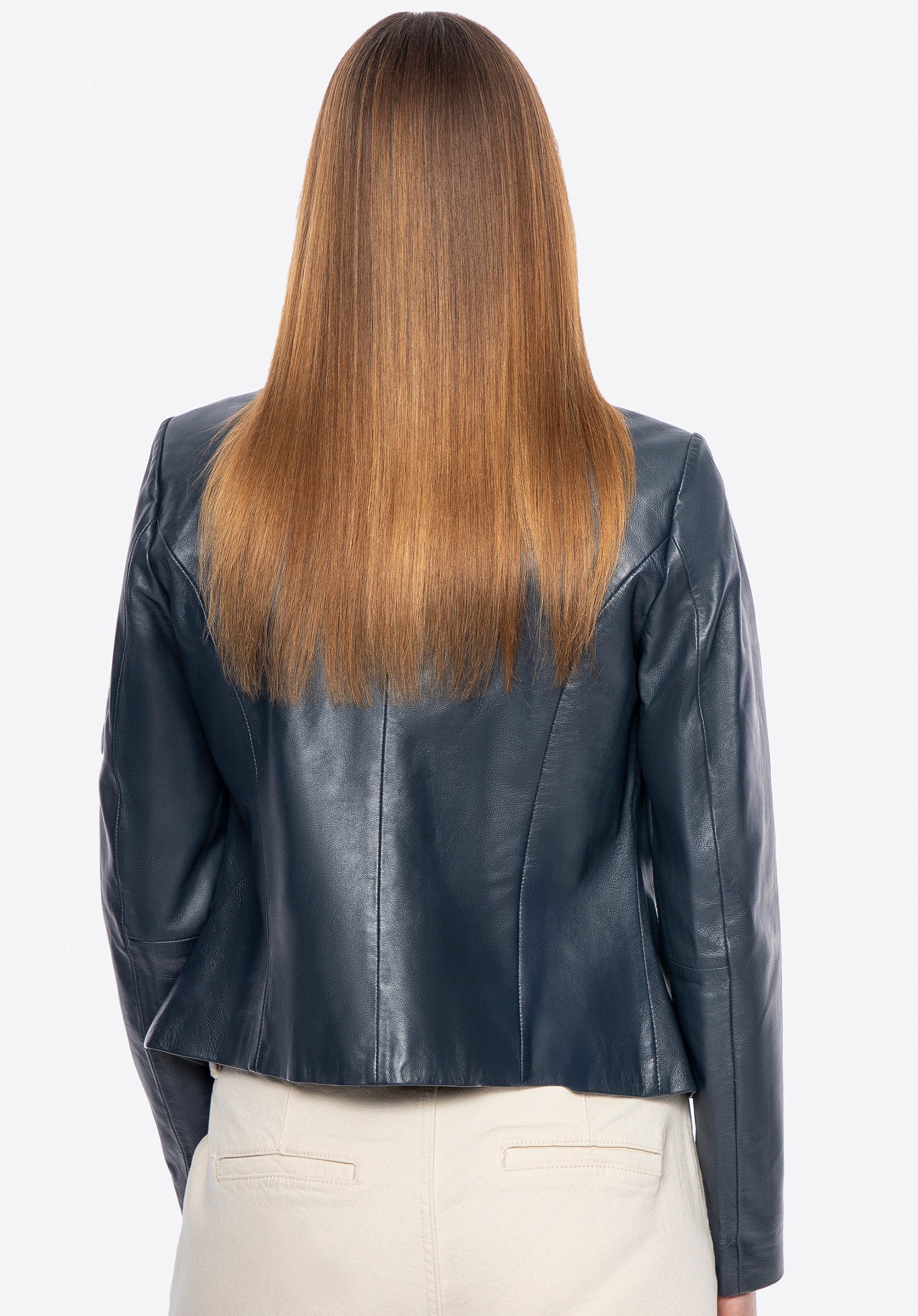 Пориньте в розкіш, яка підкреслить вашу індивідуальність. Ця куртка з натуральної овечої шкіри поєднує в собі позачасовий стиль з виразними сучасними акцентами. Її ідеально приталений крій, витончені деталі та мінімалістична елегантність створюють унікальну пропозицію для жінок, які шукають щось особливе – як за якістю, так і за дизайном. Укорочений фасон з коміром стійкою не тільки підкреслює силует, але й випромінює елегантність та сучасний шик.