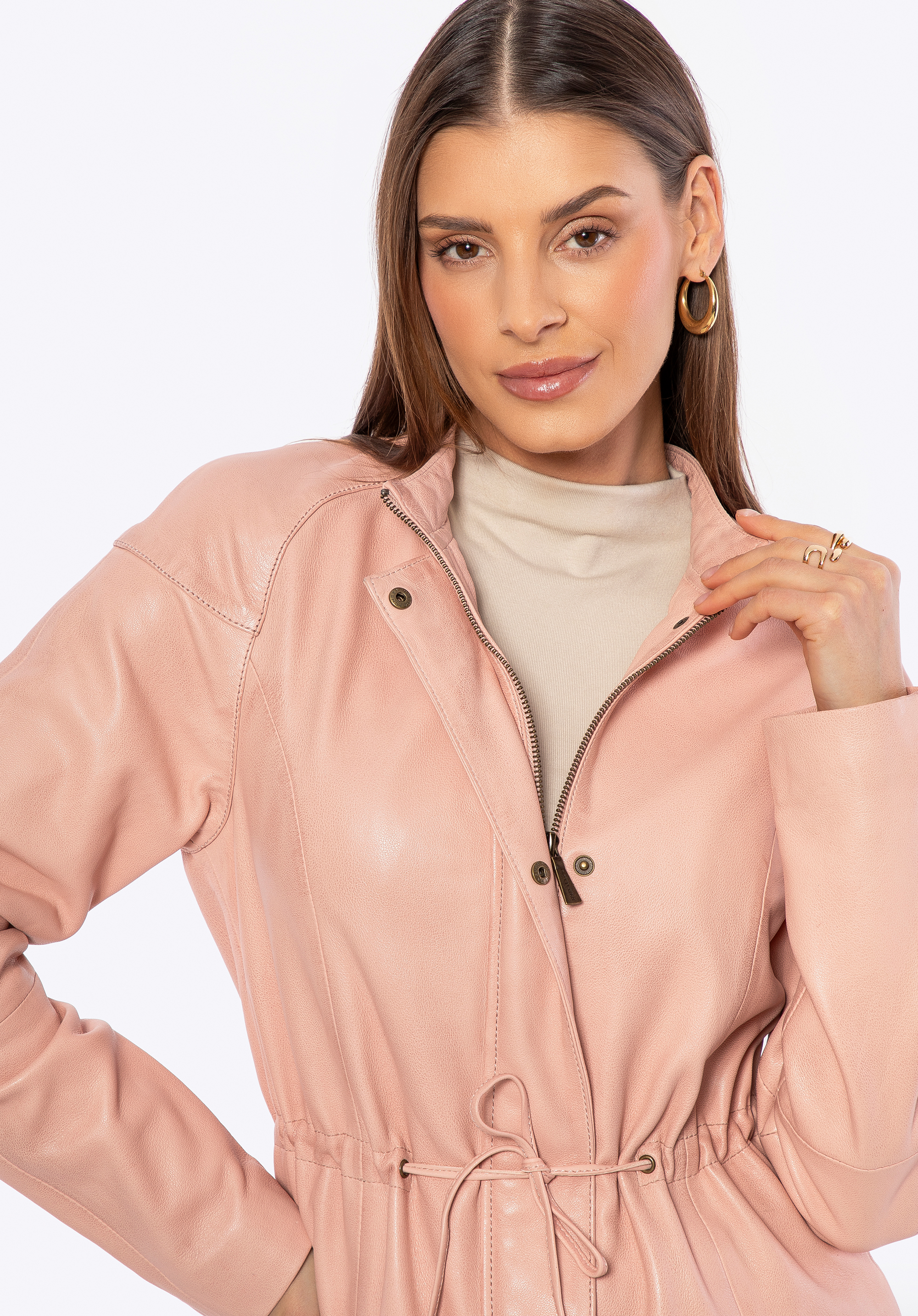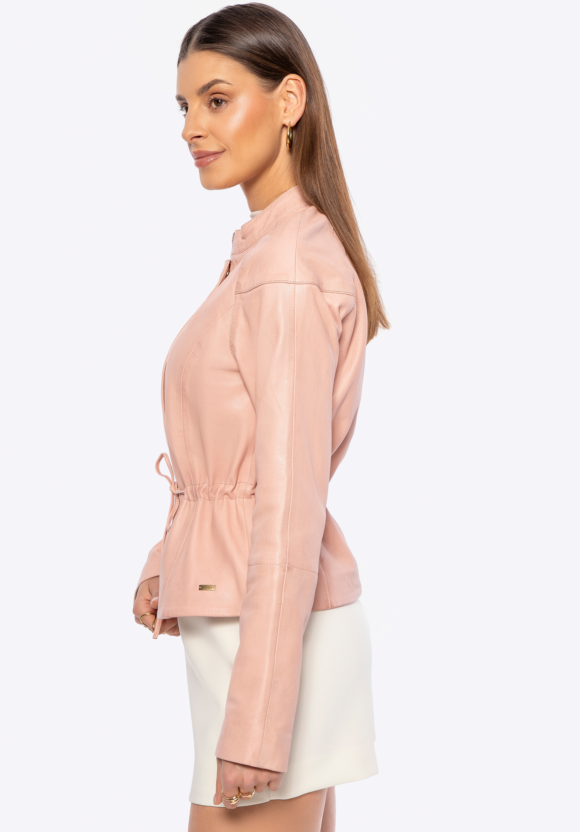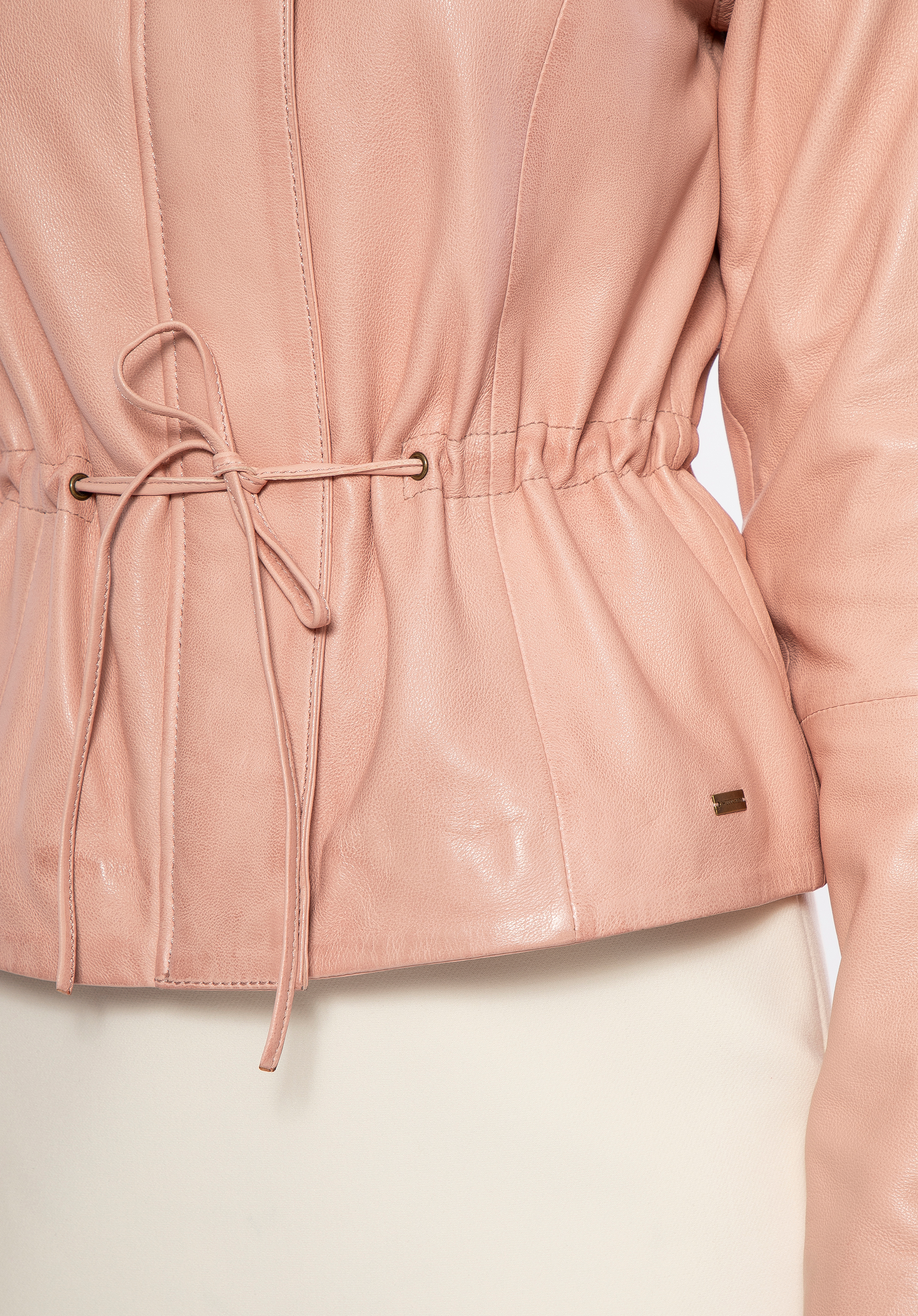 Жіноча шкіряна куртка з ременем на талії бордова рожева