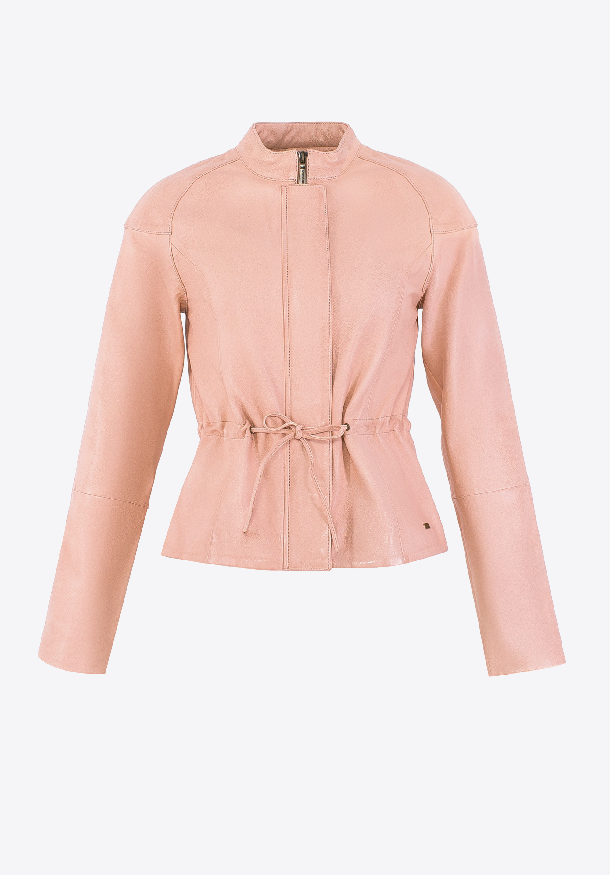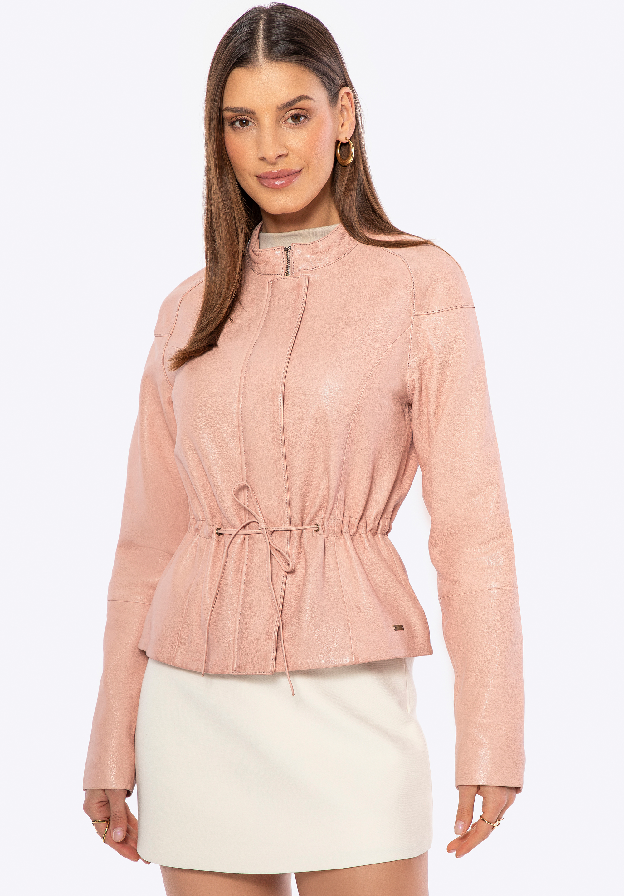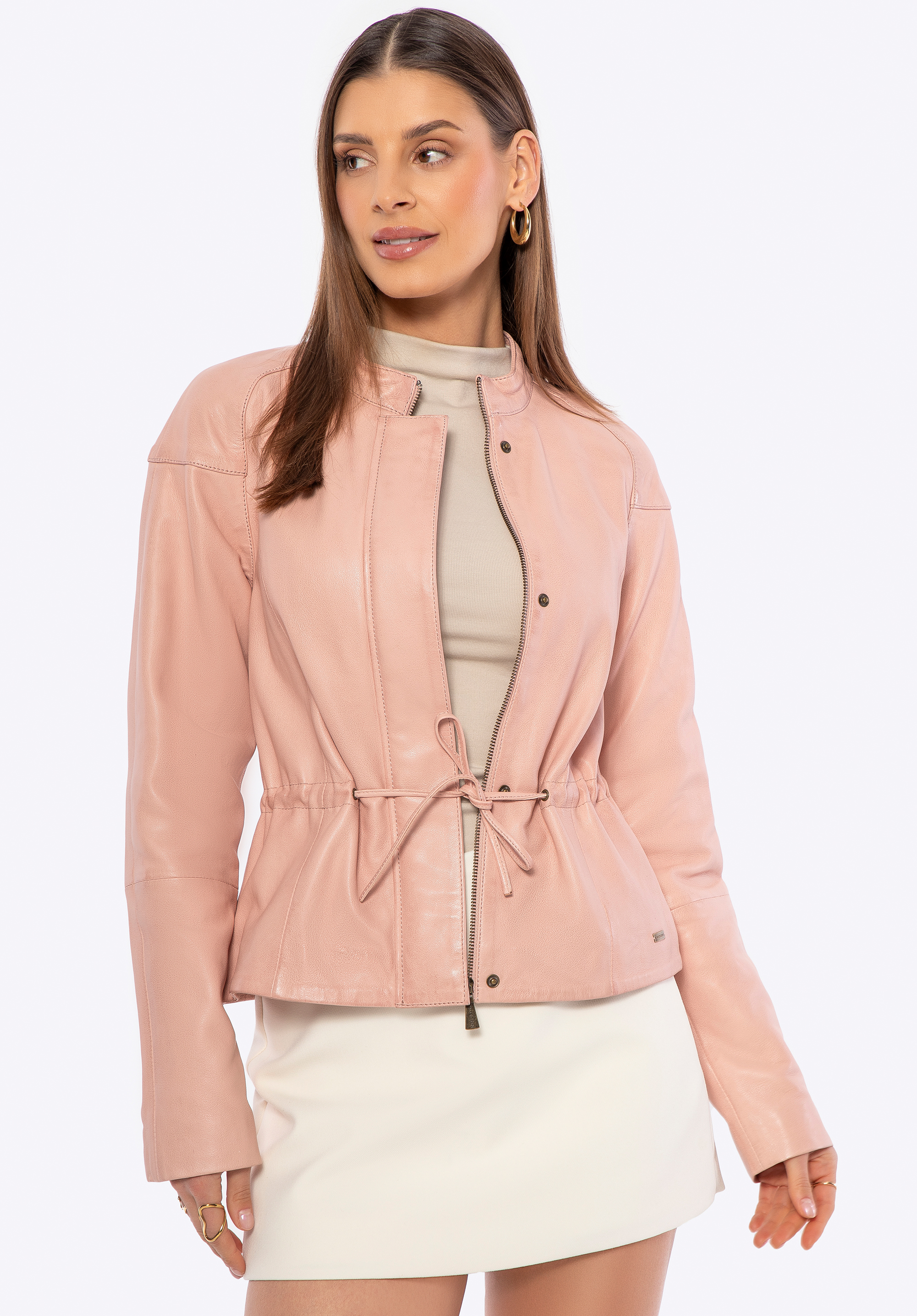 Жіноча шкіряна куртка з ременем на талії бордова рожева