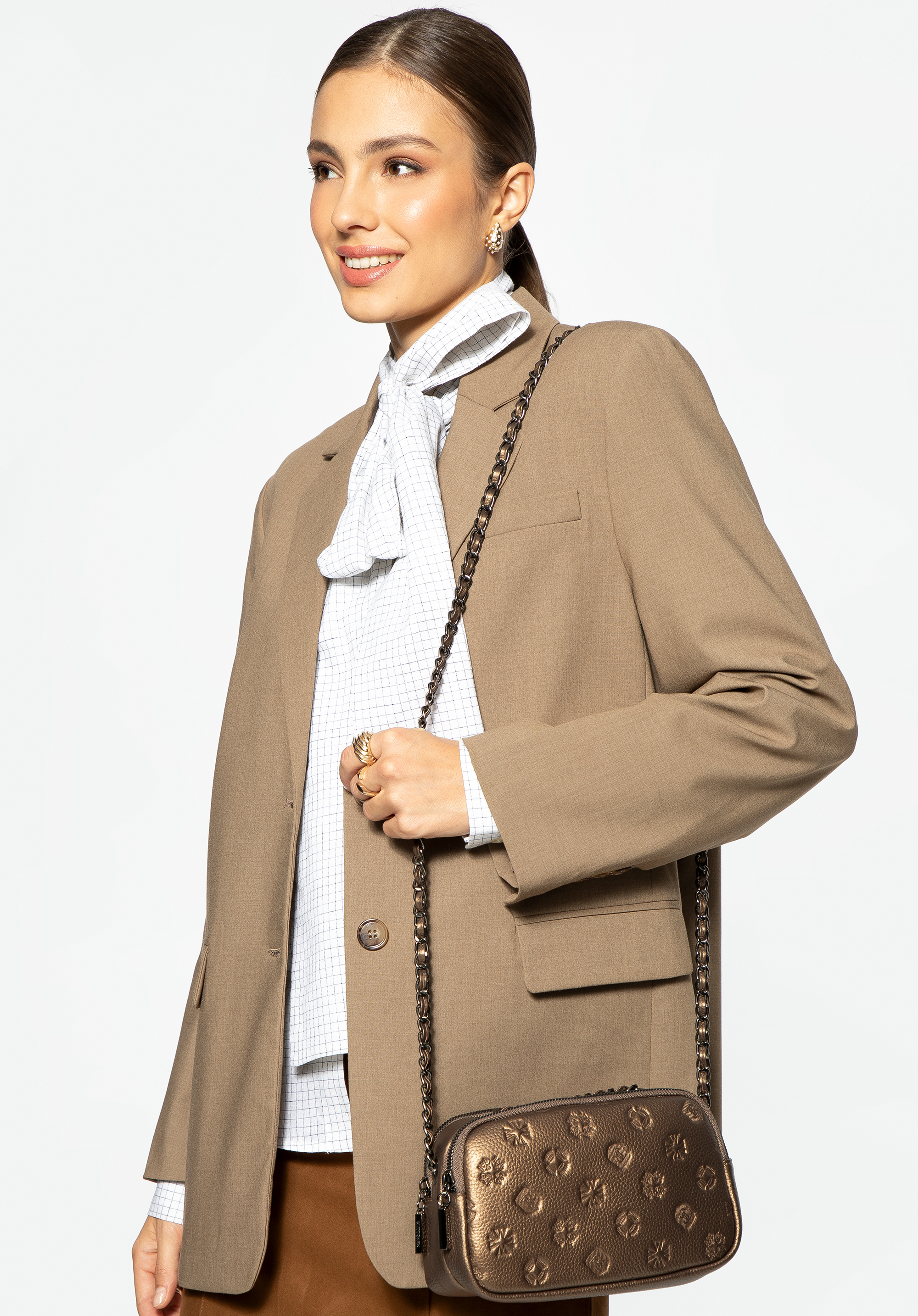 Жіноча шкіряна сумка через плече на ланцюжку Колір: золотий