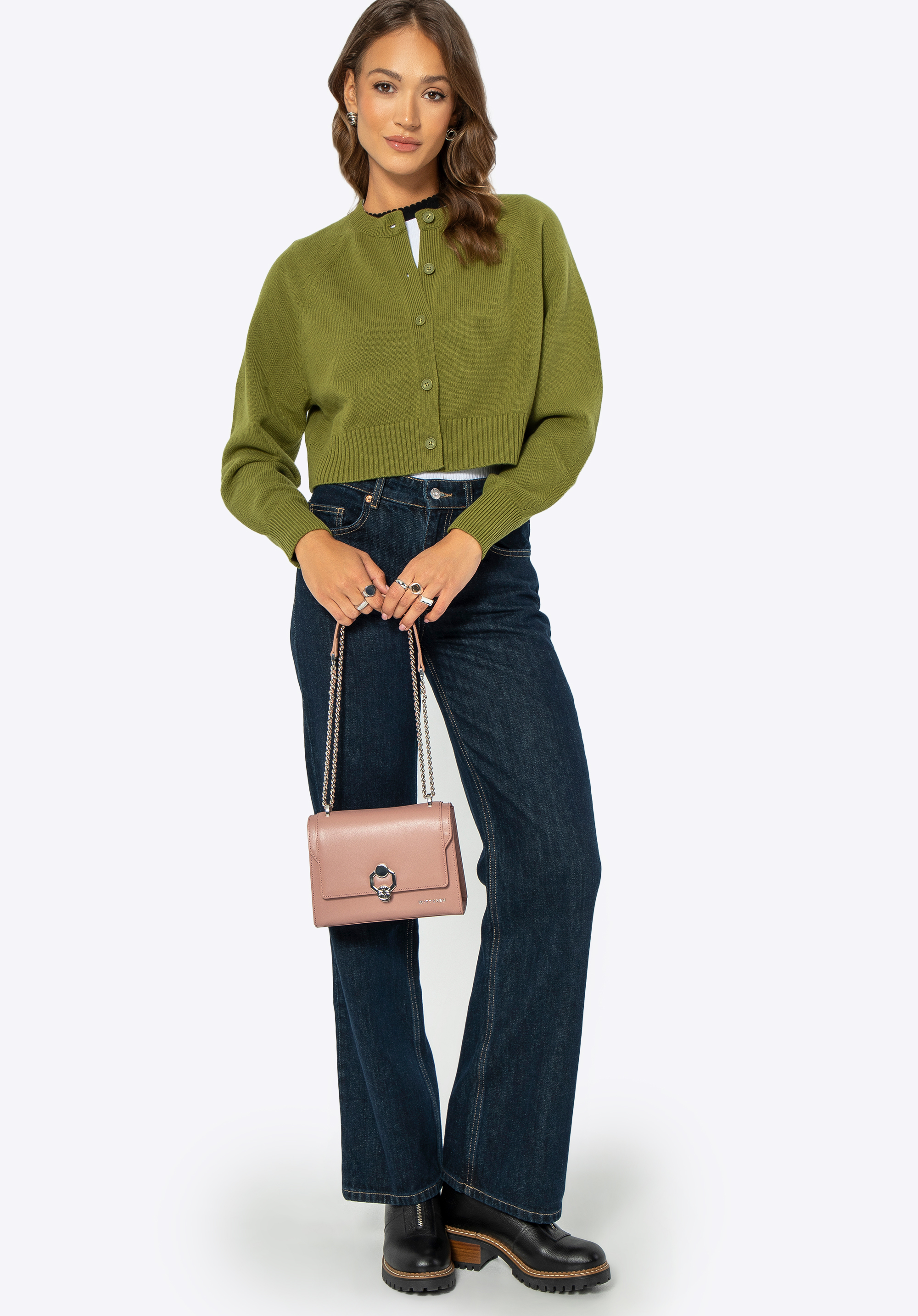 Наша порада: ця сумочка через плече ідеально поєднується з елегантними туфлями на високих підборах або класичними човниками приглушених кольорів. Його вишуканий характер ідеально доповнює ніжні босоніжки на підборах , додаючи відчуття легкості та стилю.