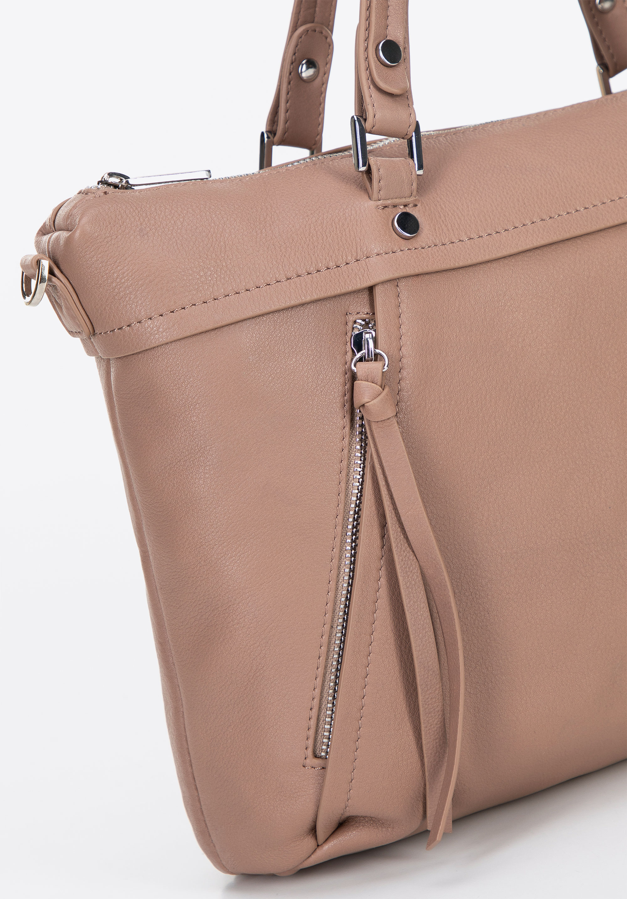 Вам потрібна сумка, яка вмістить ваш ноутбук, але при цьому буде відповідати вашому елегантному повсякденному стилю? Ця сумка для ноутбука з натуральної шкіри - варіант, створений з думкою про вас. Завдяки блискавці та практичній внутрішній кишені для ваших електронних пристроїв (макс. розмір: 22 × 35 см) ви зможете безпечно носити ваш ноутбук і зберігати порядок. Дві зручні ручки та регульований знімний ремінь дають вам повну свободу маневрів - в руці чи на плечі.