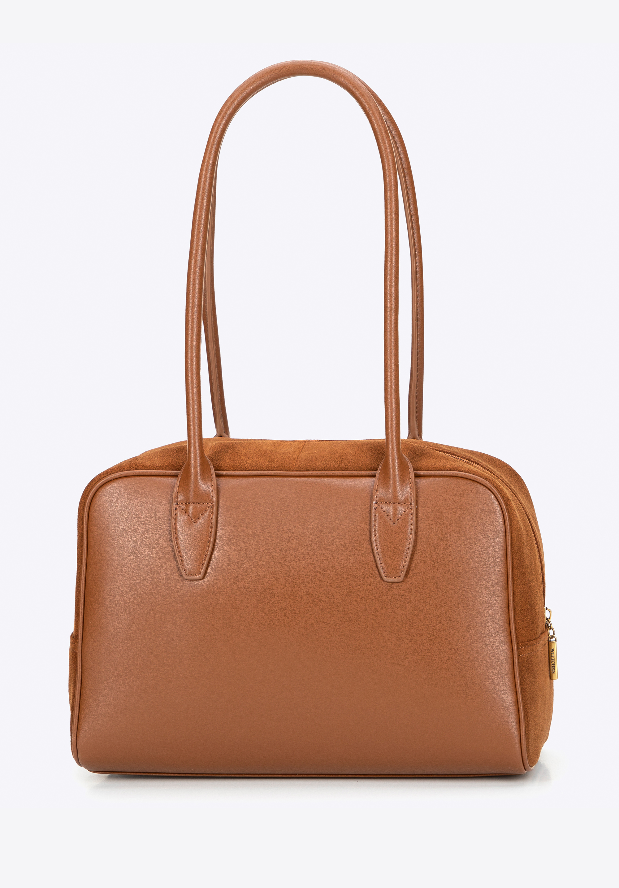 - Матеріал: Натуральна шкіра двох фактур – замша спереду і гладка з тильної сторони – доповнена міцними ручками і внутрішніми деталями з мікрофібри (яка ідеально імітує натуральну шкіру), поєднує елегантність і комфорт щоденного носіння.