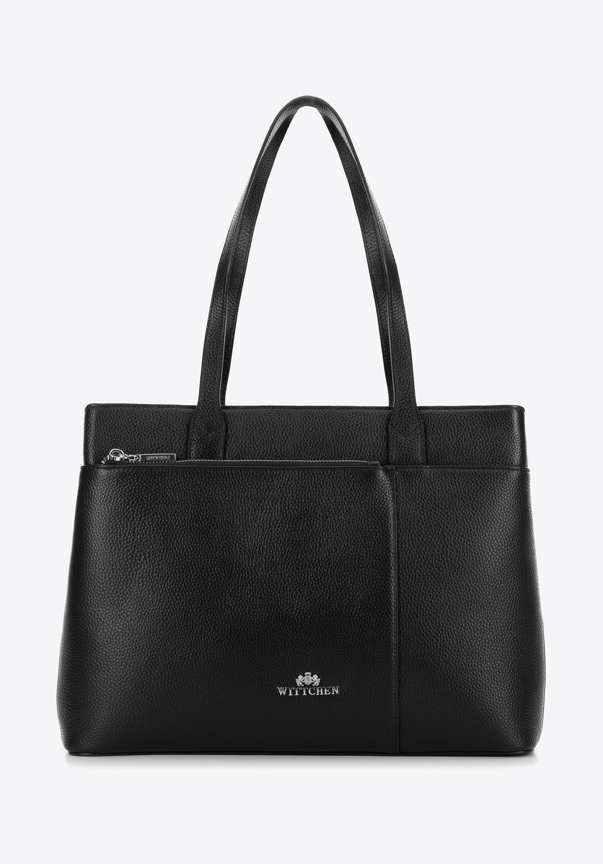 Відкрийте для себе жіночу сумку, яка поєднує в собі міцність і елегантний зовнішній вигляд завдяки натуральній шкірі. Зручність перенесення забезпечують дві зручні ручки, що дозволяють носити сумку як в руці, так і на плечі. Посилене дно забезпечує стабільність і захист вмісту, а кишені: одна на блискавці і дві відкриті, пропонують місце для телефону, ключів і цінних речей.