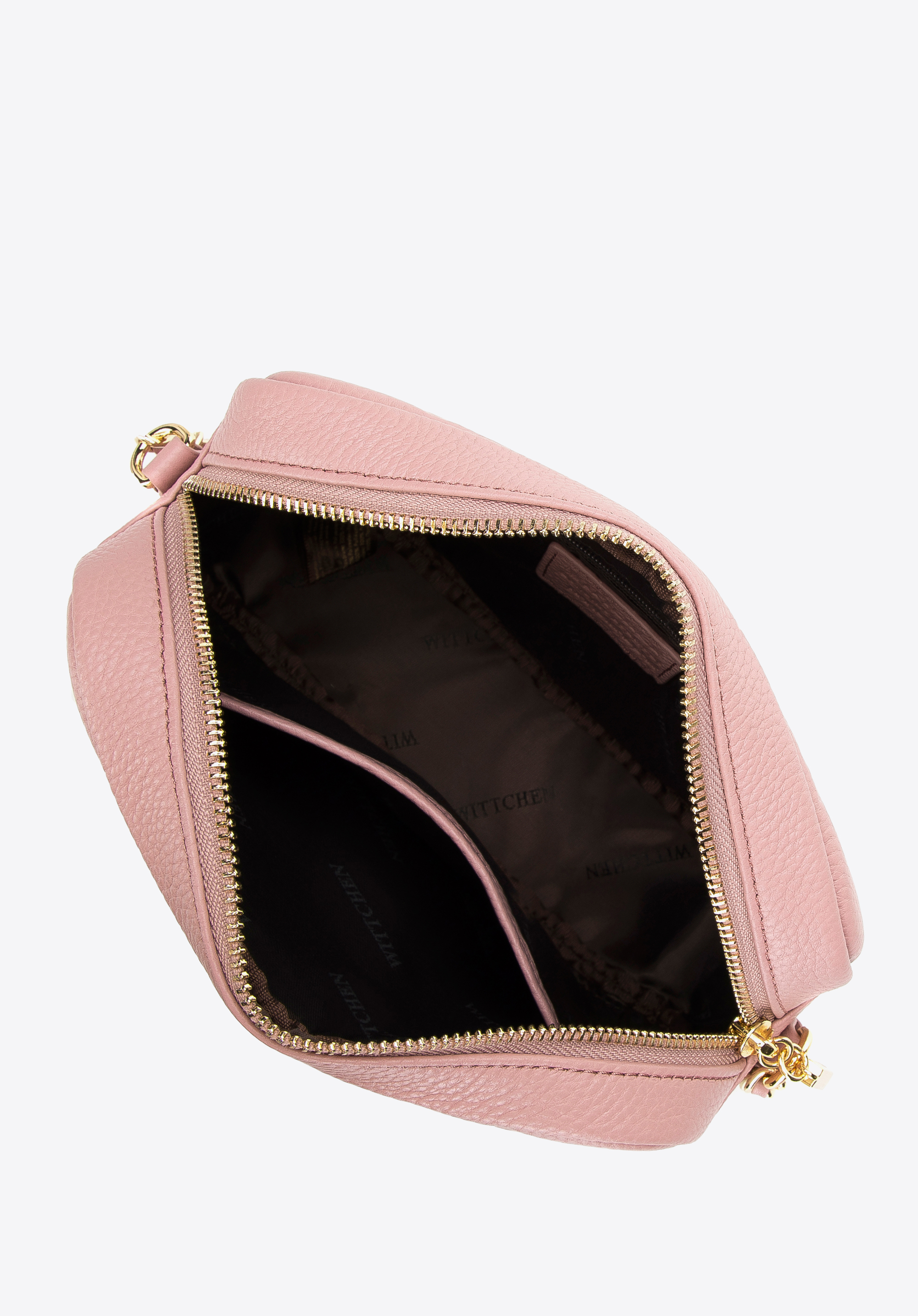Ця сумка - чудовий вибір для любителів класики в сучасному відтінку. Виготовлена з високоякісної натуральної шкіри з тисненням монограми WITTCHEN. Вона має квадратний, досить жорсткий крій і блискучу фурнітуру, що додає їй елегантності. Всередину можна помістити гаманець, телефон, крем для рук і кілька дрібниць. Її можна взяти з собою на прогулянку, сімейне свято або в театр - вона додасть елегантності практично будь-якому стилю. Жіноча шкіряна сумка з монограмою — практичний і шикарний аксесуар, який варто мати у своєму гардеробі.