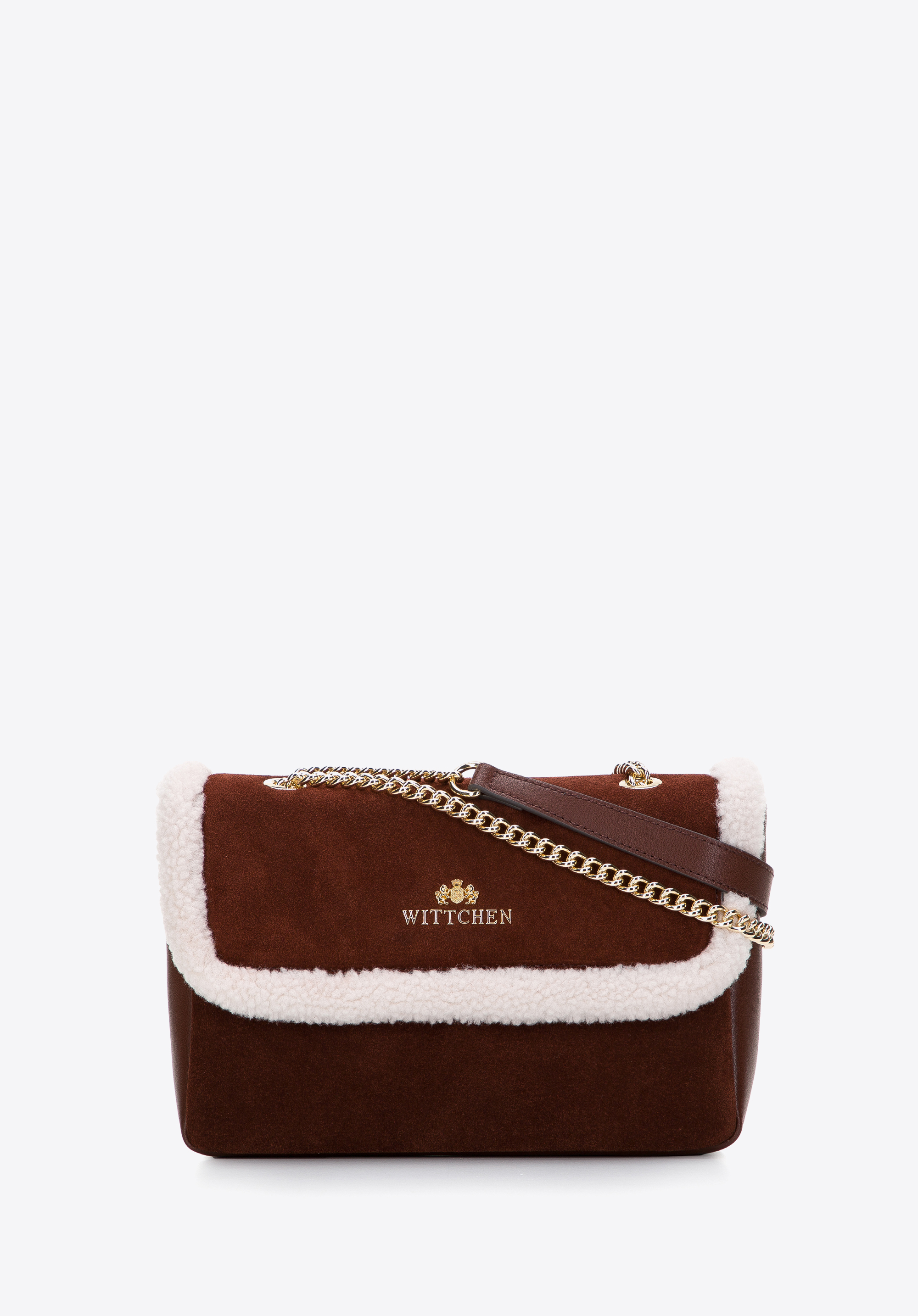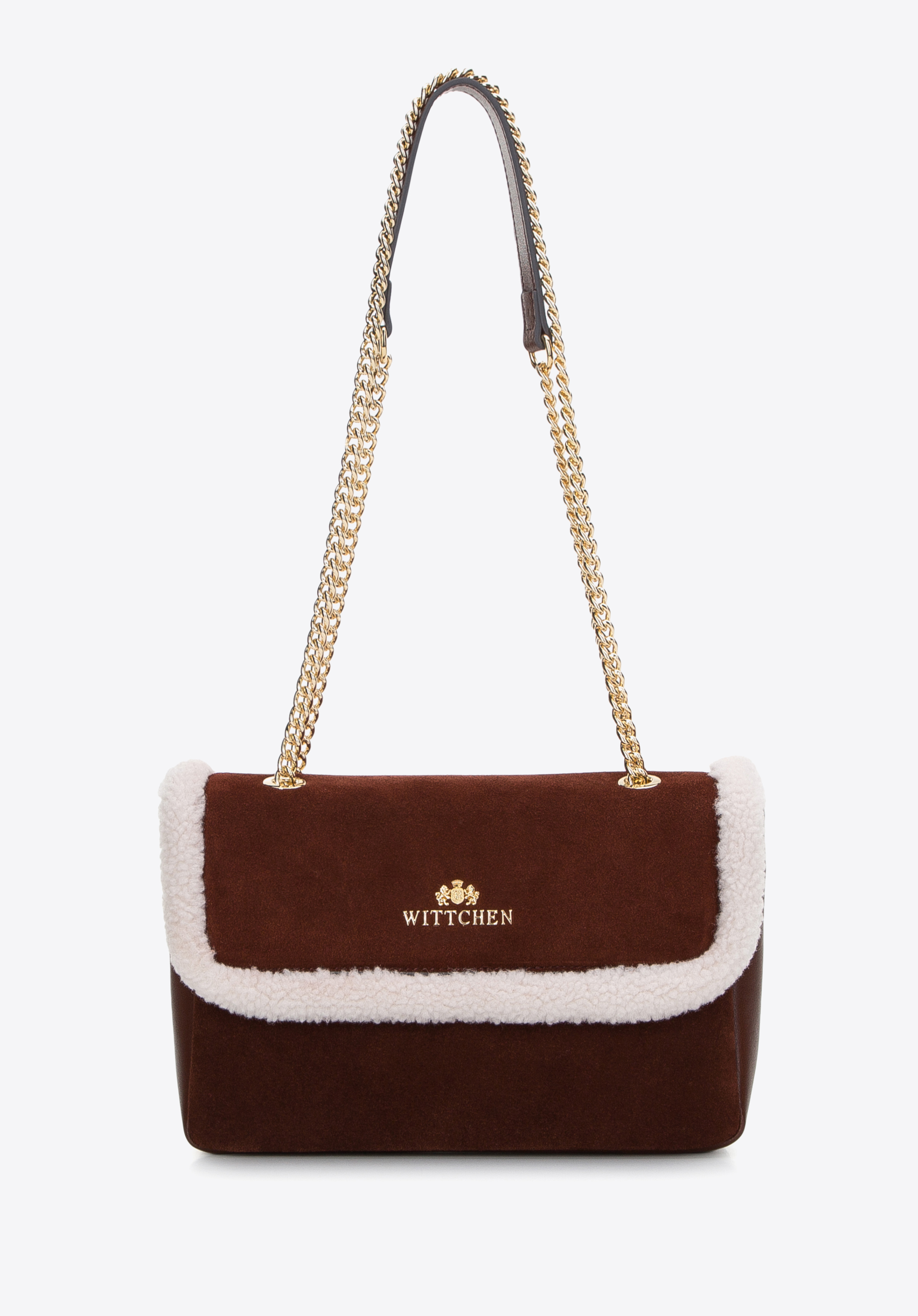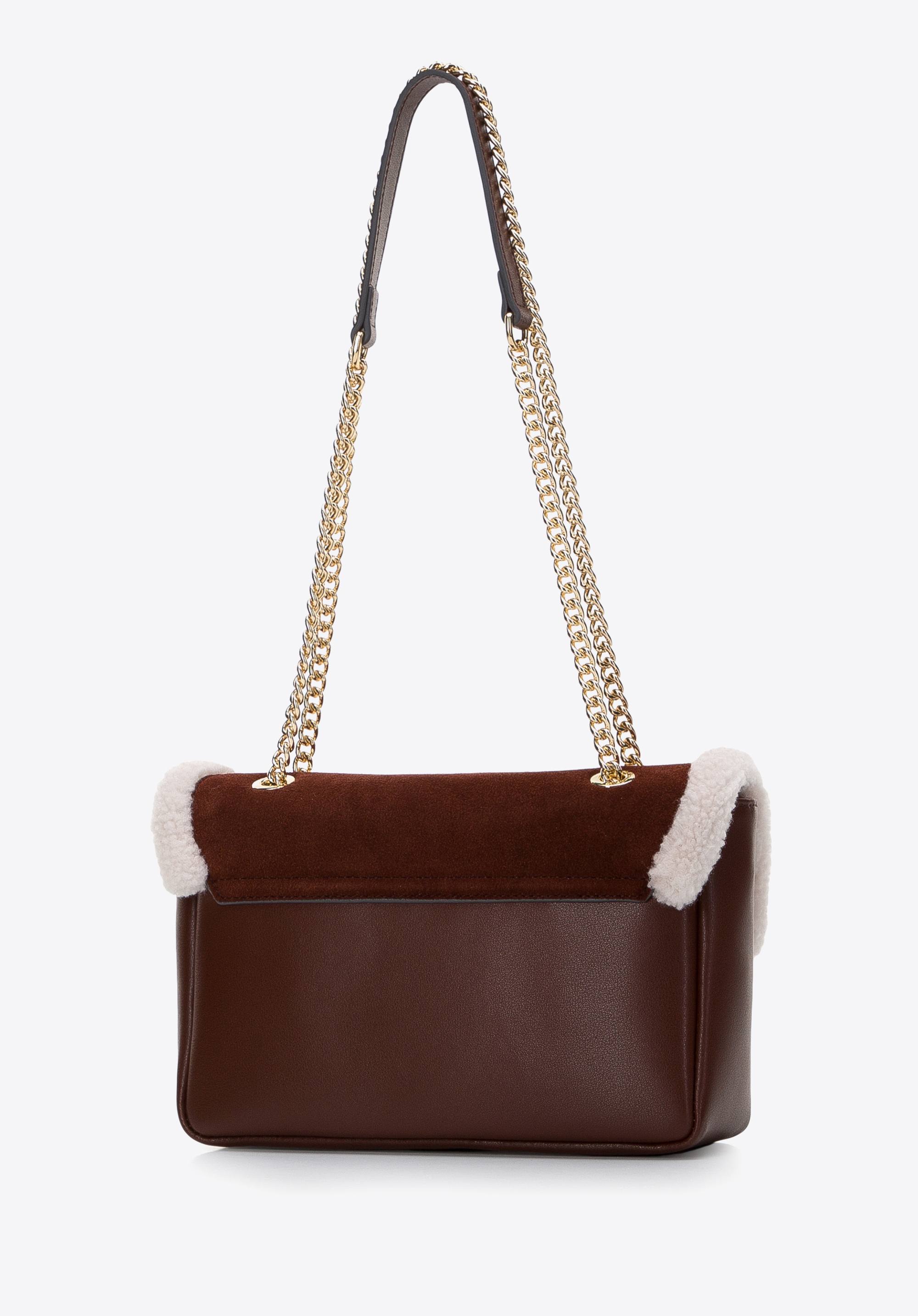 Жіноча шкіряна сумка зі штучним хутром коричнево-кремова