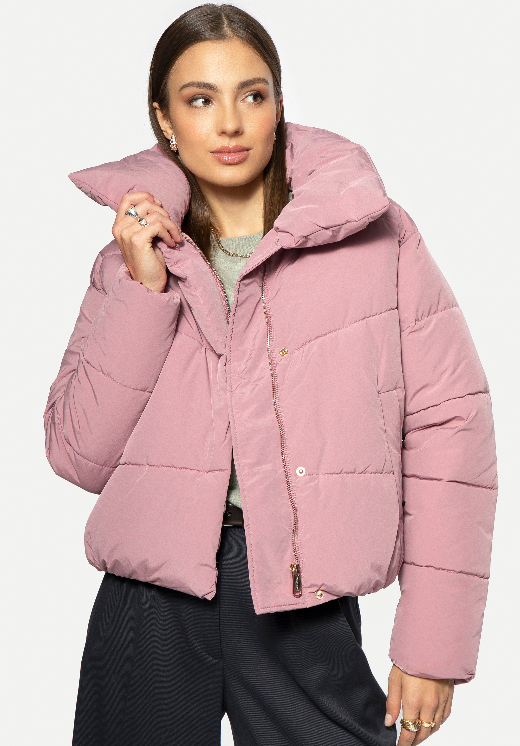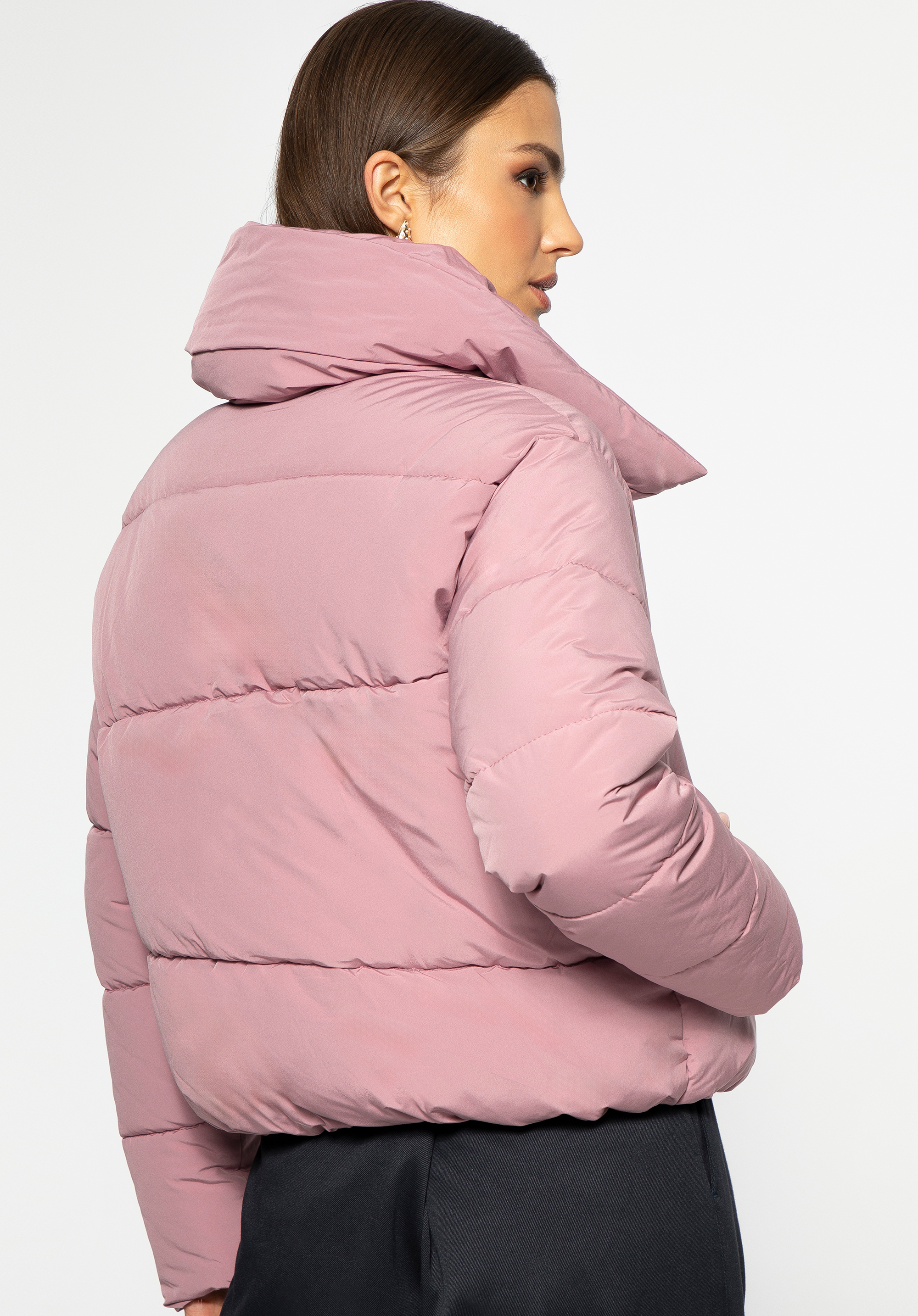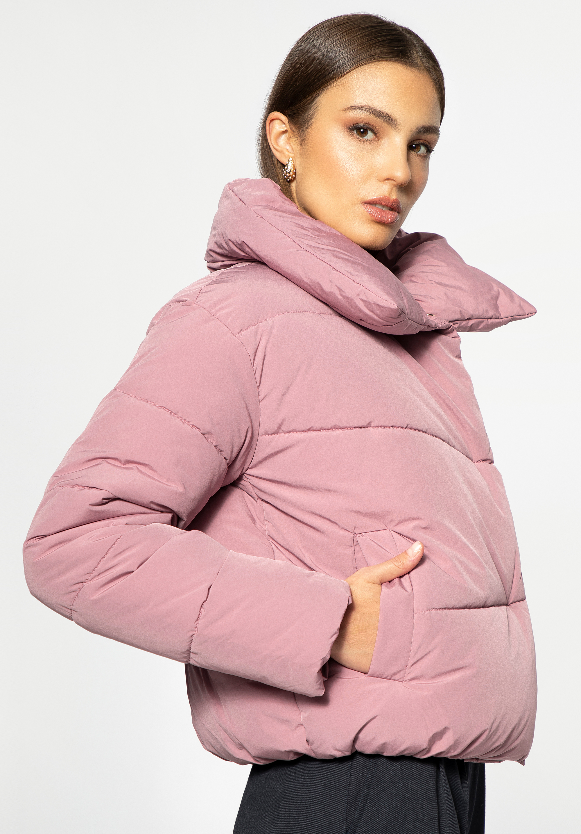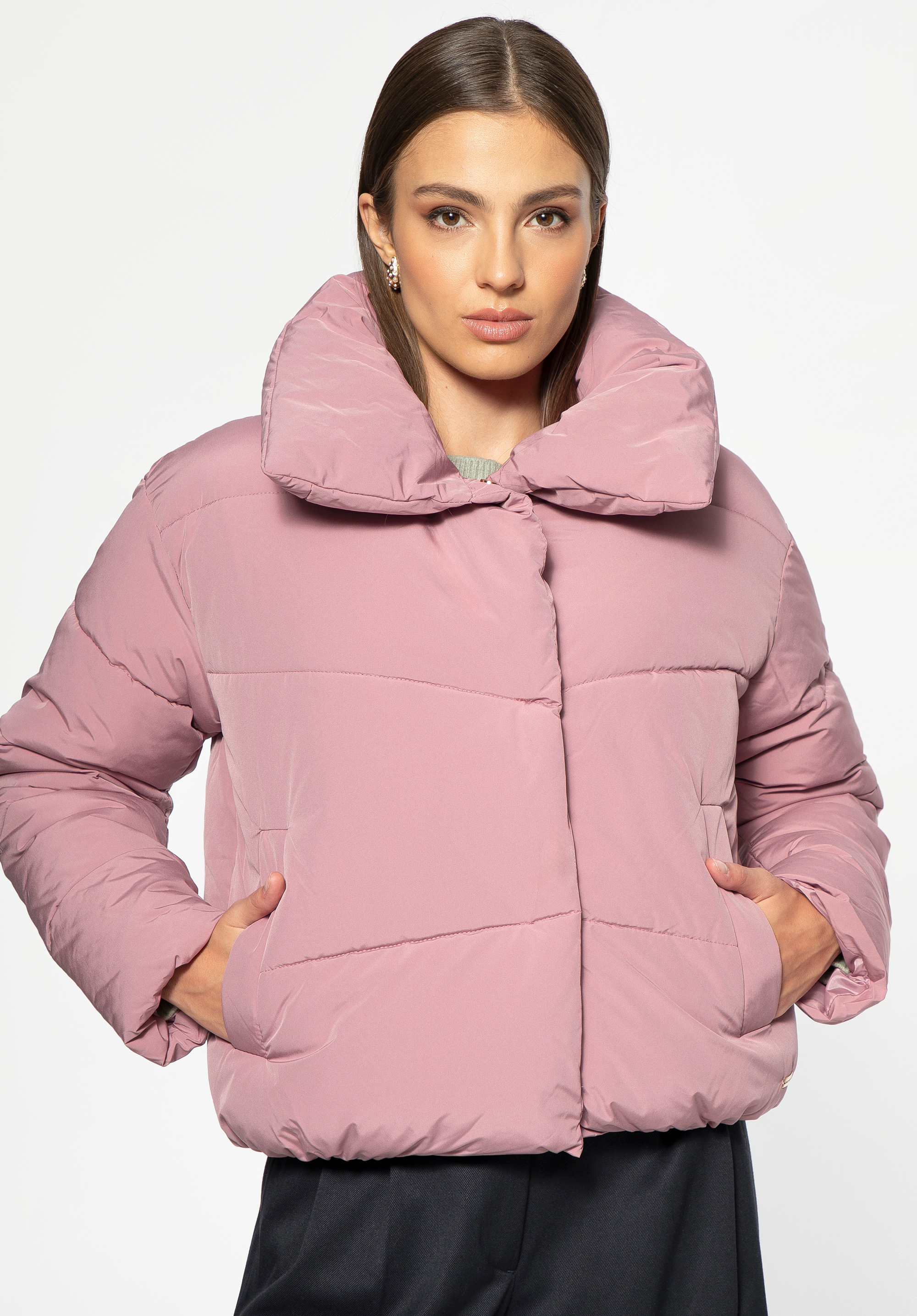 Стильна жіноча куртка модного крою oversize обов''язково повинна бути у вашому гардеробі. Вона досить коротка і легка, але досить тепла для осені та зими. Має широкий комір, який можна обернути навколо шиї або перевернути і покласти. Руки зручно сховати в бічні кишені. Внизу куртка має вшитий рант, який захистить від холоду. Це ідеальна коротка куртка для штанів із завищеною талією, спідниць або суконь міді. Якщо ви шукали шикарний, але повсякденний одяг укороченого крою, ця жіноча стьобана куртка великого розміру саме для вас.