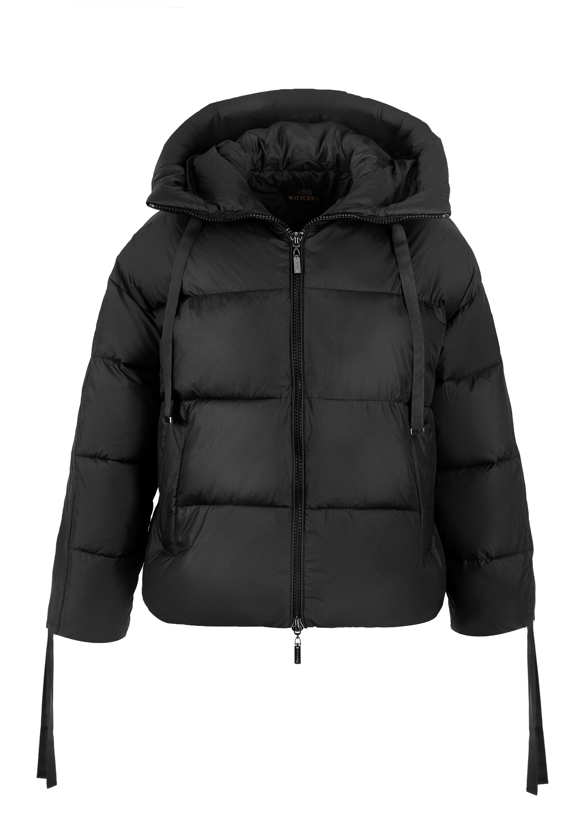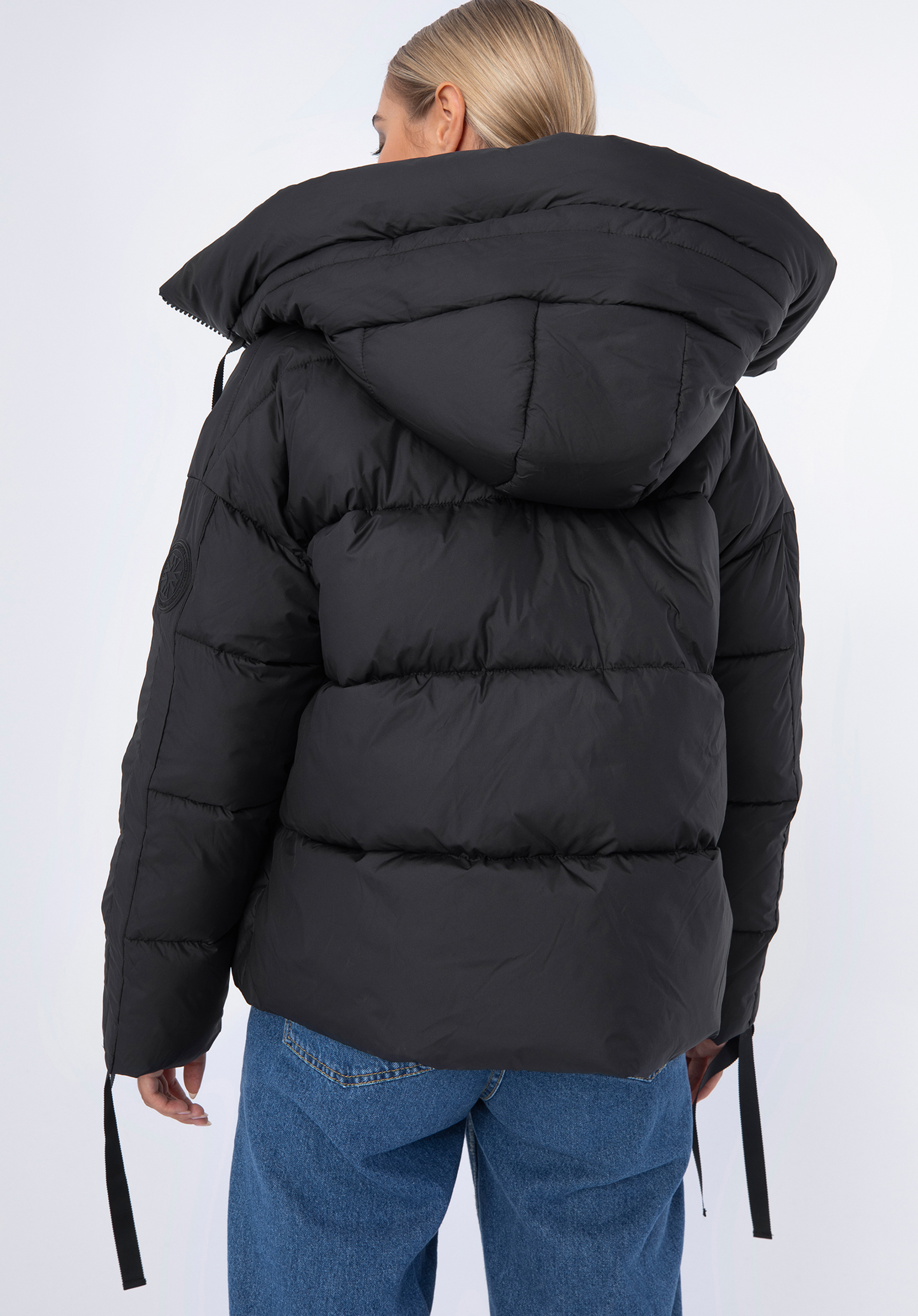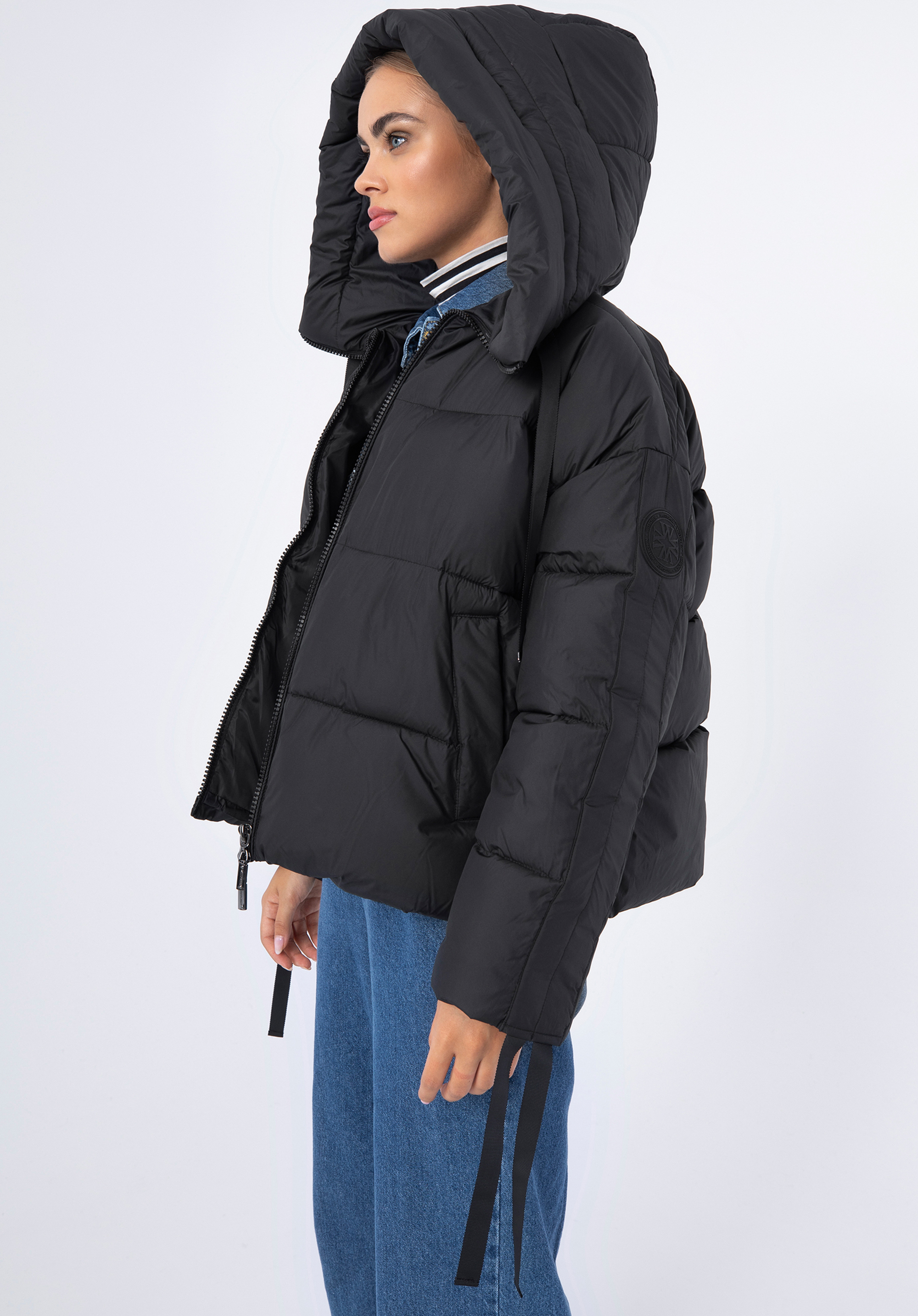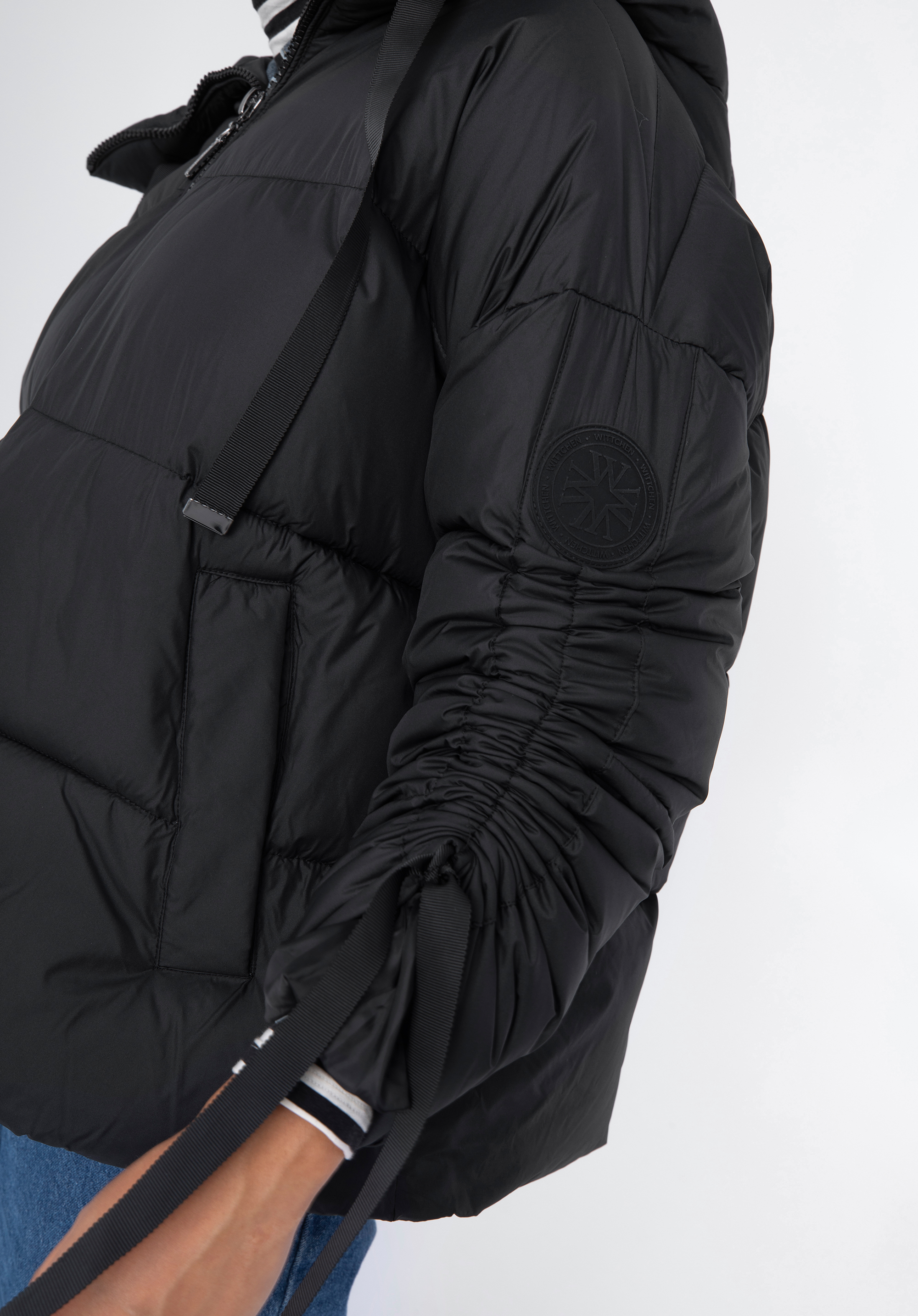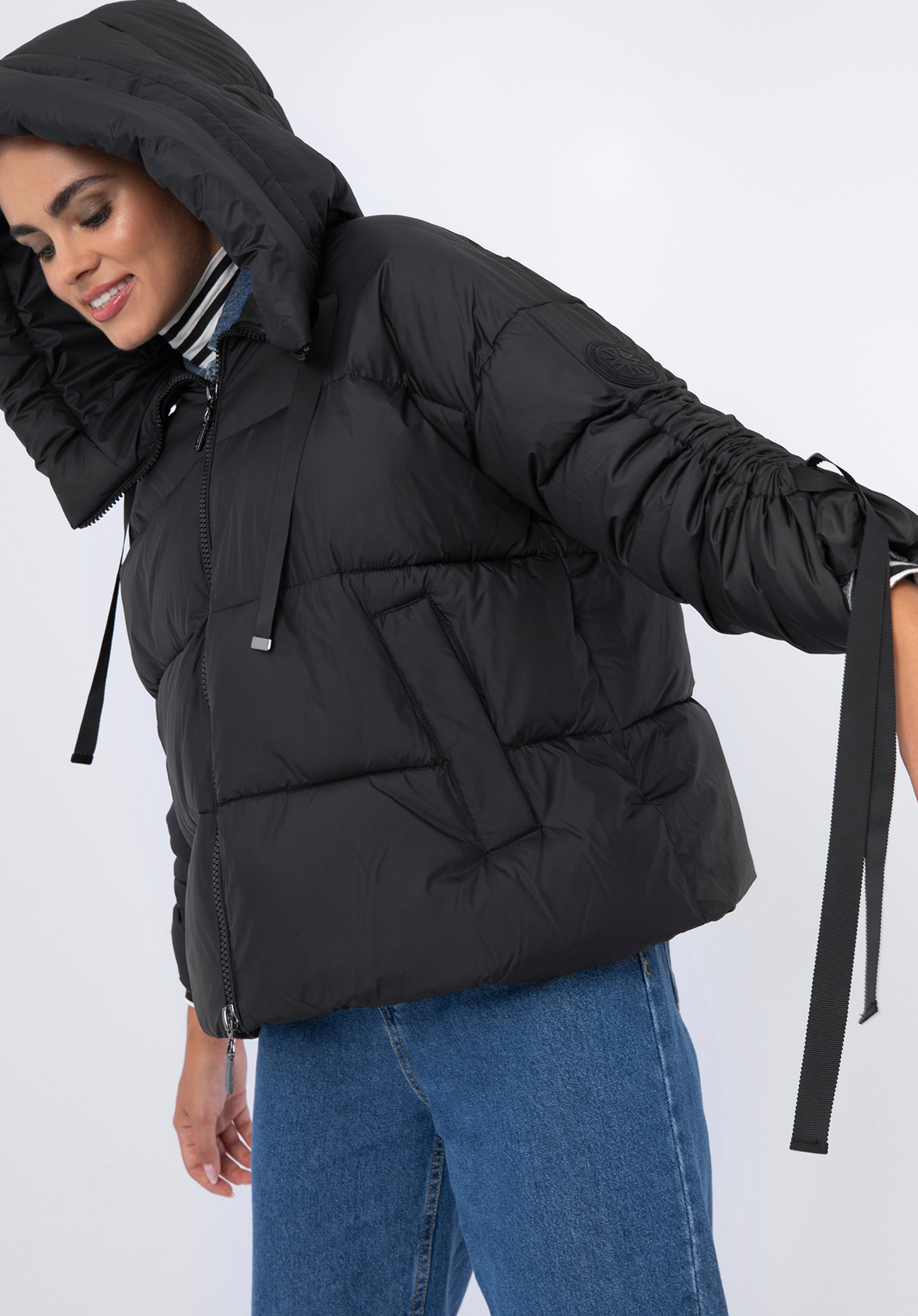 Жіноча стьобана куртка оверсайз з манжетами на рукавах чорна