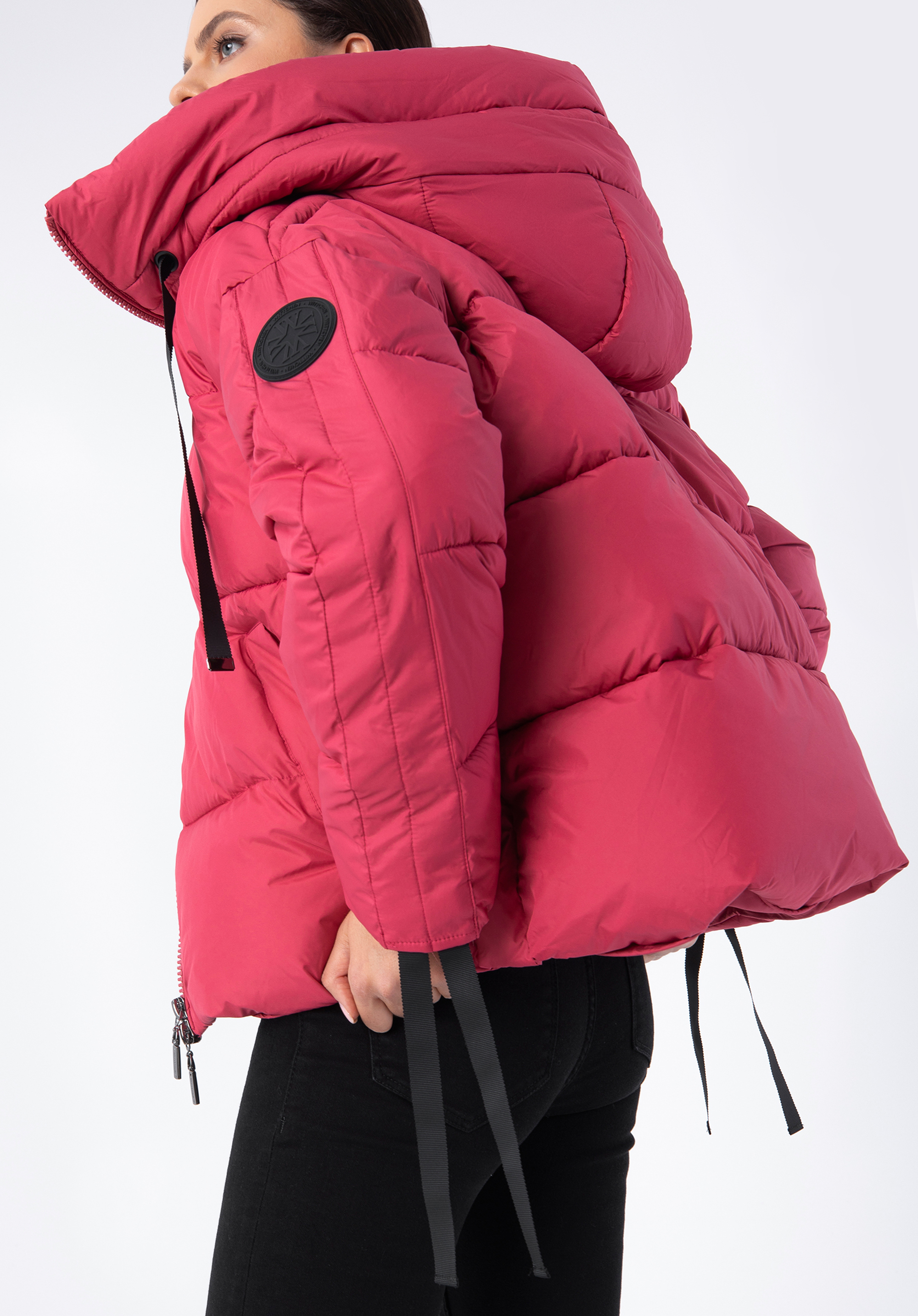 Ця оригінальна куртка - чудовий вибір для холодних місяців. Модний крій оверсайз доповнений довгими рукавами з манжетами-стрічками, завдяки чому їх можна підганяти і носити як завгодно. На рівні стегон прихований шнурок, який захистить вас від холоду. Укорочений крій чудово виглядатиме з брюками із завищеною талією та чобітьми на підборах, також можна поєднувати його зі спортивним стилем та улюбленими кросівками. Жіноча стьобана куртка оверсайз з манжетами на рукавах - унікальний аксесуар, який можна носити кожен день.