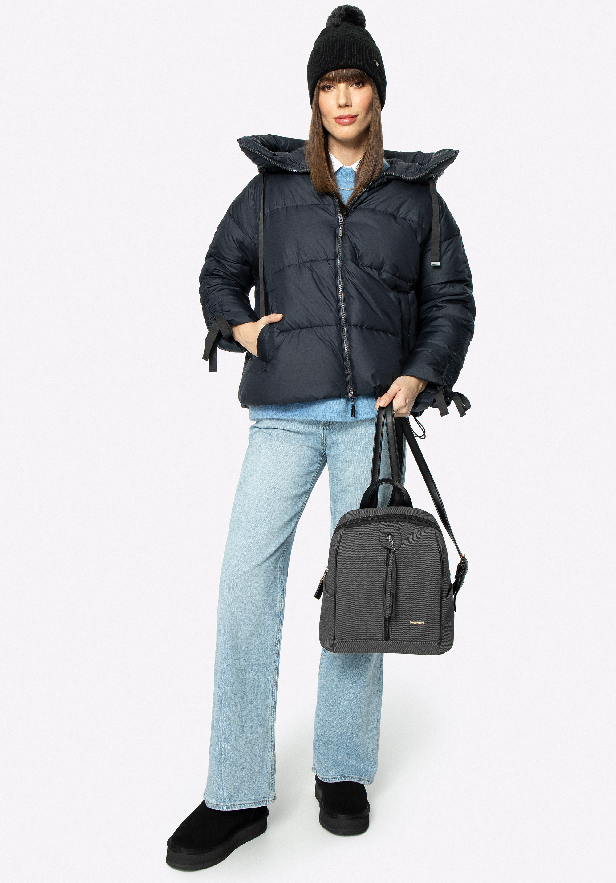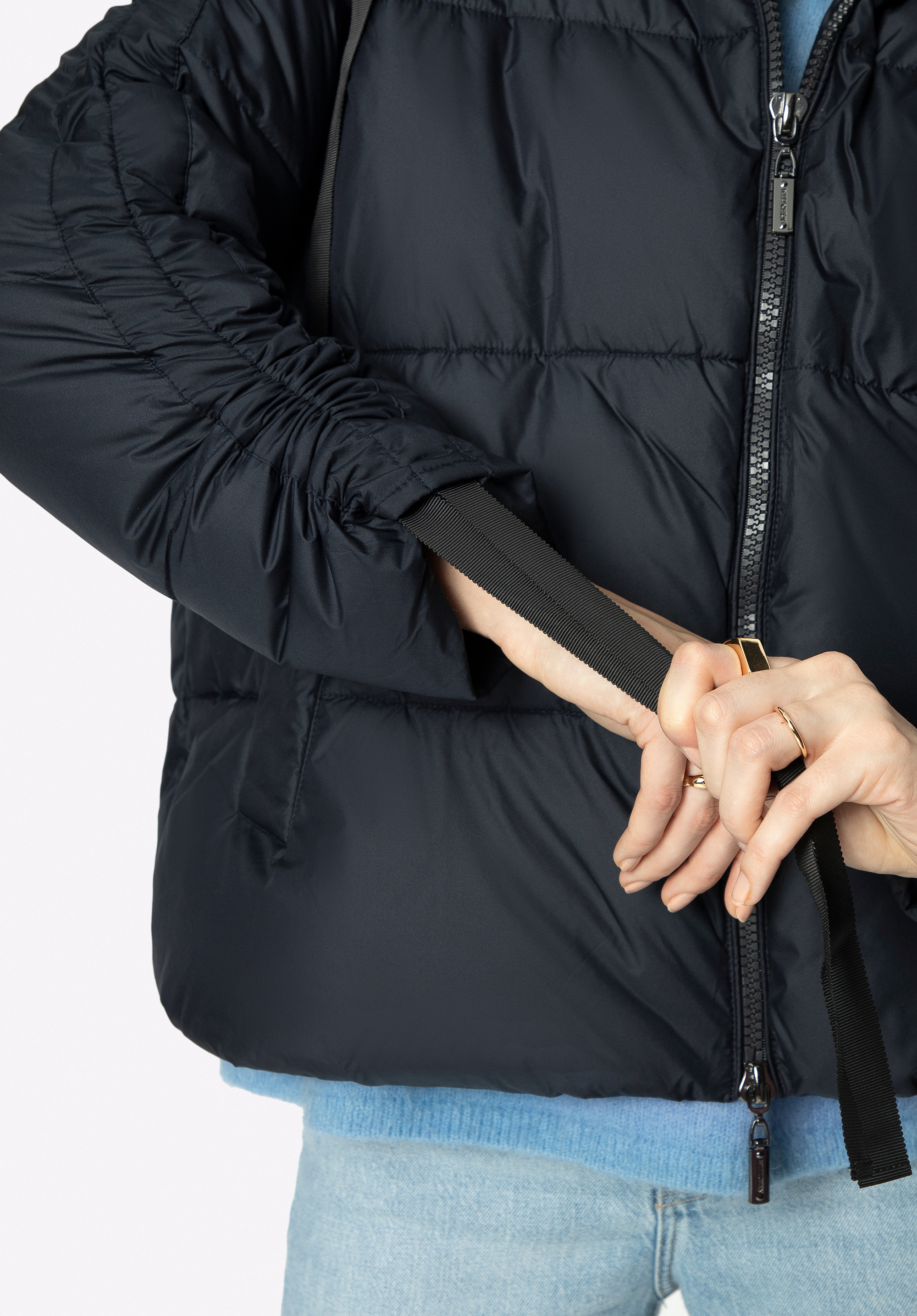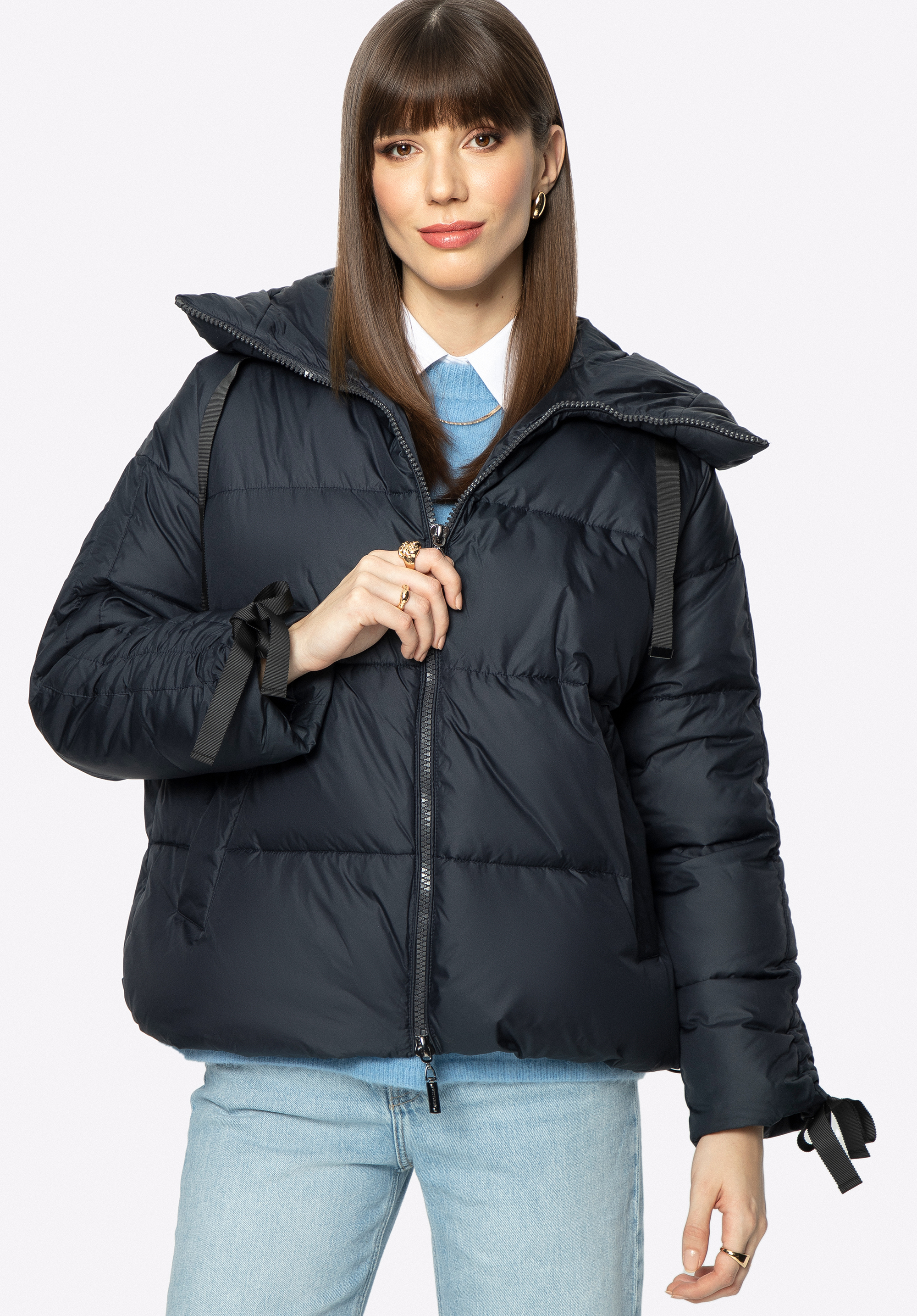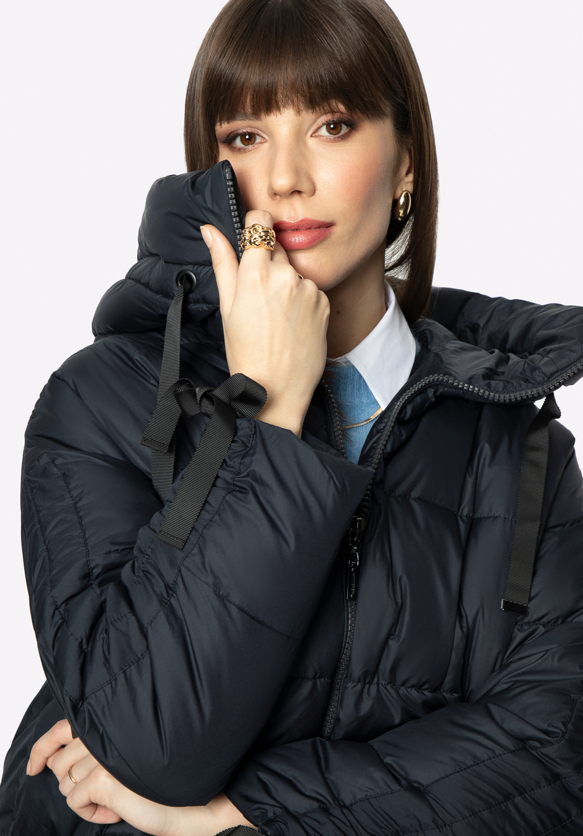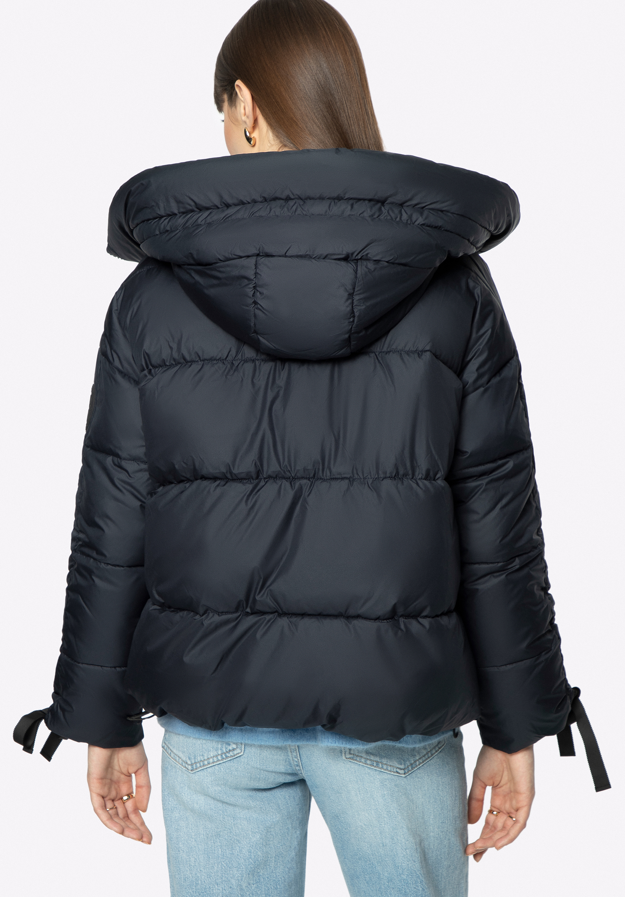 Ця оригінальна куртка - чудовий вибір для холодних місяців. Модний крій оверсайз доповнений довгими рукавами з манжетами-стрічками, завдяки чому їх можна підганяти і носити як завгодно. На рівні стегон прихований шнурок, який захистить вас від холоду. Укорочений крій чудово виглядатиме з брюками із завищеною талією та чобітьми на підборах, також можна поєднувати його зі спортивним стилем та улюбленими кросівками. Жіноча стьобана куртка оверсайз з манжетами на рукавах - унікальний аксесуар, який можна носити кожен день.
