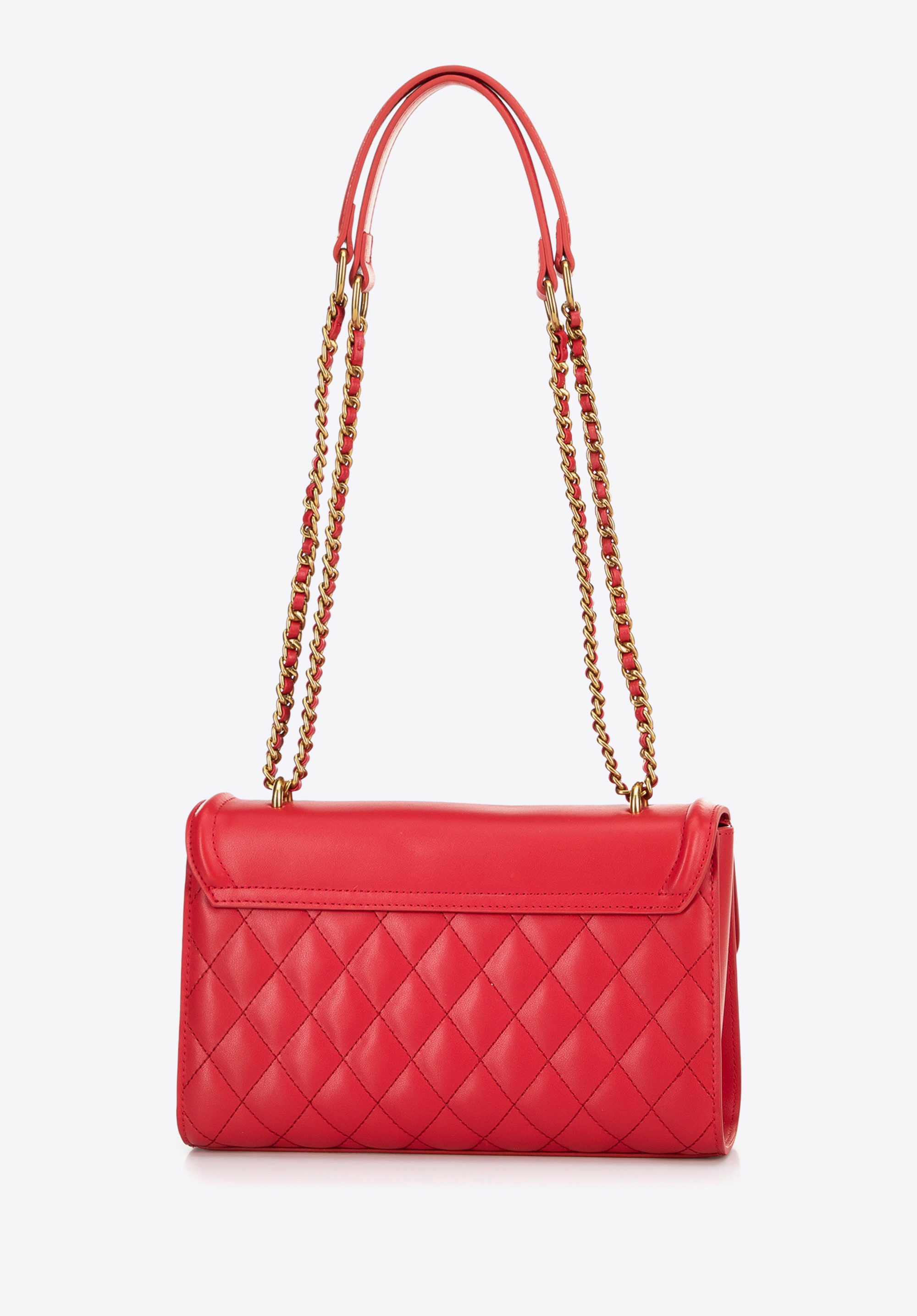 Жіноча стьобана сумка через плече з натуральної шкіри червона