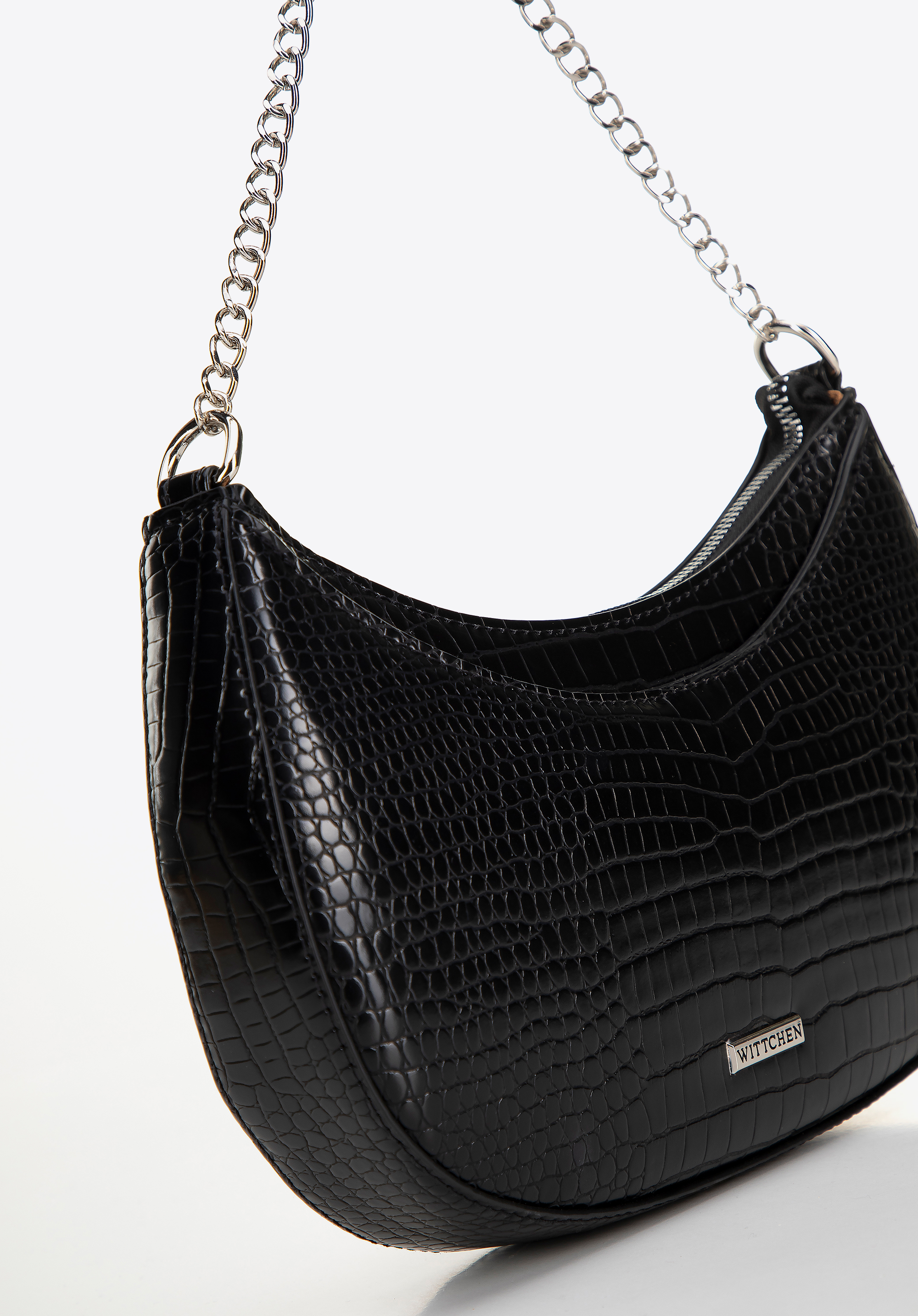 - Стильні деталі: елегантний ланцюжок додає нотку витонченості та прикраси, підкреслюючи унікальний дизайн сумки.