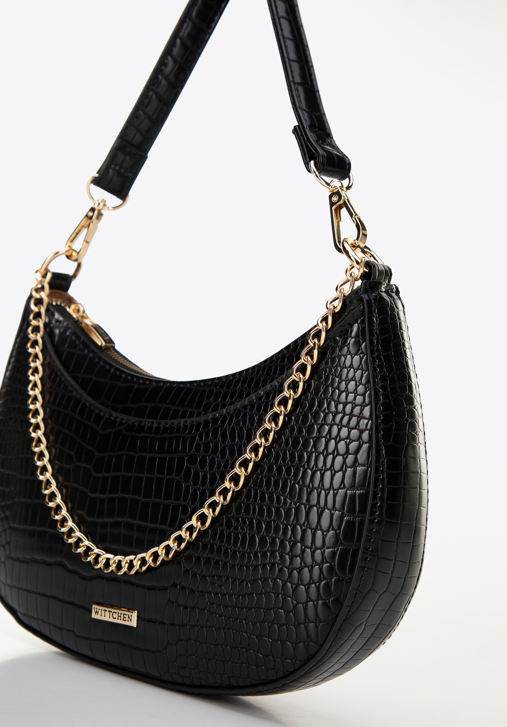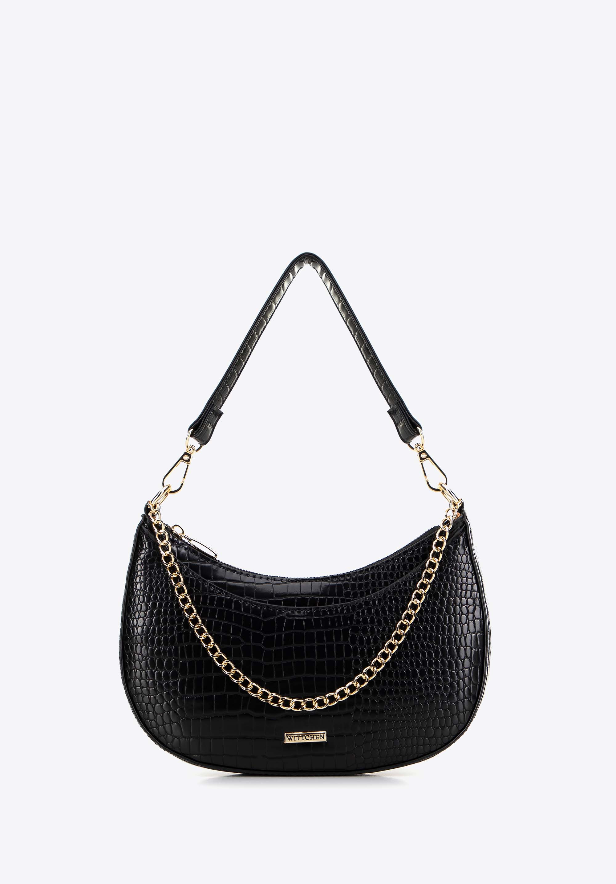 Жіноча сумка-багет з ланцюжком Колір: чорно-золотий