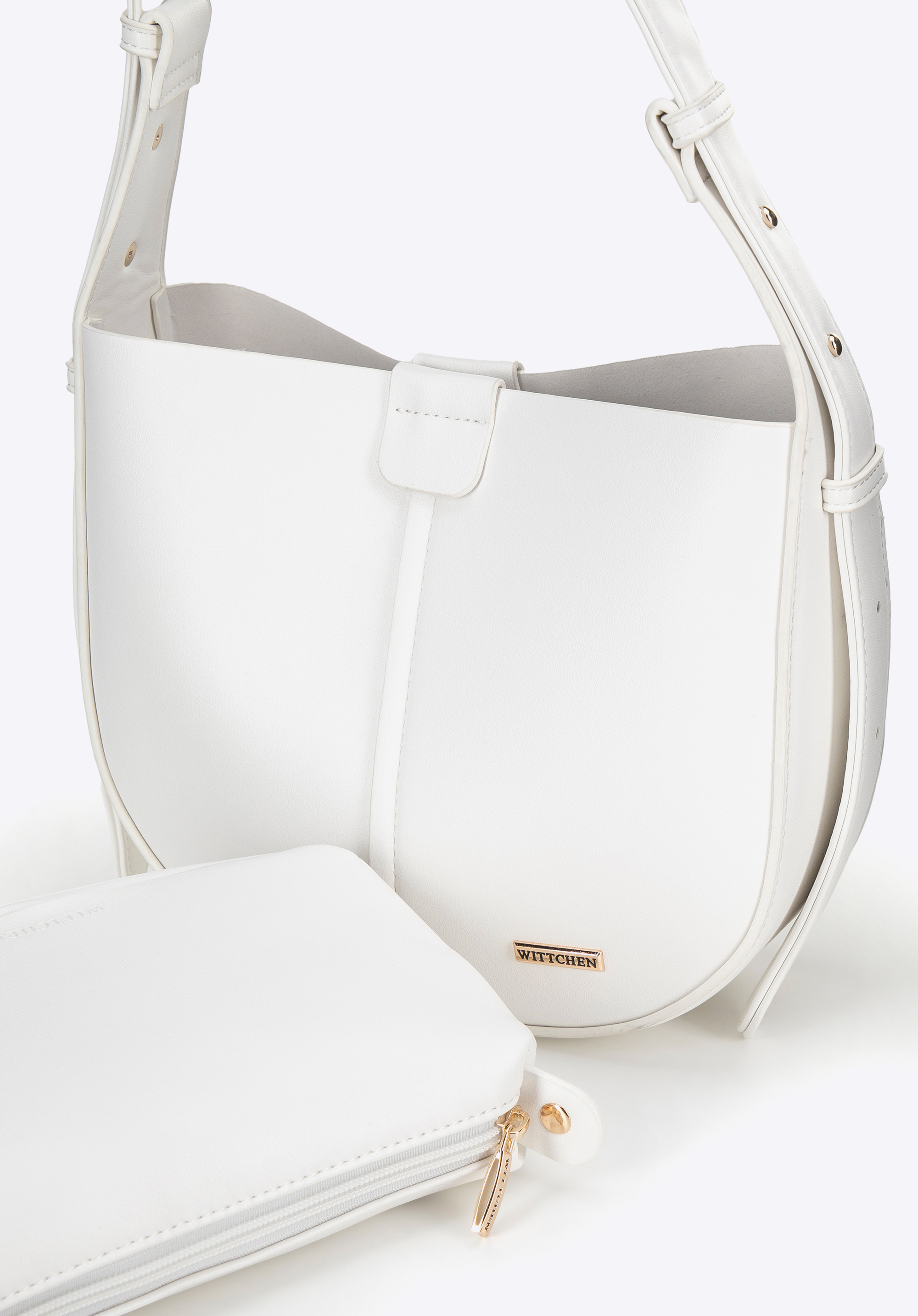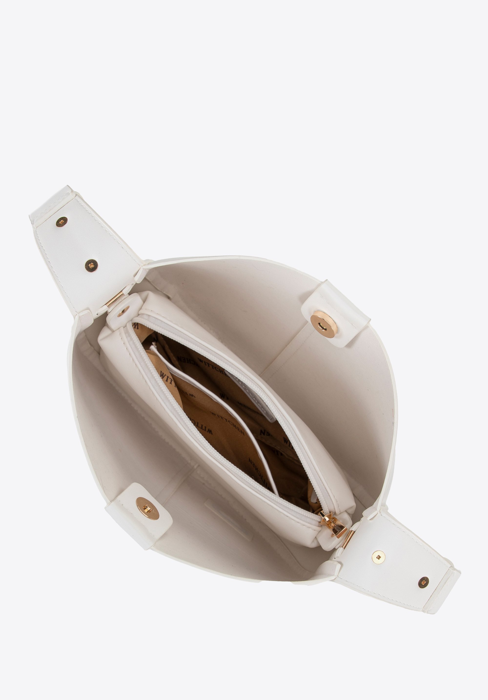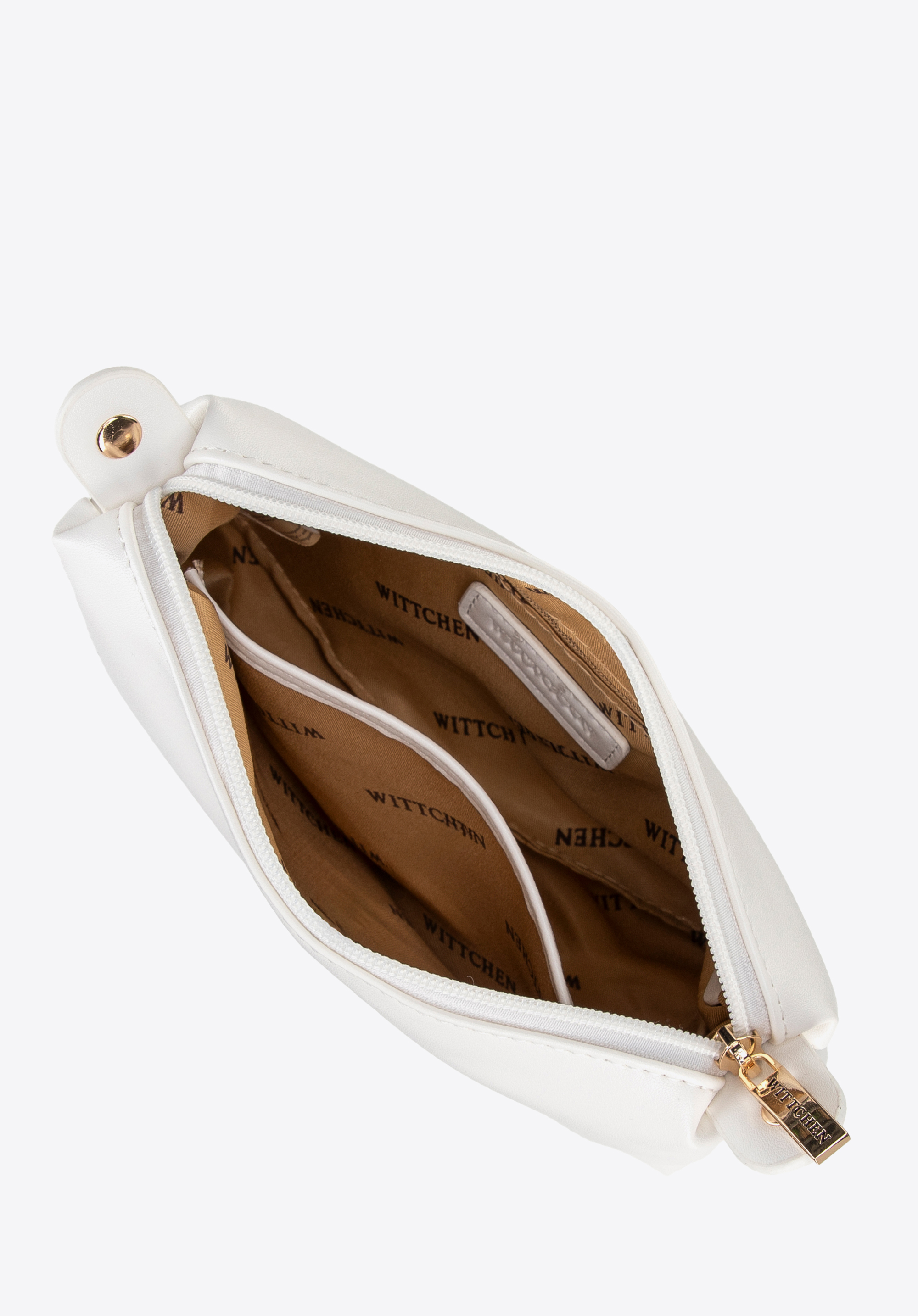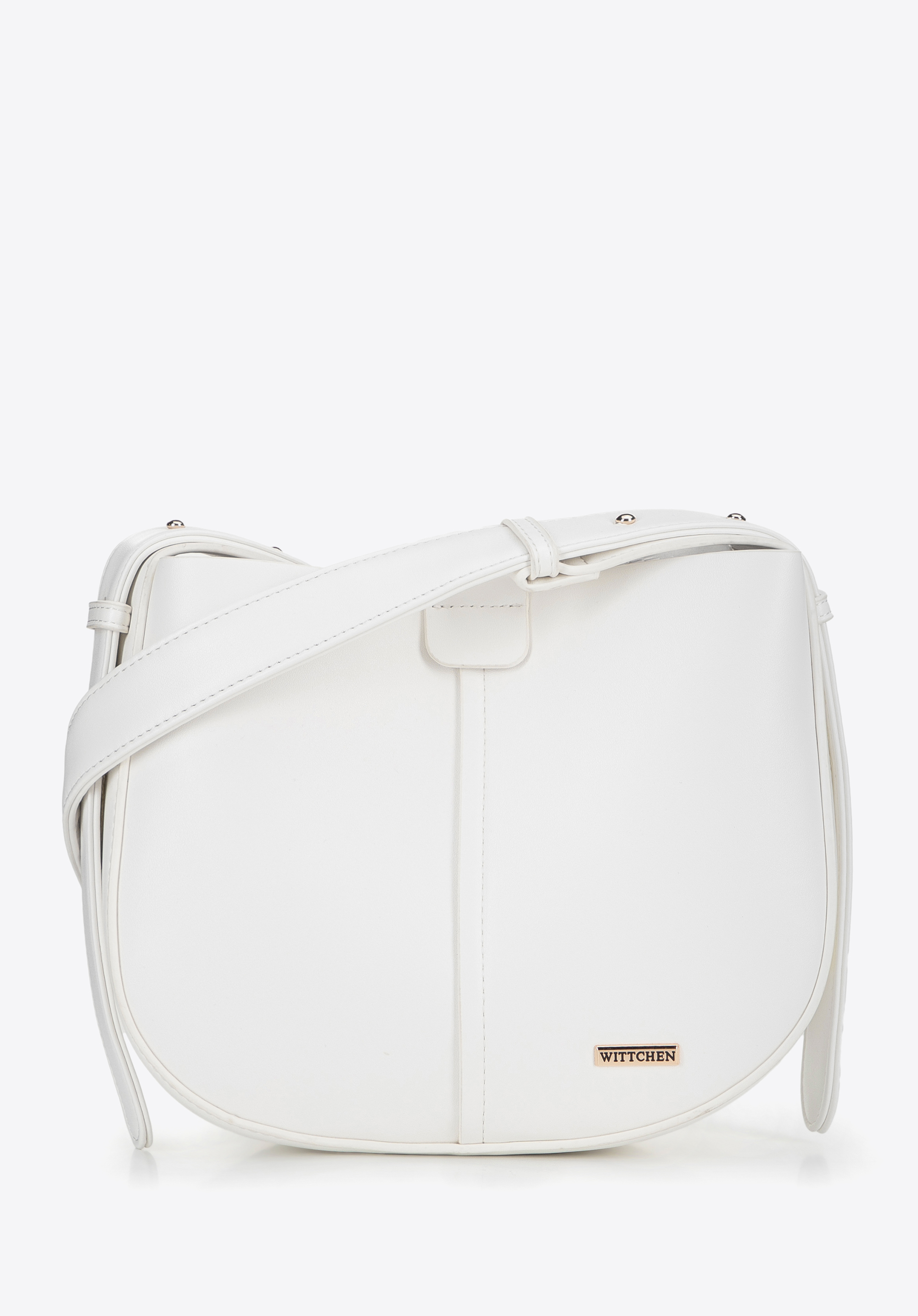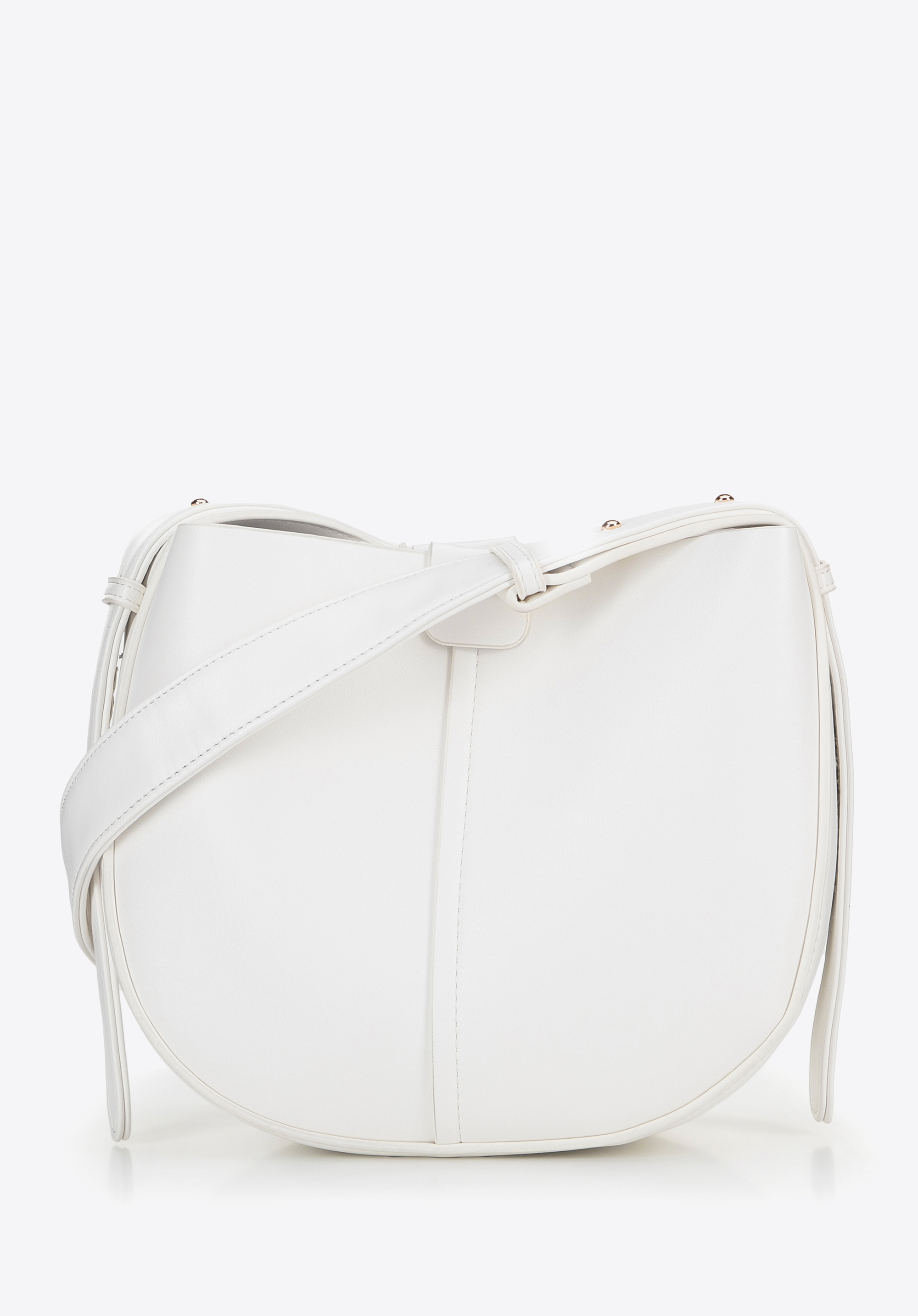 Ця унікальна сумка через плече поєднує в собі класичний стиль та сучасну функціональність. Вона виготовлена з екошкіри, має витончену напівкруглу форму, яка додасть шарму будь-якому образу. Застібається на магнітну застібку, що забезпечує швидкий доступ до внутрішнього простору і приховує всередині практичну космітичку, яка має дві кишені - одну відкриту і одну на блискавці. Регульований ремінь дозволяє пристосувати сумку до ваших індивідуальних потреб.