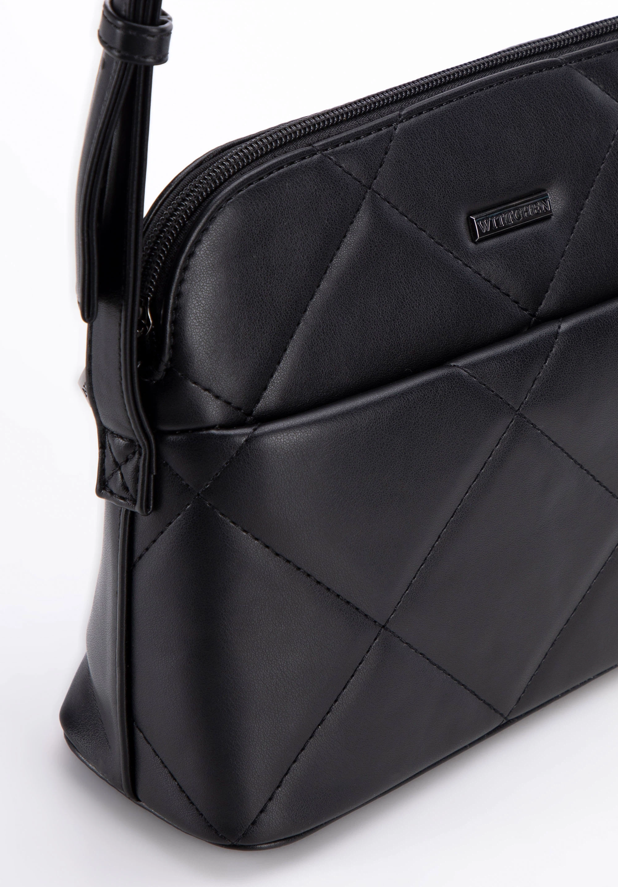 Наша елегантна жіноча сумка через плече поєднує в собі сучасний дизайн і унікальний стиль. Виготовлена з високоякісної екошкіри, ця сумка не тільки модна, але й надзвичайно практична. Геометричні шви надають їй унікальний характер, а логотип виробника на передній частині підкреслює ексклюзивність.
