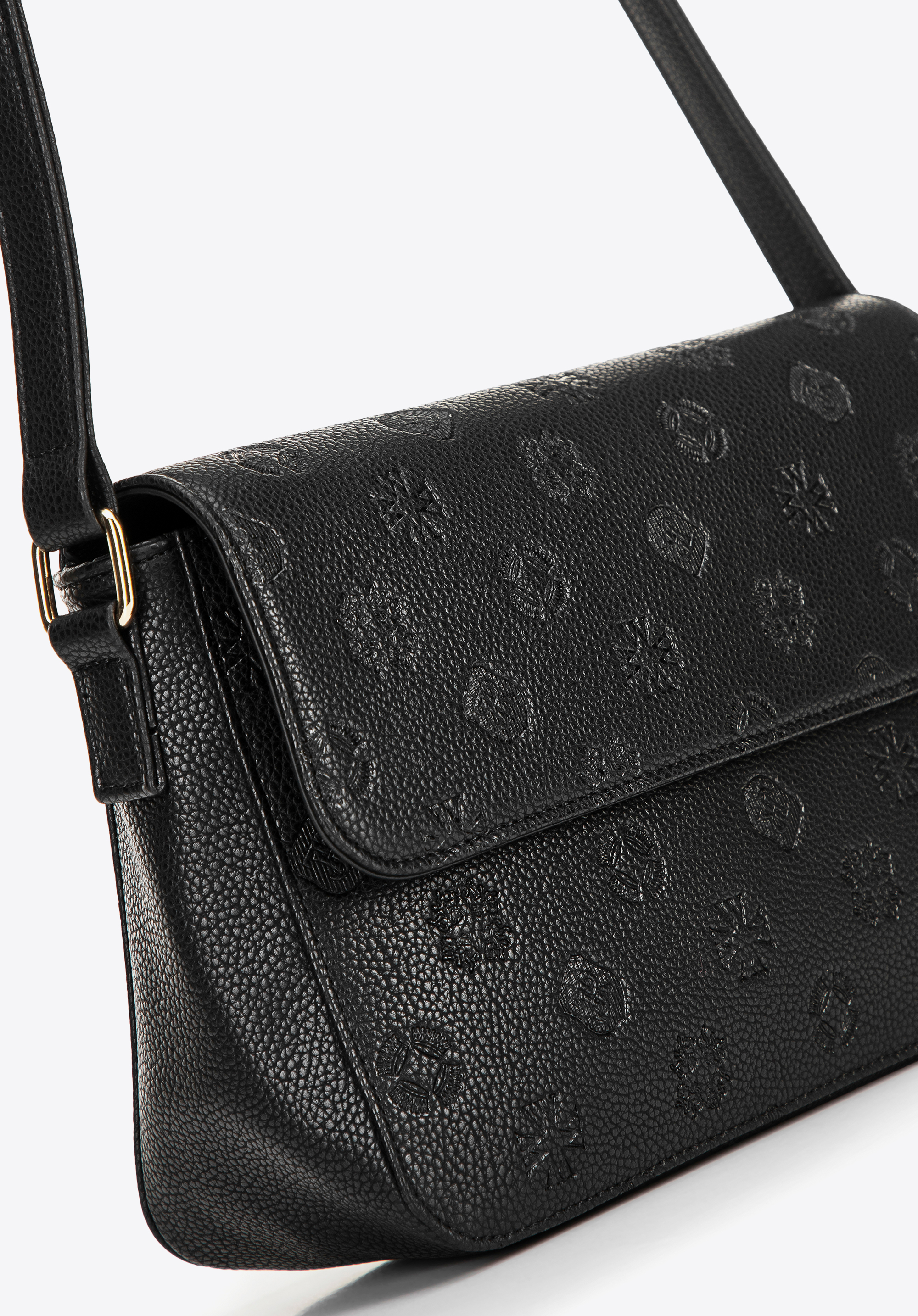 Розроблена для жінок, які цінують стиль і комфорт, ця сумка через плече стане ідеальним доповненням до вашого гардеробу. Виготовлена з екошкіри, вона поєднує сучасний дизайн з позачасовою елегантністю. Корпус має тиснення з логотипом бренду, створеним за допомогою спеціалізованої технології та ледь помітного штрихування, що додає елегантності та виразності загальному дизайну. Практична та стильна, вона закривається на магніт та блискавку, гарантуючи збереження її вмісту.