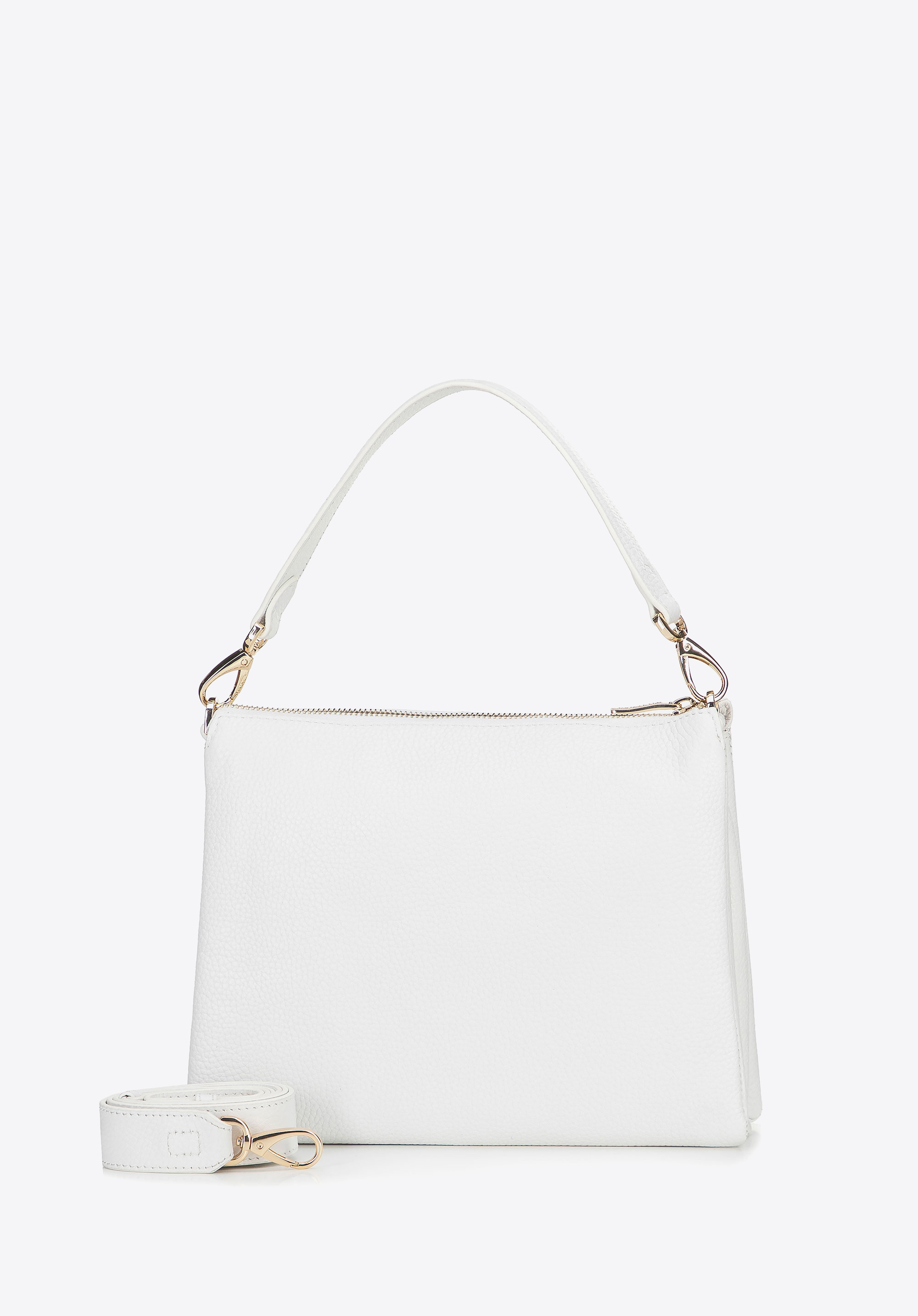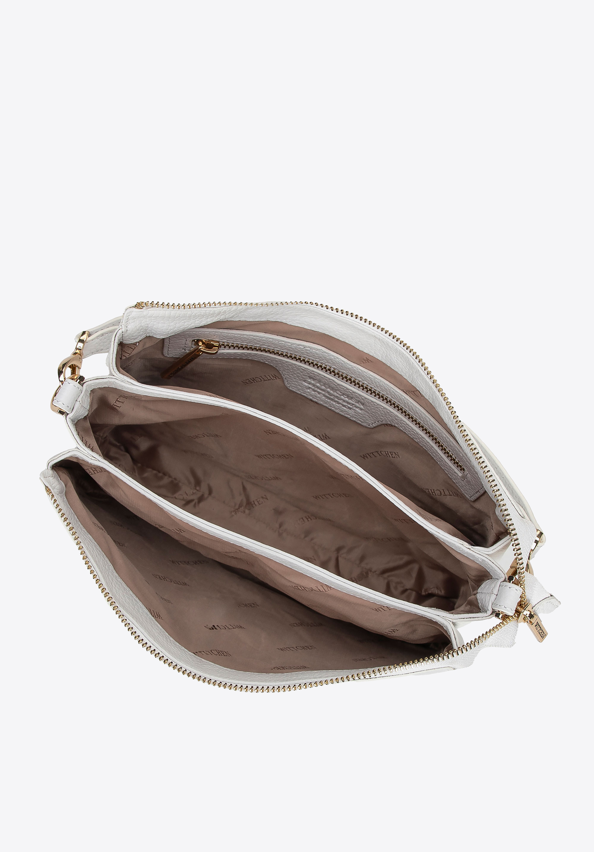 Вічний стиль поєднується з функціональністю! Ця жіноча сумка через плече, виготовлена з зернистої шкіри, виділяється своїм елегантним дизайном і чудовою організацією. Три відділення та додаткова кишеня на блискавці спрощують упорядкування необхідних речей, а регульований знімний ремінь і ручка дозволяють адаптувати стиль носіння відповідно до вашого настрою та випадку. Витончений логотип спереду та надійна застібка-блискавка завершують образ, що робить її ідеальним аксесуаром як для повсякденного використання, так і для особливих свят.