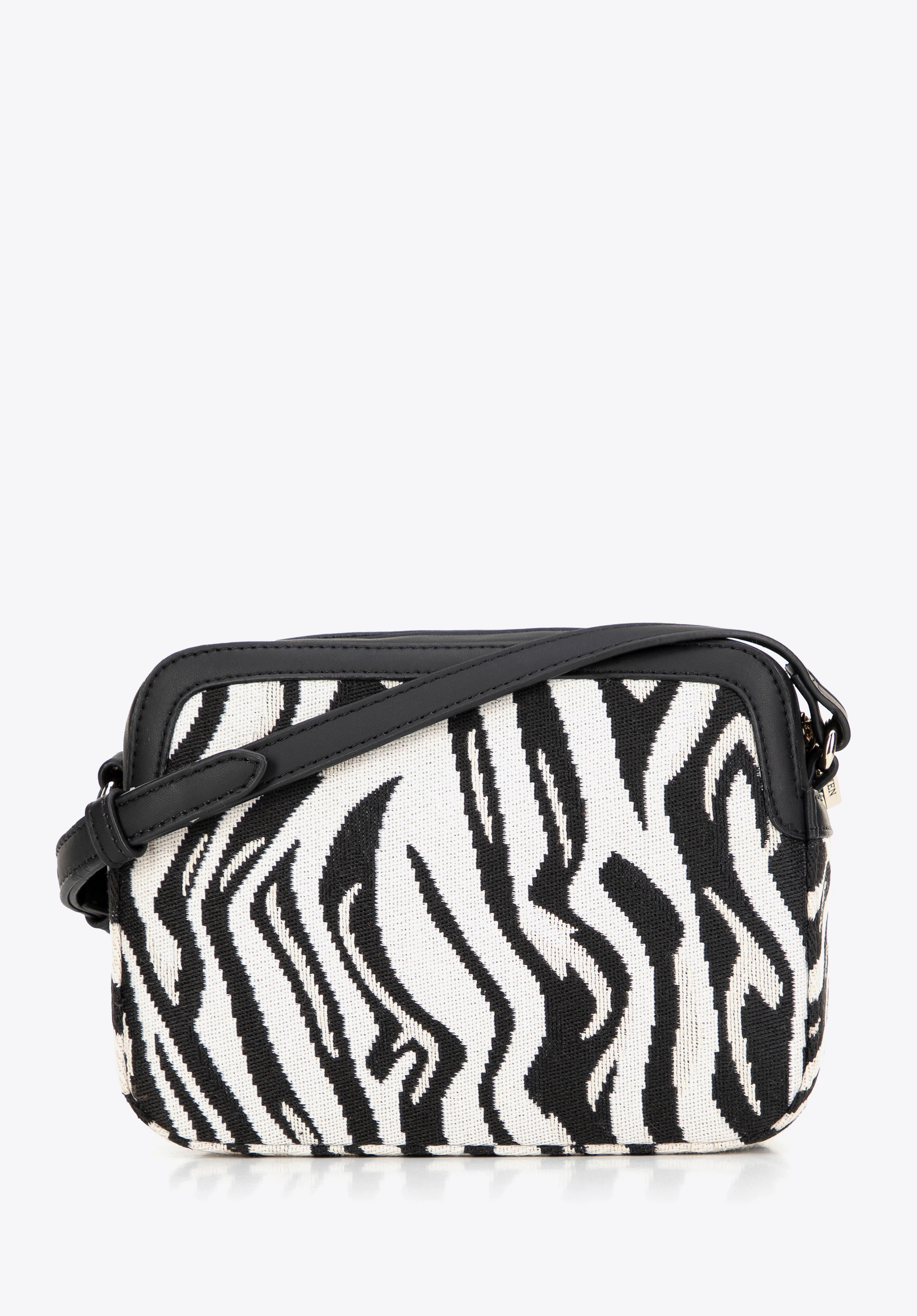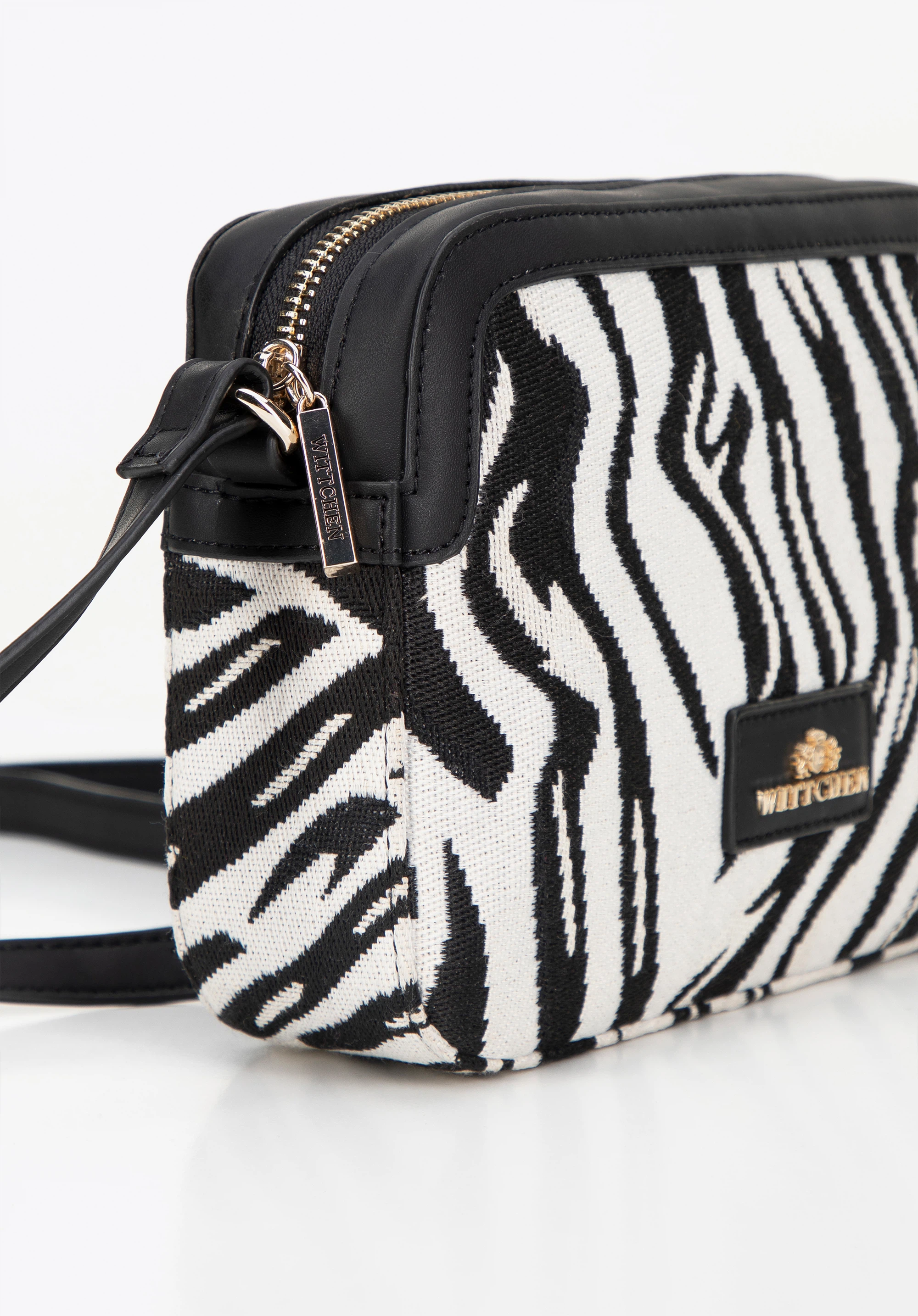 Жіноча сумка через плече з жаккарда та штучної шкіри Колір: біло-чорний