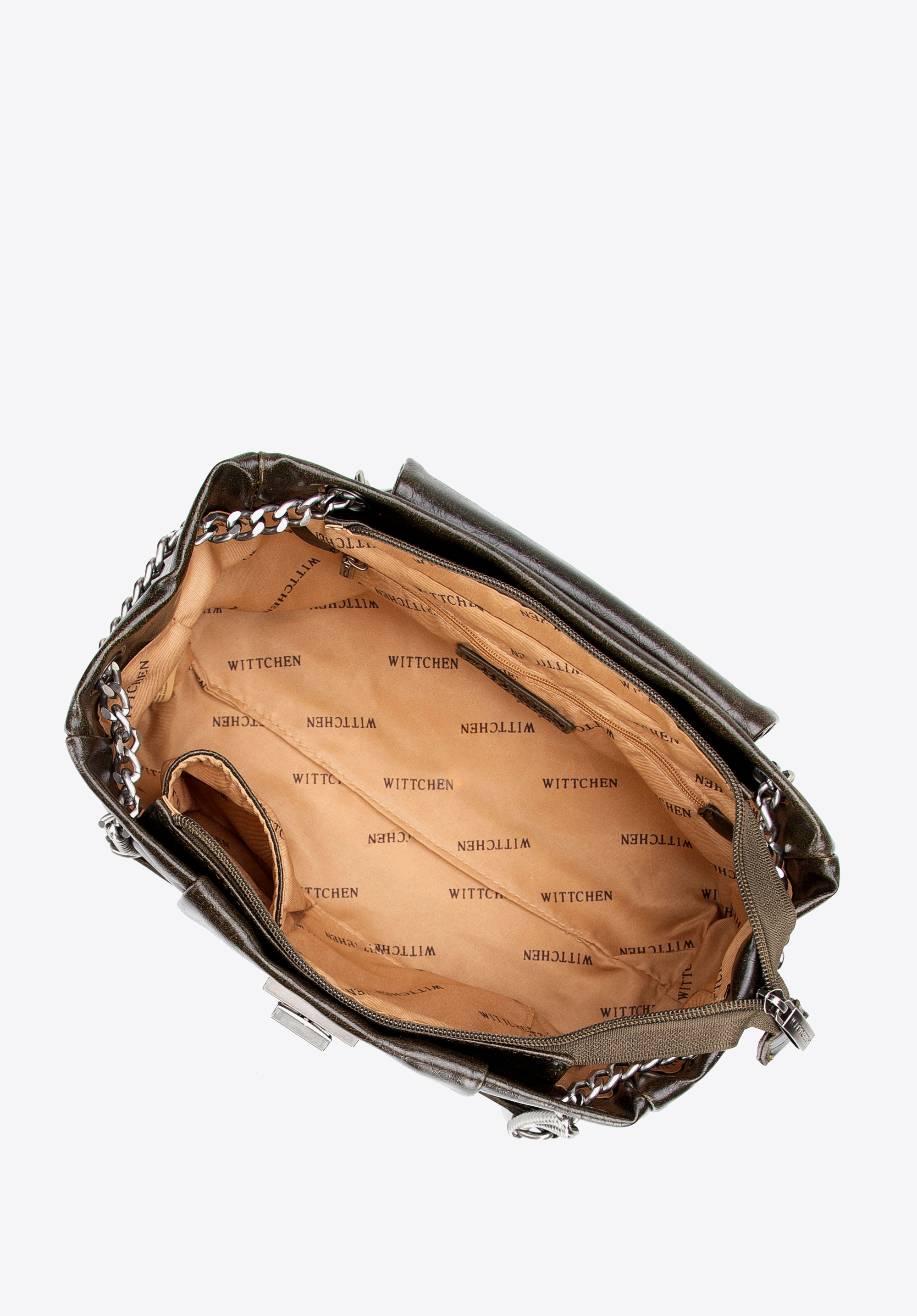 Ця сумка через плече поєднує стильний дизайн із практичними функціями, ідеально підходить для щоденного використання. Виготовлена зі штучної шкіри , вона вражає своїм елегантним виглядом, а ніжний блиск додає нотку вишуканості. Клапан прикрашений декоративною пряжкою , що надає сумці особливість, а тонкий логотип бренду спереду доповнює вишуканий вигляд. Блискавка та магнітна кнопка забезпечують безпеку ваших речей, а внутрішні кишені, включаючи одне відділення на блискавці, дозволяють організувати та легкодоступні ваші необхідні речі.