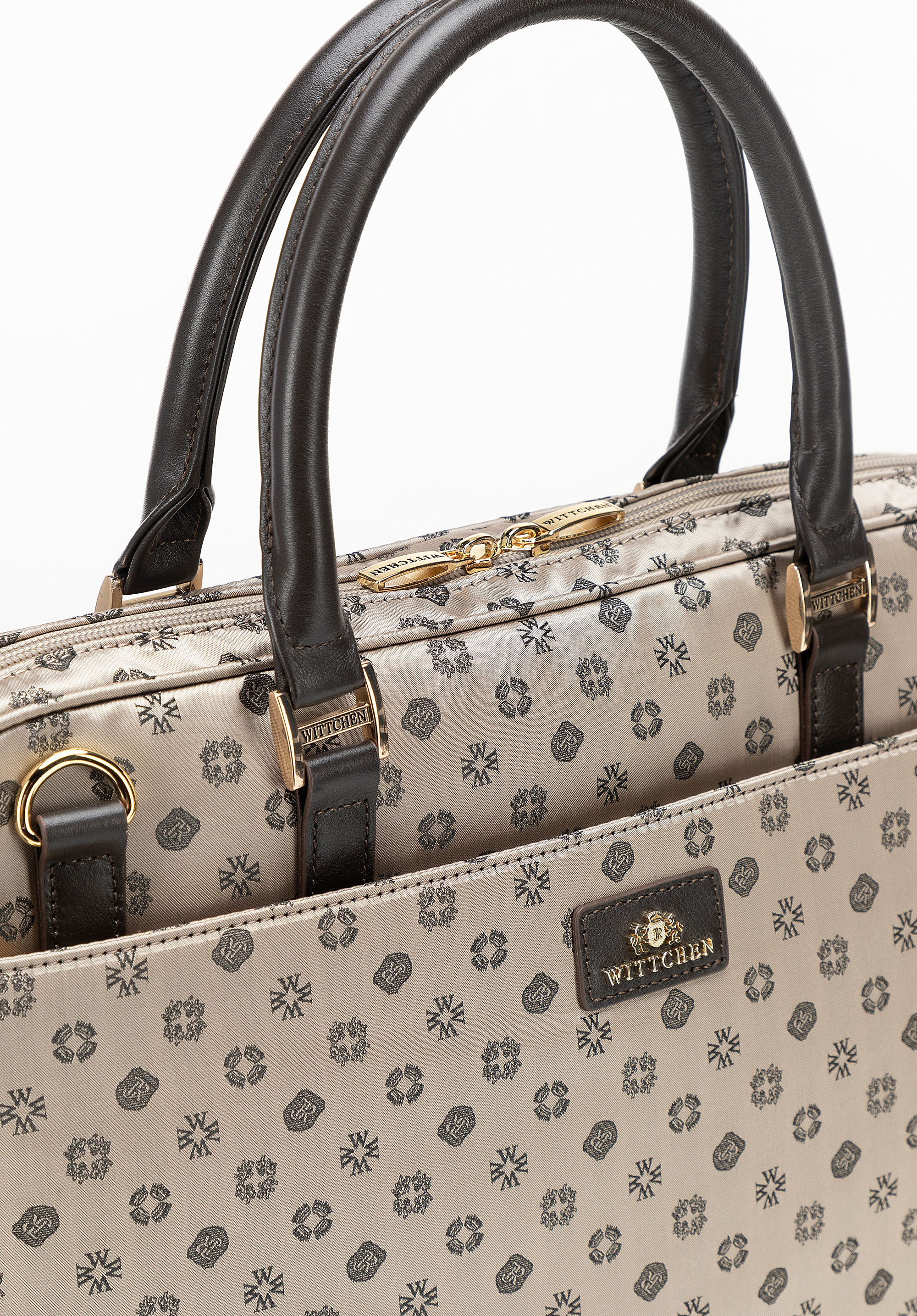- Регульований ремінь: знімний шкіряний ремінь, обшитий тканиною з логотипом WITTCHEN з внутрішньої сторони, дозволяє комфортно носити сумку на плечі.