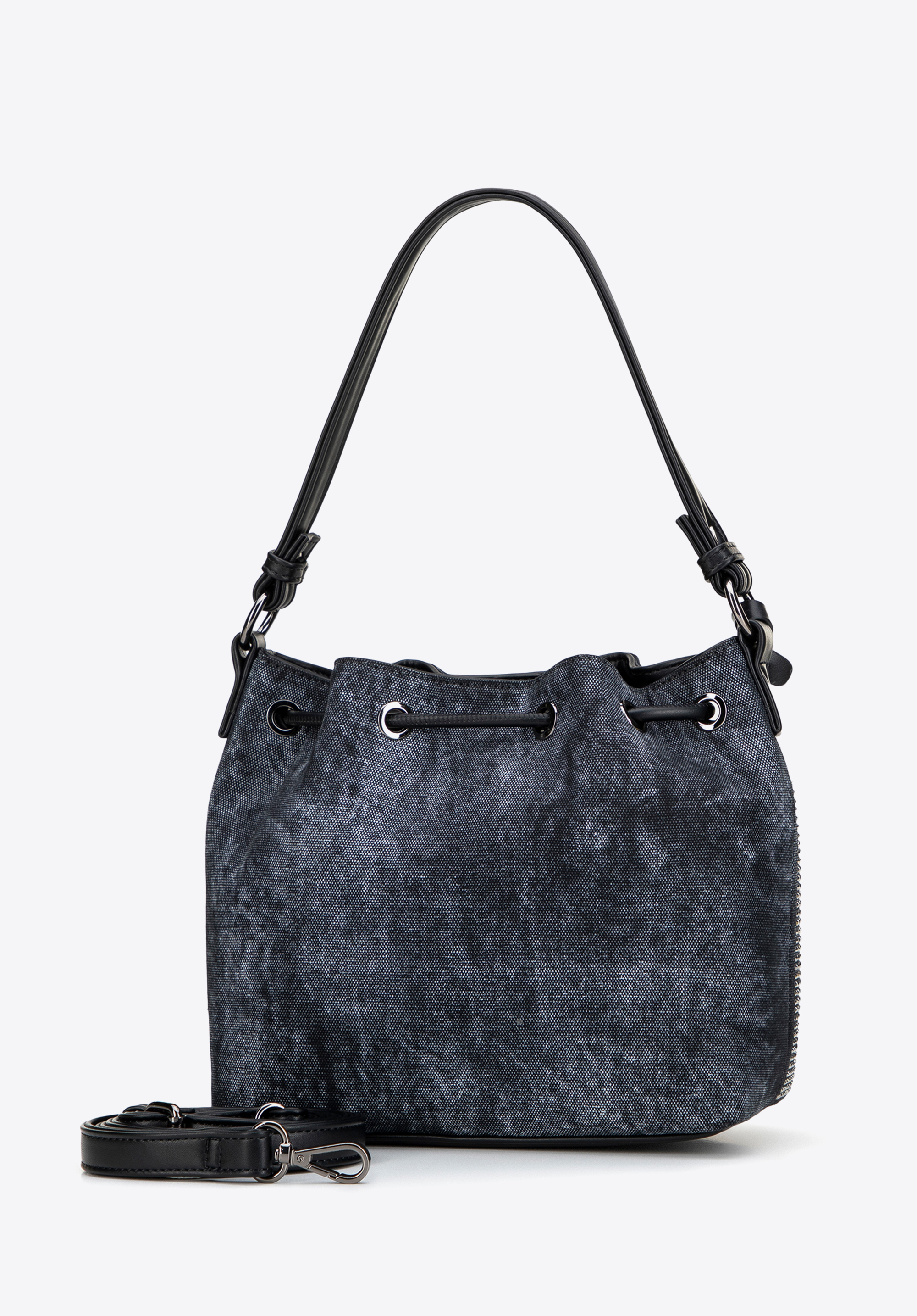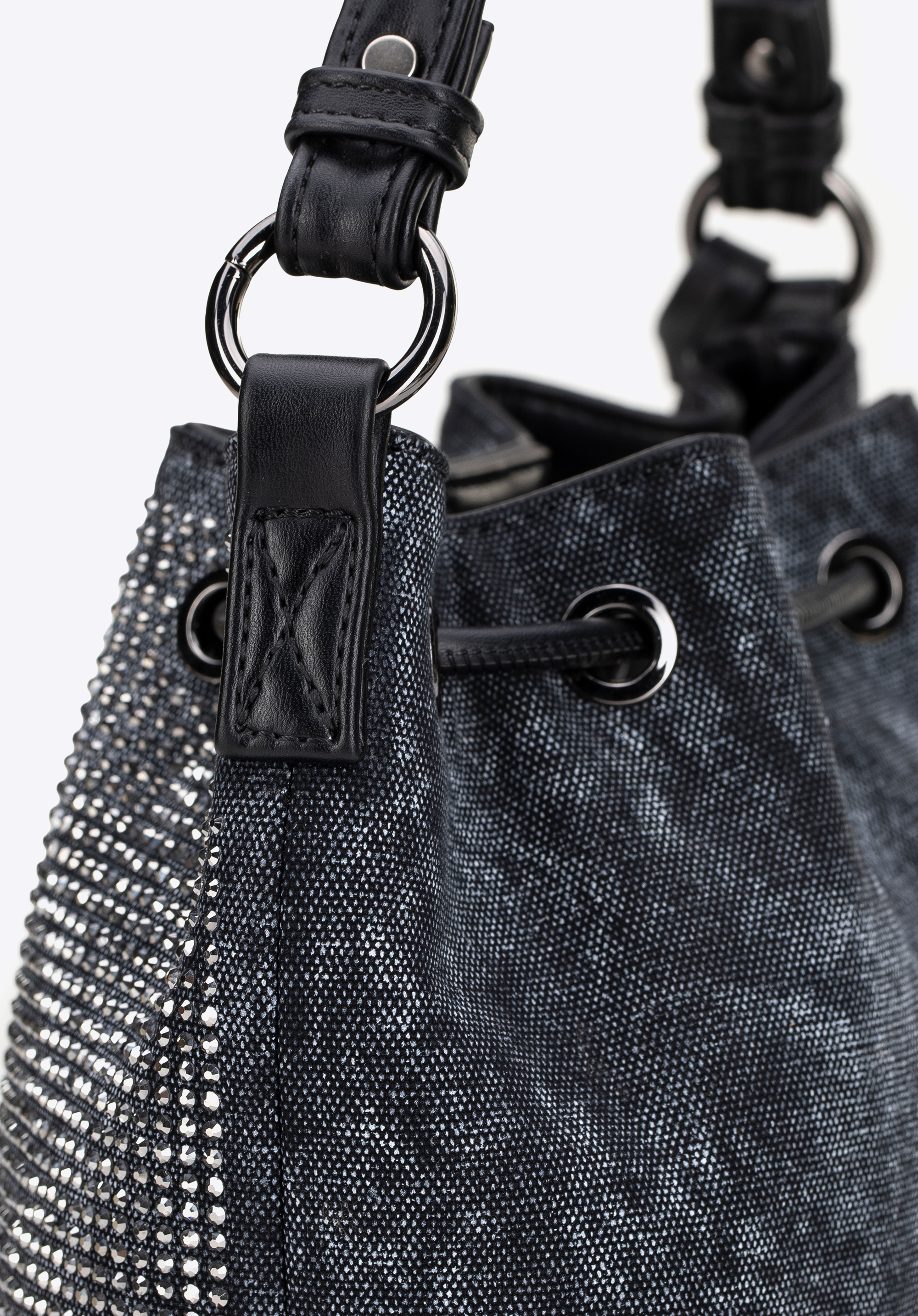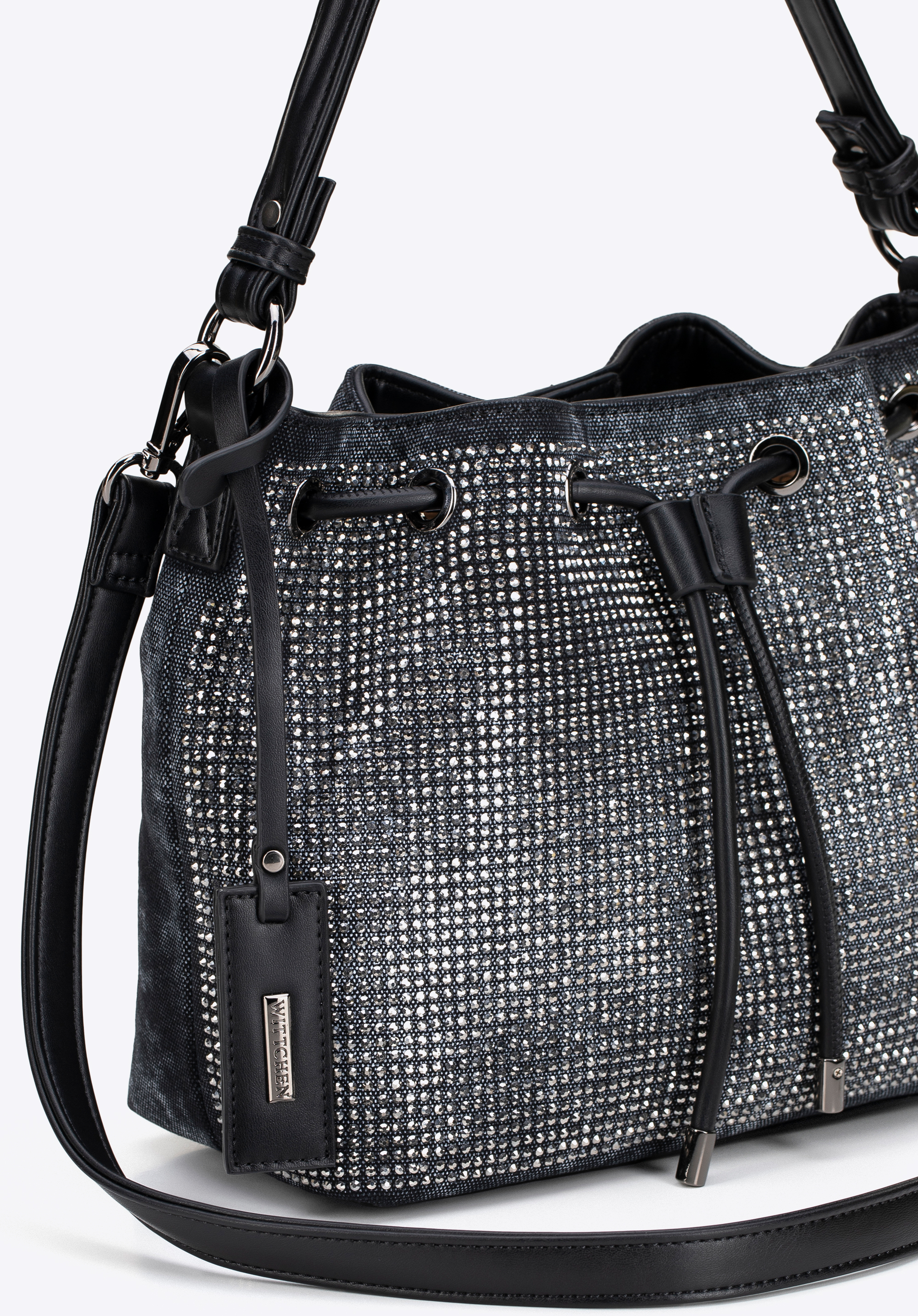 Оберіть сумочку, яка поєднує практичність з ніжним блиском. Виготовлена з бавовни з акцентами зі штучної шкіри на ручці, ремінці, шнурках, основі та оздобленні , вона може похвалитися стилем та сучасним виглядом. Застібка на шнурку та магнітна кнопка надійно зберігають ваші речі, а декоративна знімна китиця додає елегантності та дозволяє легко змінювати стиль. Ніжні стрази спереду додають блиску.
