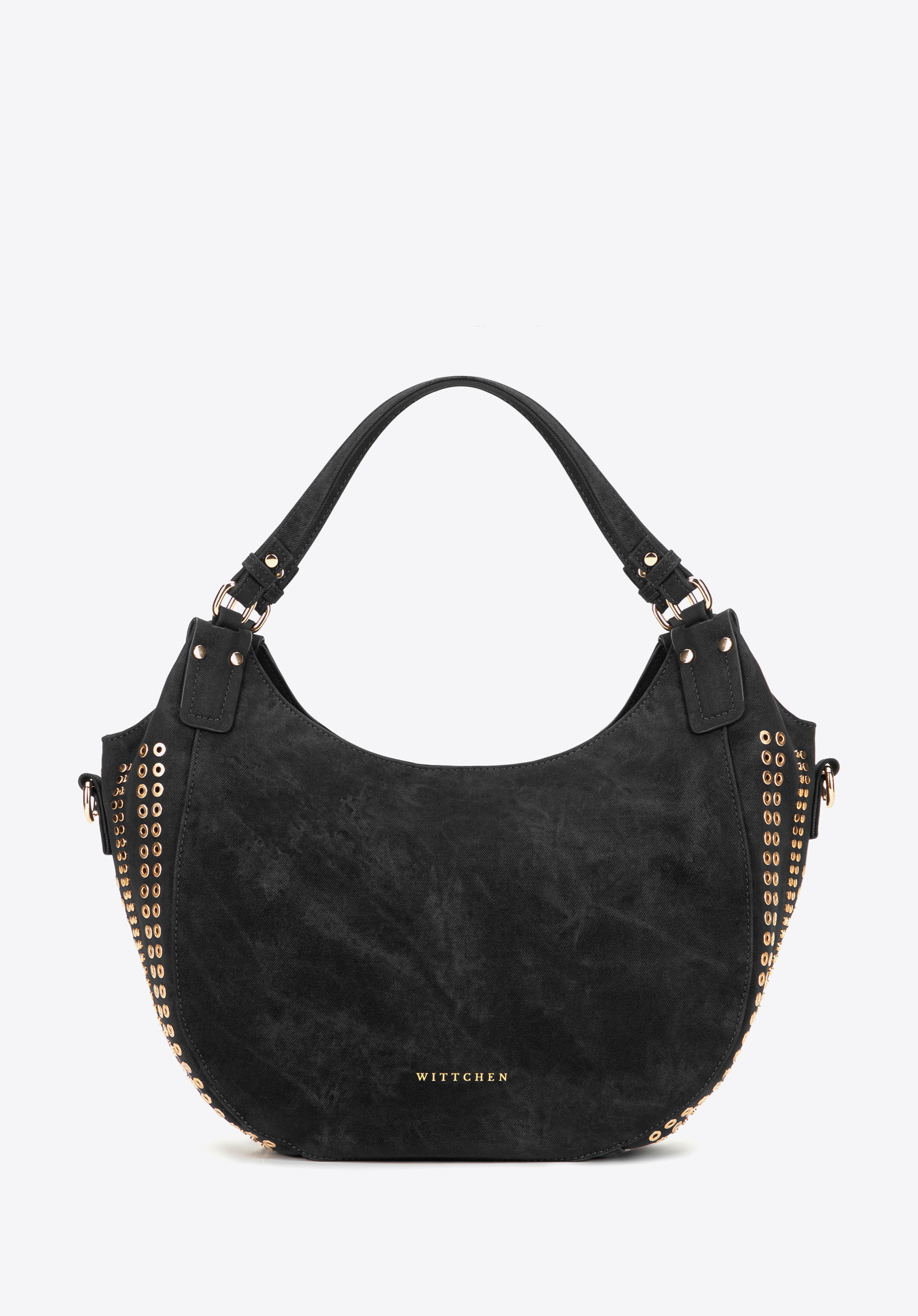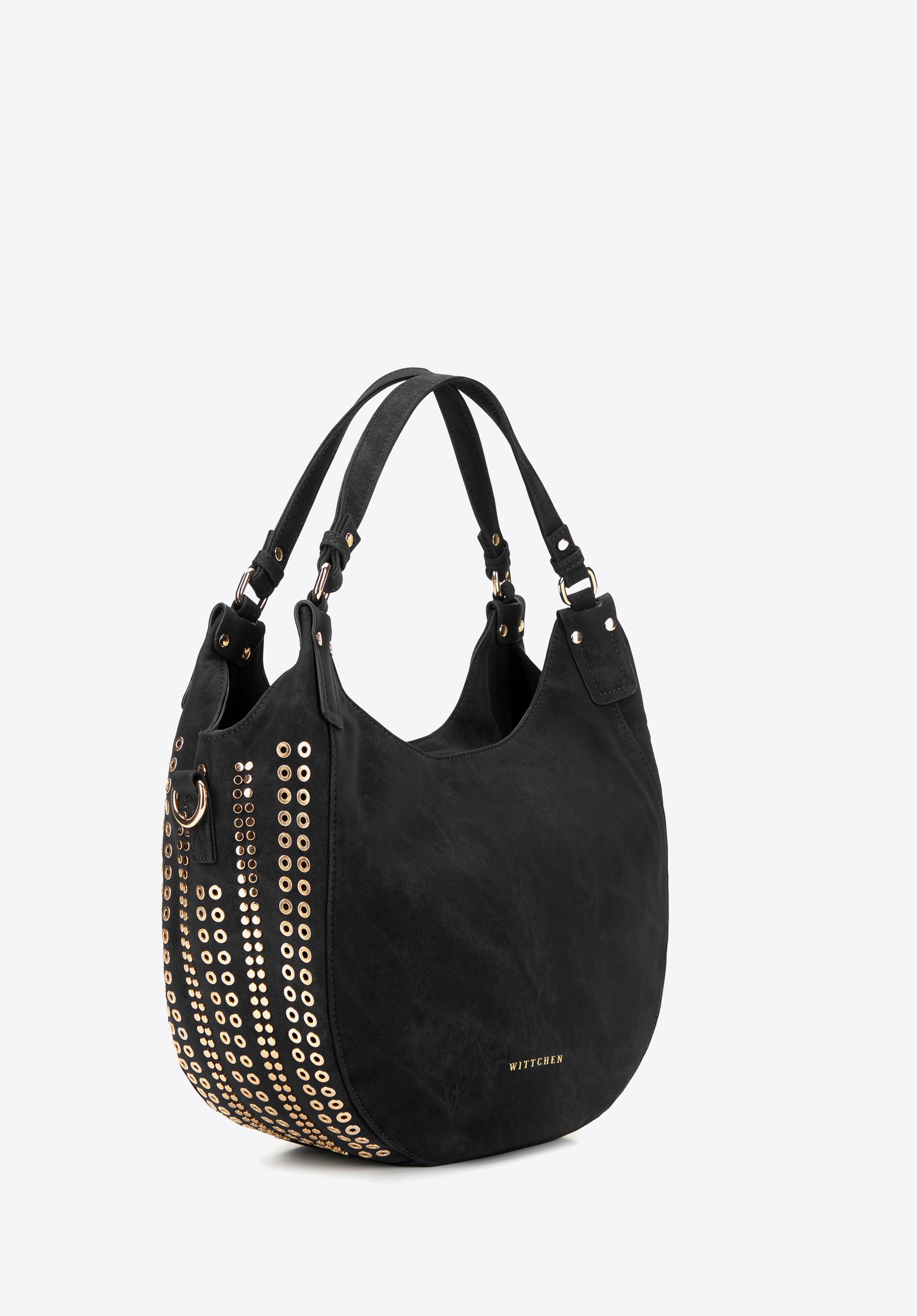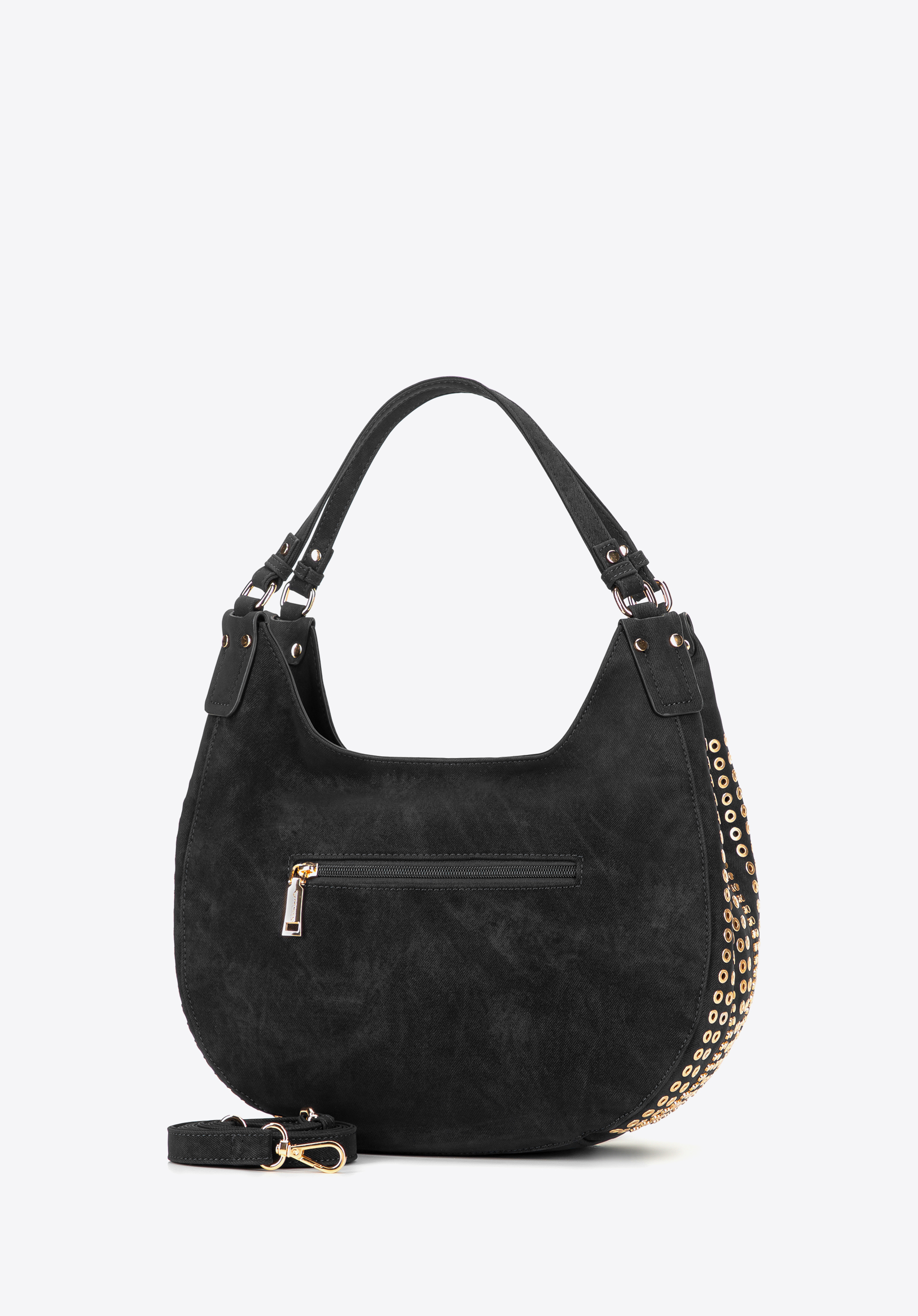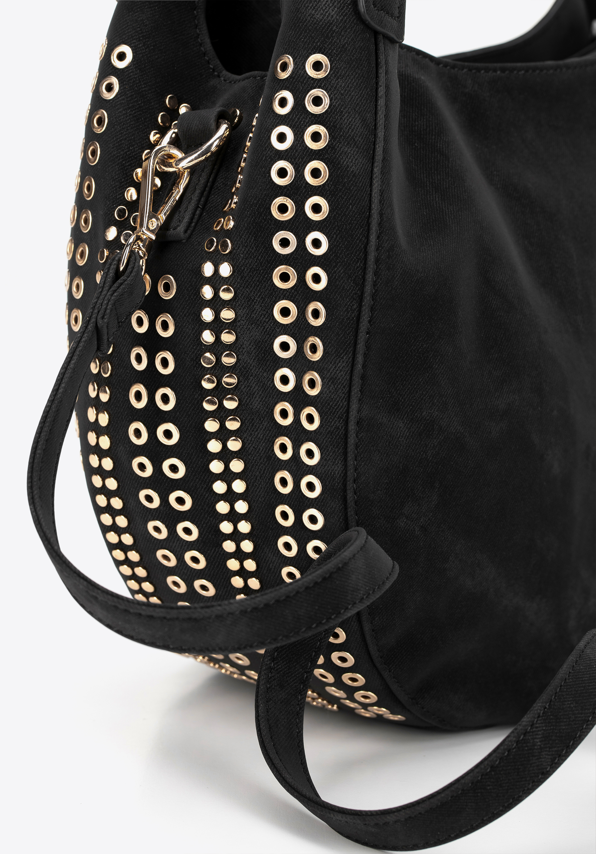 - Дизайн: Сумка в стилі хобо з декоративними шипами з боків , тонкий логотип спереду – сучасний міський дизайн, підкреслений стильними деталями.