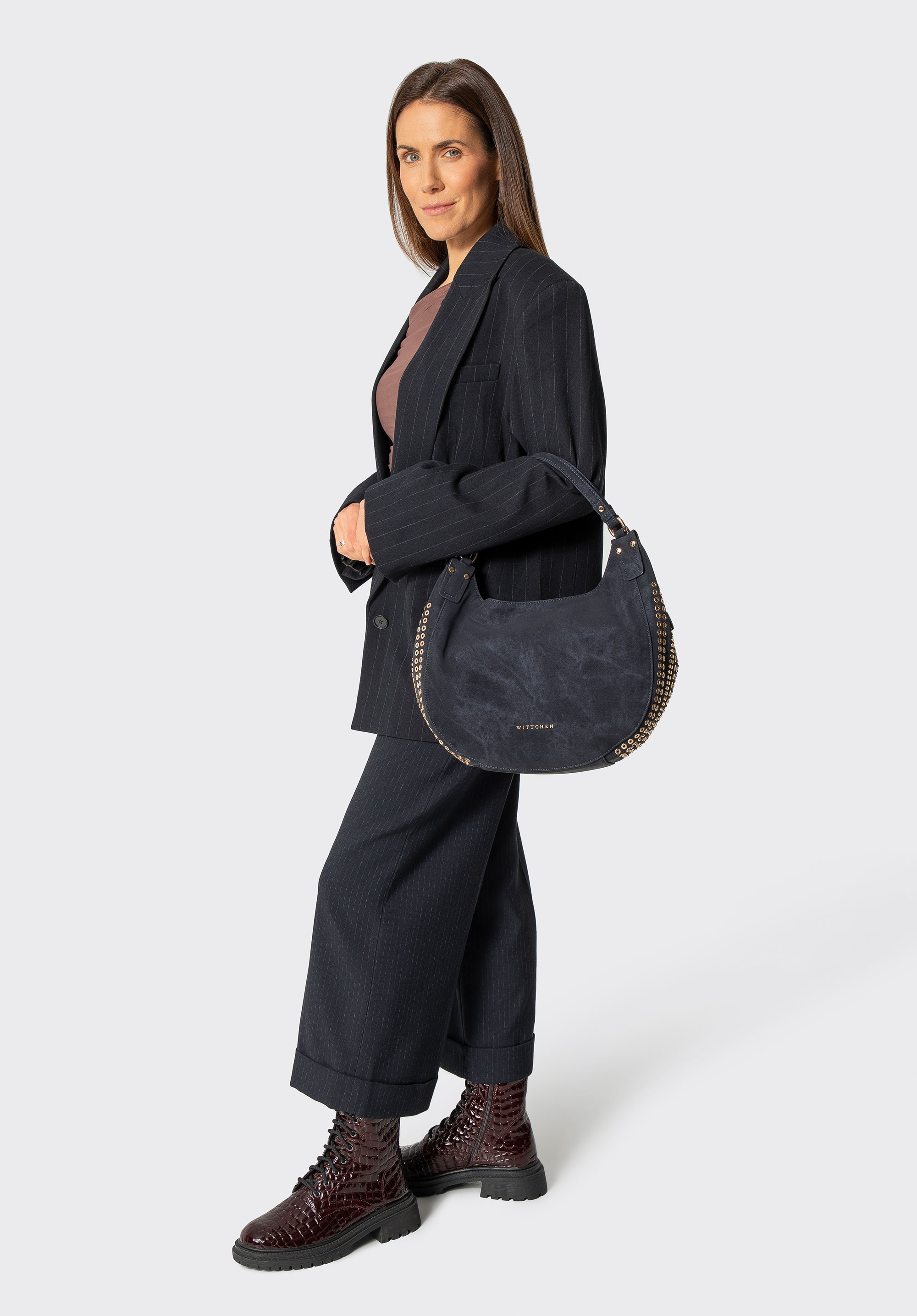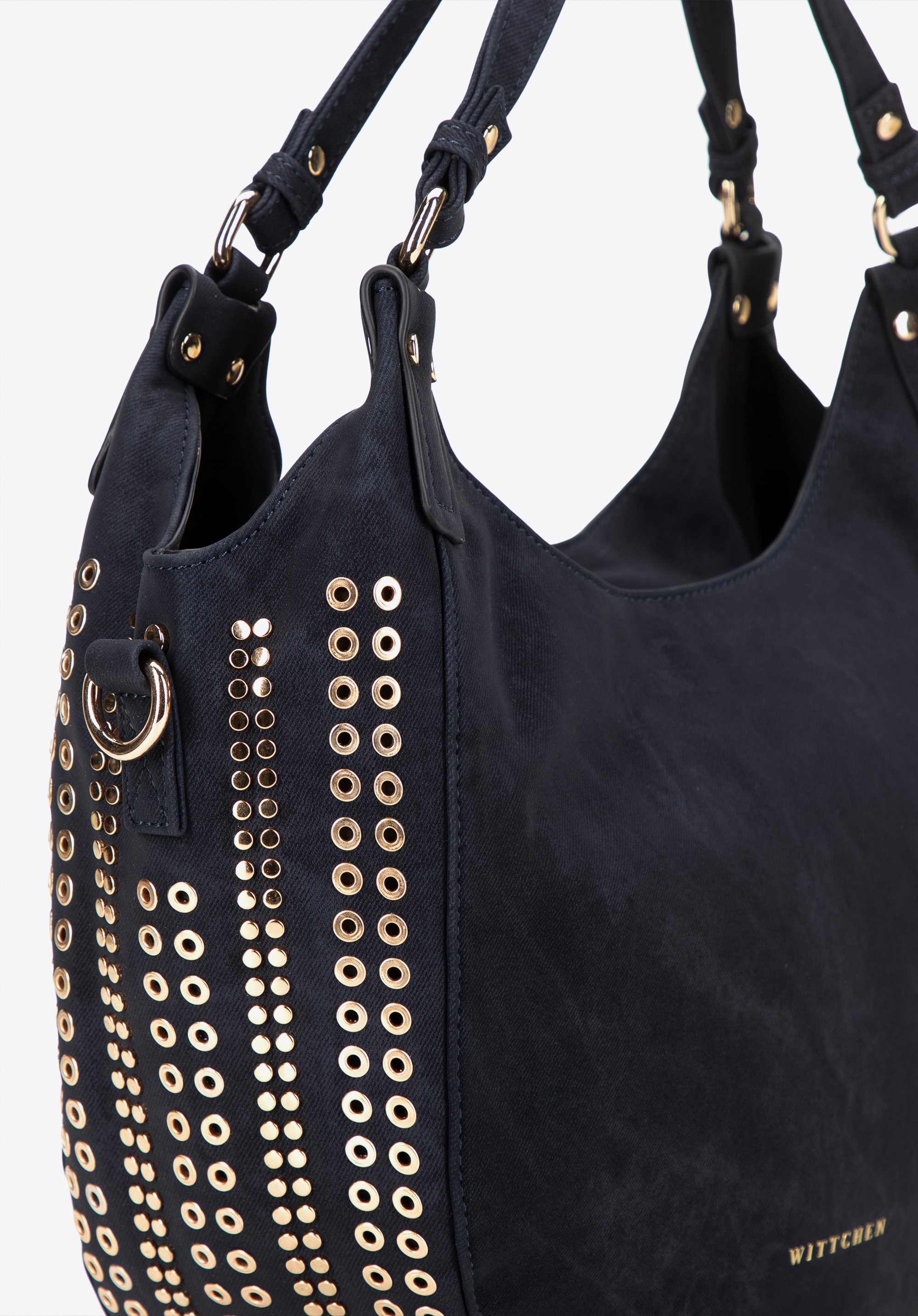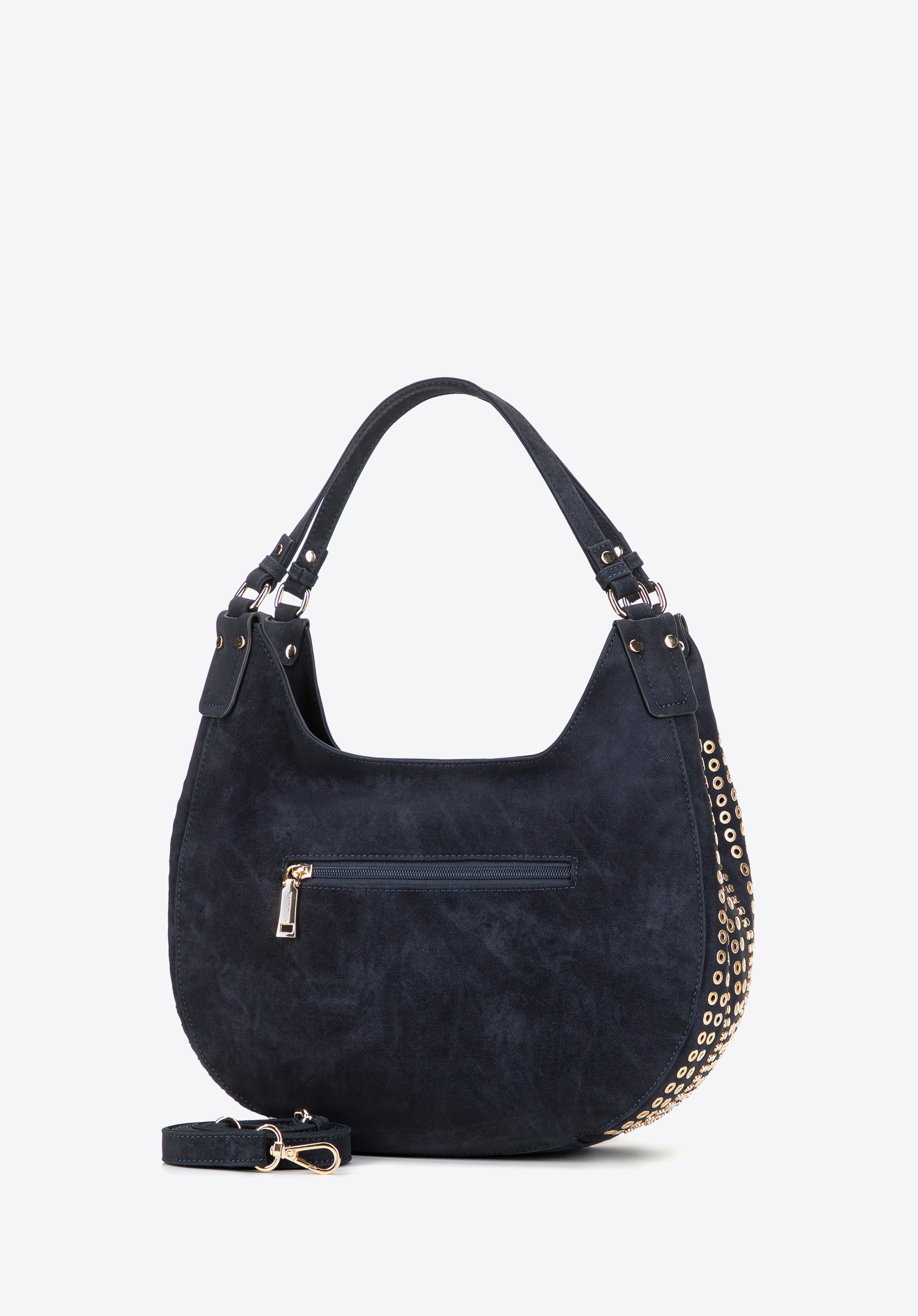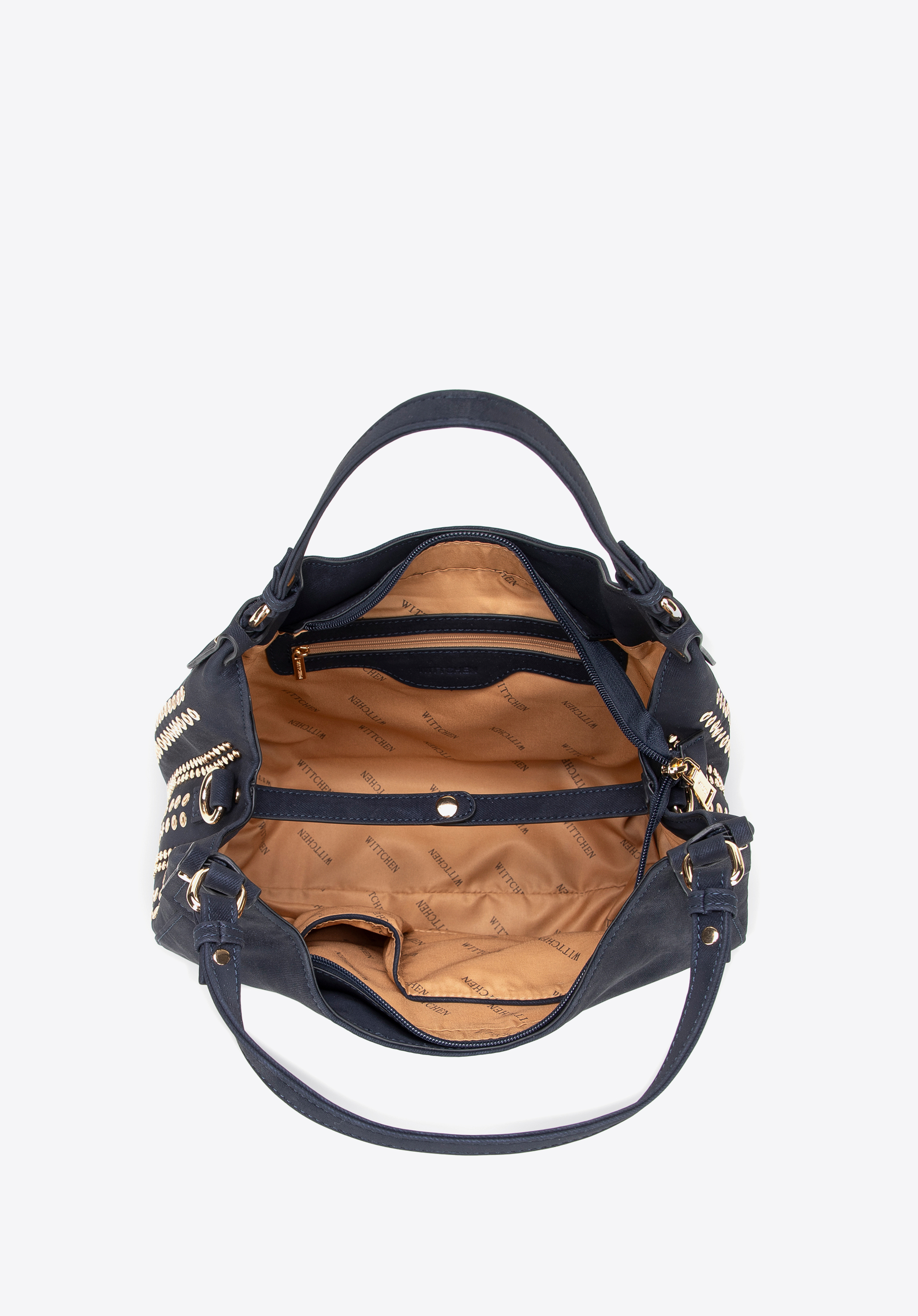 - Дизайн: Сумка в стилі хобо з декоративними шипами з боків , тонкий логотип спереду – сучасний міський дизайн, підкреслений стильними деталями.