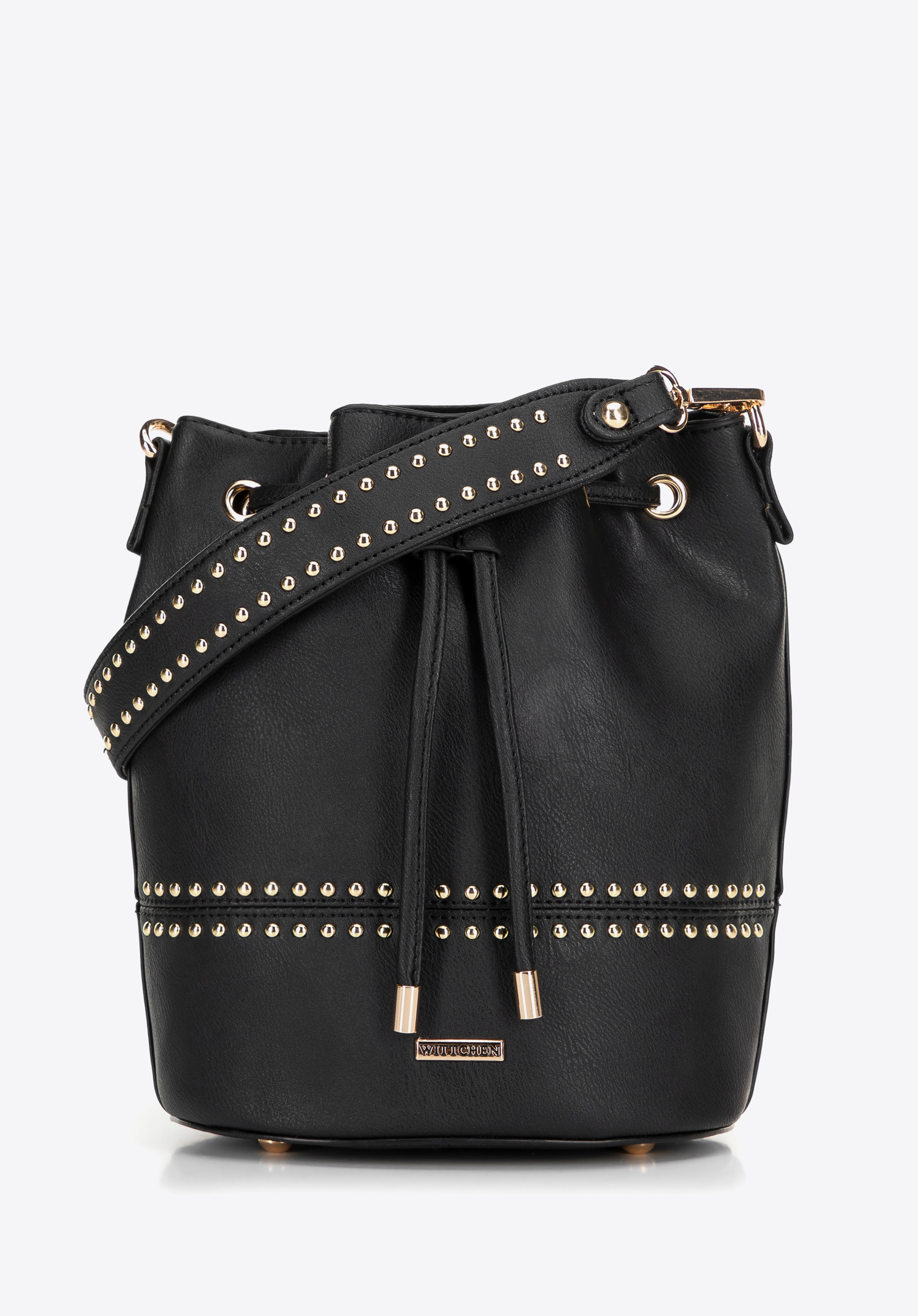 Поєднайте стиль бохо з функціональністю за допомогою цієї унікальної сумки. Її сміливий дизайн підкреслюють блискучі заклепки, що прикрашають ручку та передню частину, що надає їй характерного, модного вигляду. Застібається на зав''язки та має практичні внутрішні кишені, вона ідеально підходить як для повсякденних прогулянок, так і для вечірніх зустрічей. Знімний регульований ремінь дозволяє налаштувати посадку, а чотири металеві ніжки допомагають захистити її від бруду.