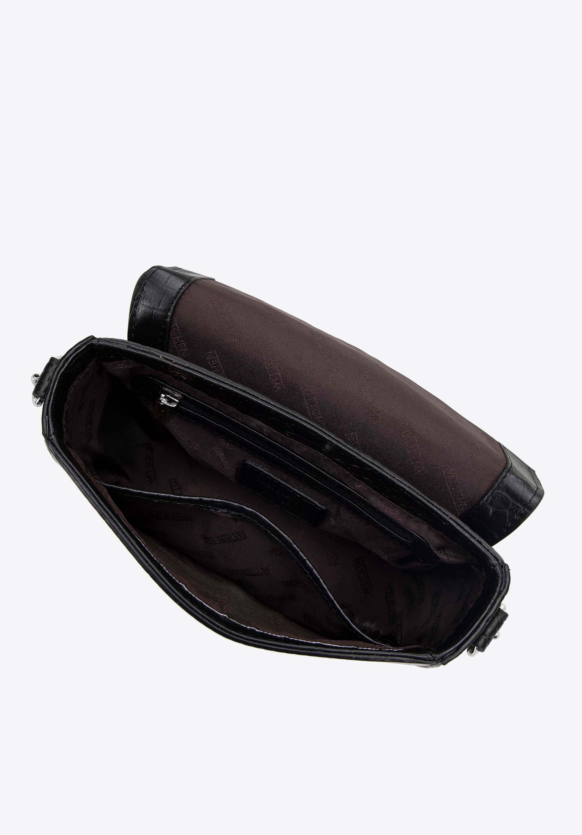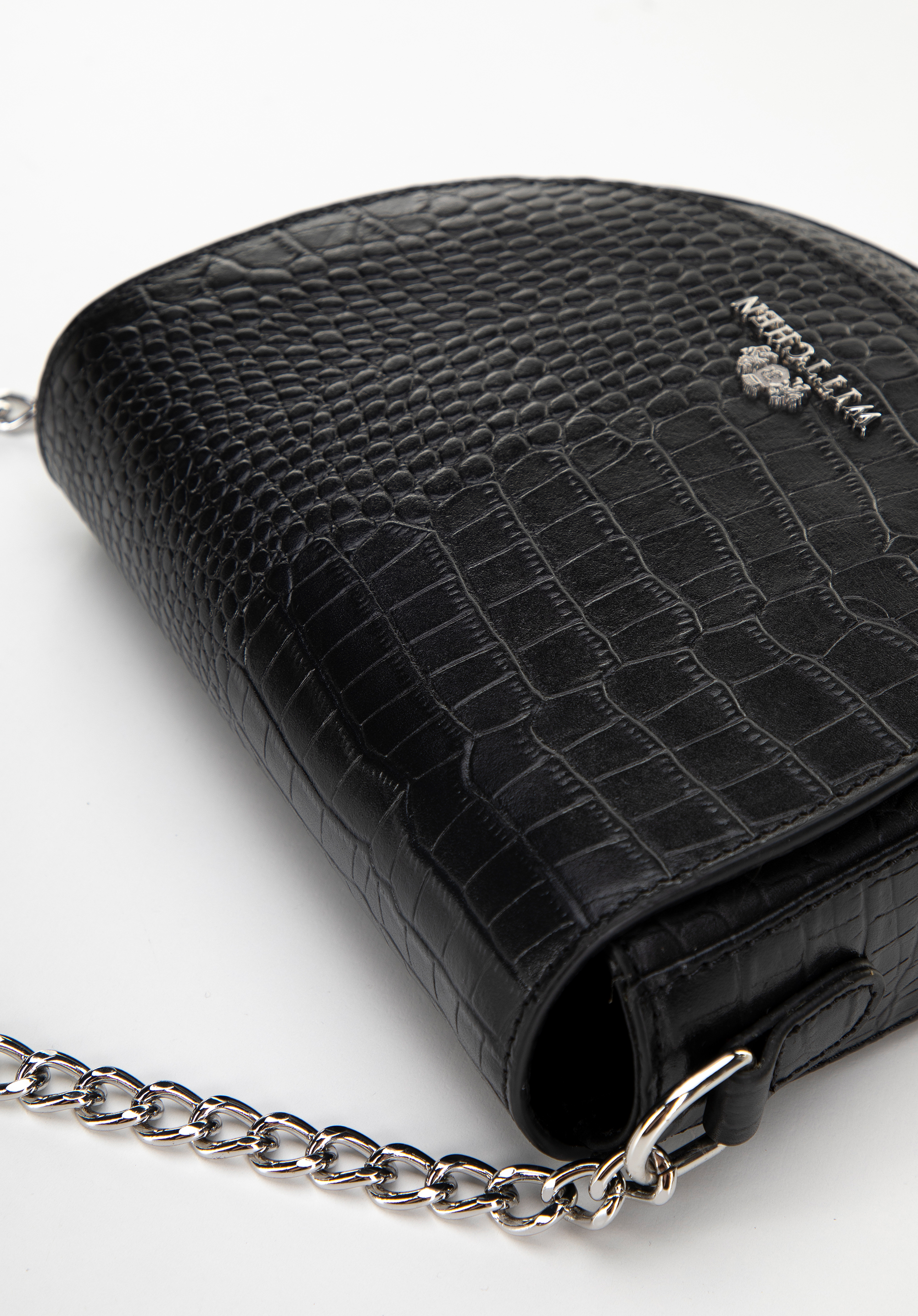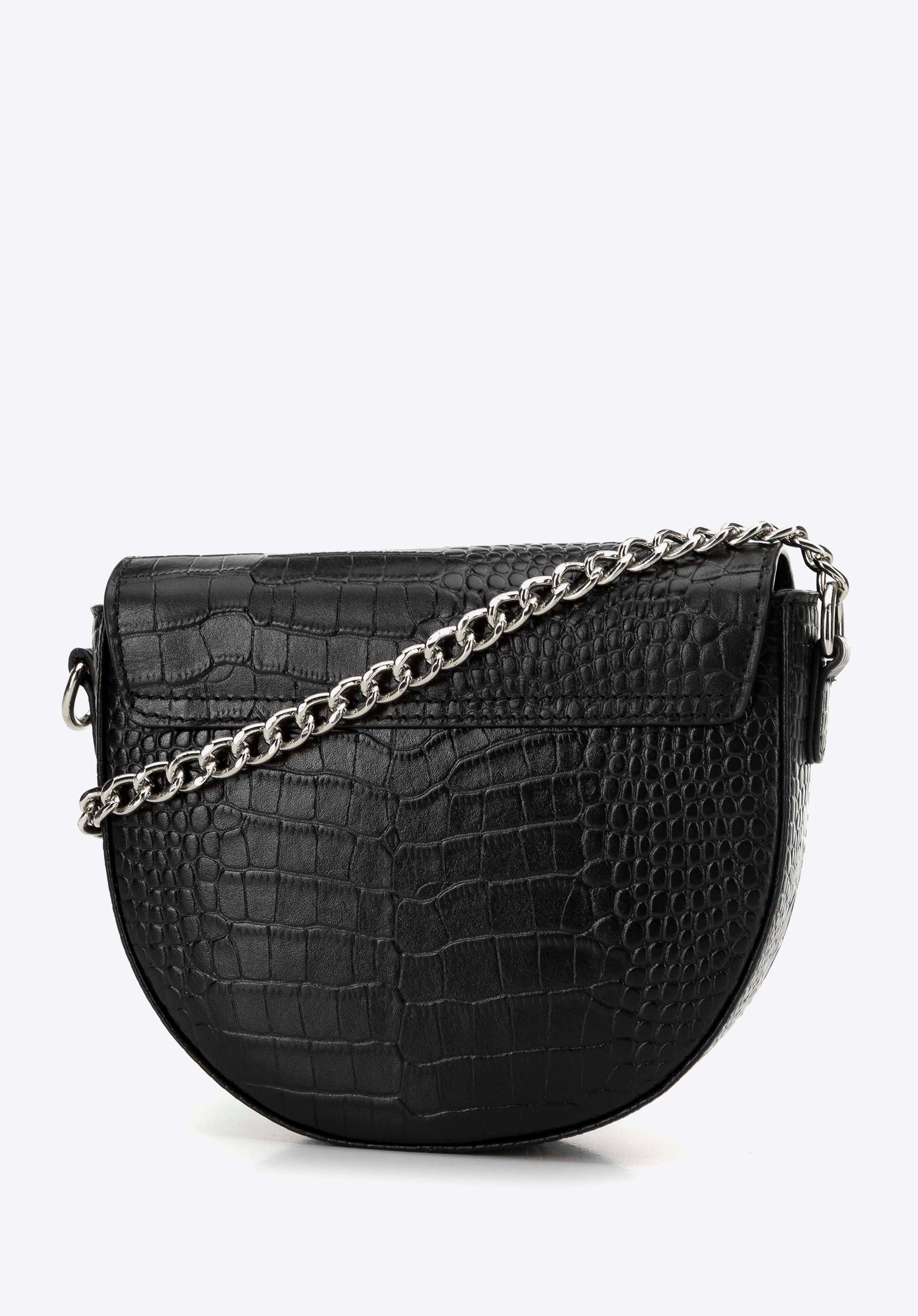 Ось ідеальний вибір для любителів елегантності та класики - наша жіноча шкіряна сумка в стилі saddle bag. Ця унікальна модель поєднує позачасовий шарм із сучасним стилем, вирізняється тонким блиском ланцюжка та елегантним логотипом WITTCHEN.
