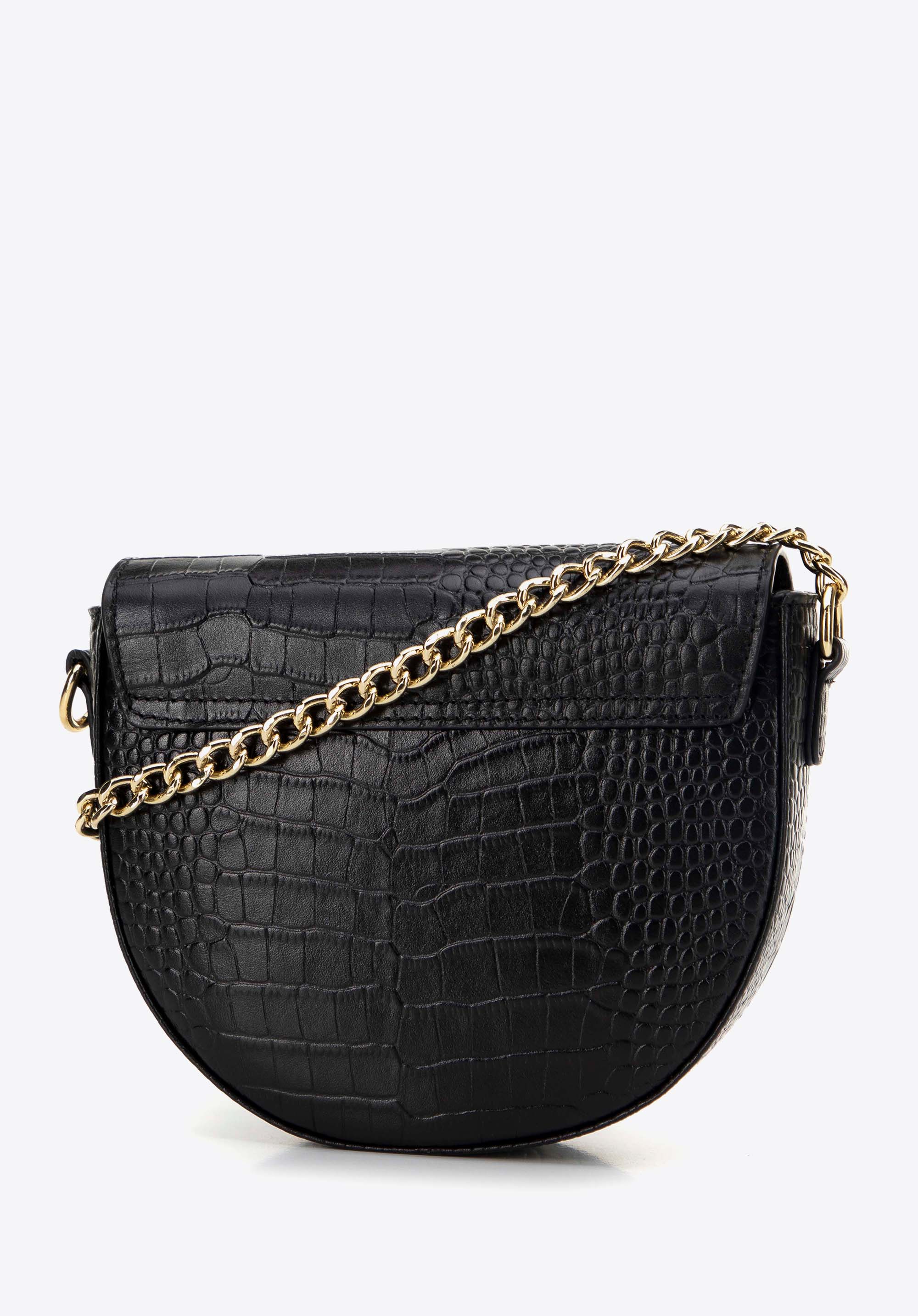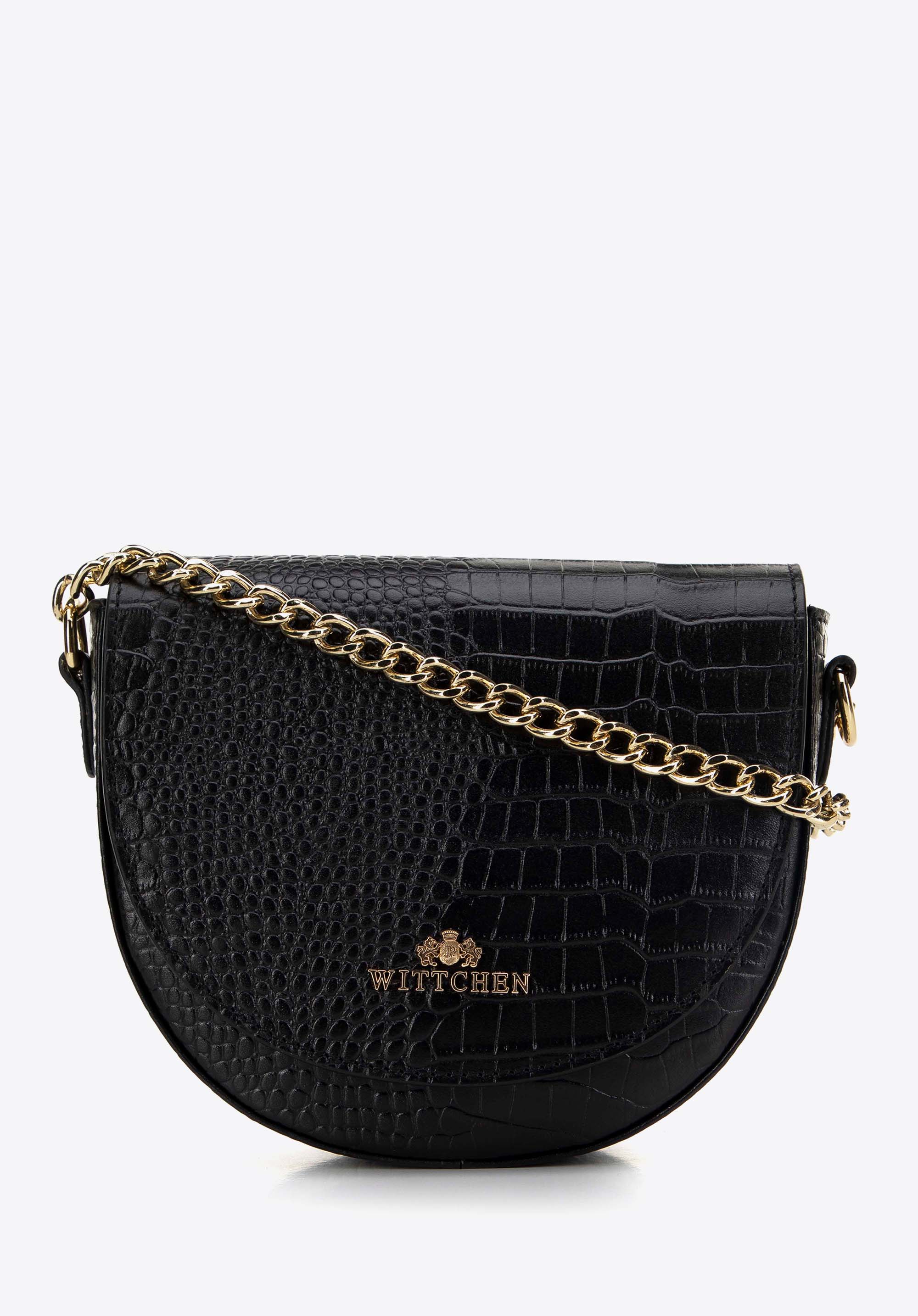 Ось ідеальний вибір для любителів елегантності та класики - наша жіноча шкіряна сумка в стилі saddle bag. Ця унікальна модель поєднує позачасовий шарм із сучасним стилем, вирізняється тонким блиском ланцюжка та елегантним логотипом WITTCHEN.