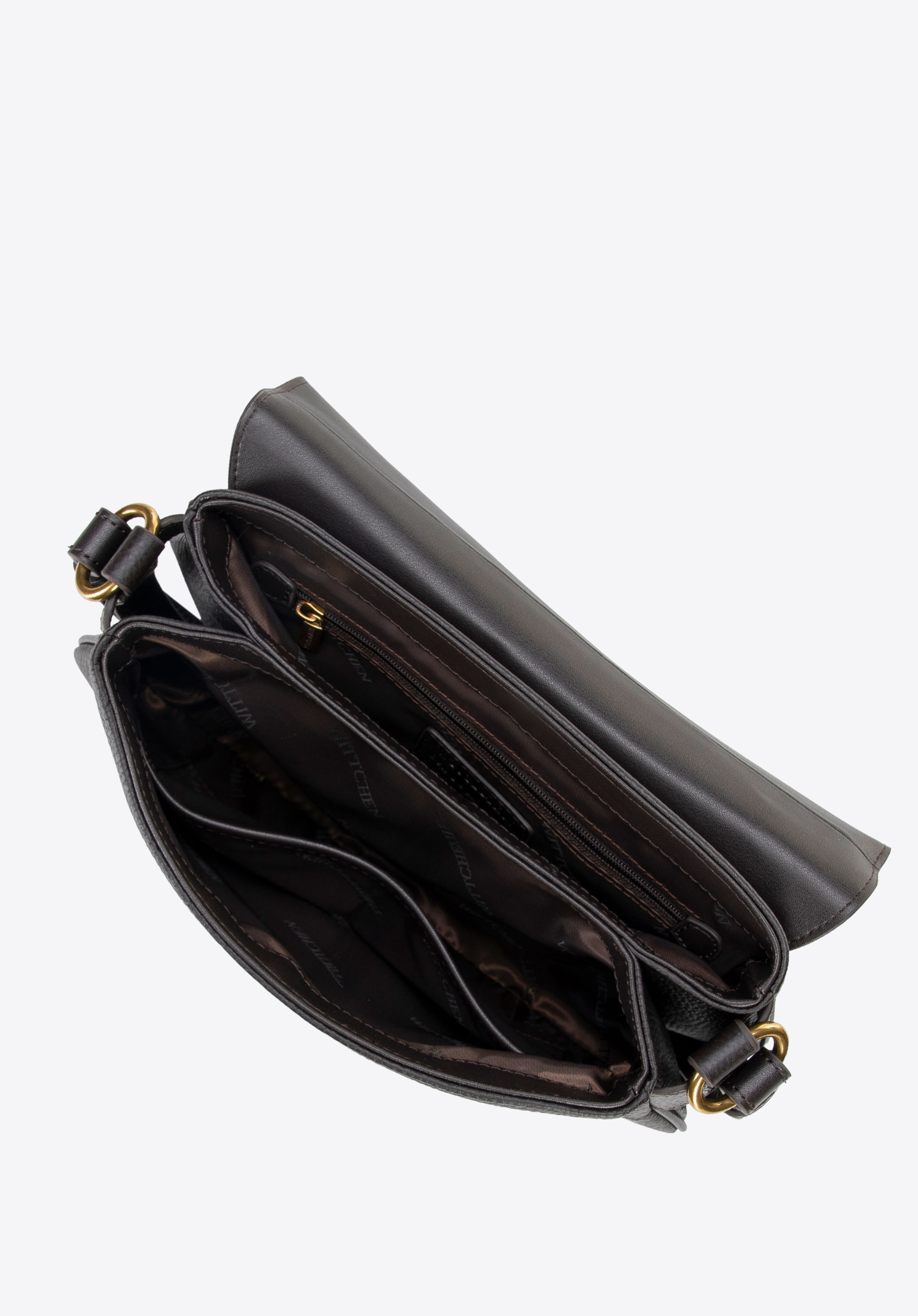 Ця унікальна сумка на плече поєднує позачасовий стиль із повсякденною функціональністю. Корпус виготовлений з високоякісної натуральної шкіри для елегантного вигляду, а ремінець зі шкіроподібної мікрофібри забезпечує комфортне носіння протягом усього дня. Застібається на пряжку, яка не тільки додає елегантності, але й забезпечує швидкий доступ до внутрішніх відділень. Завдяки двом кишеням, в тому числі одній на блискавці, ваші дрібниці завжди будуть ідеально організовані.