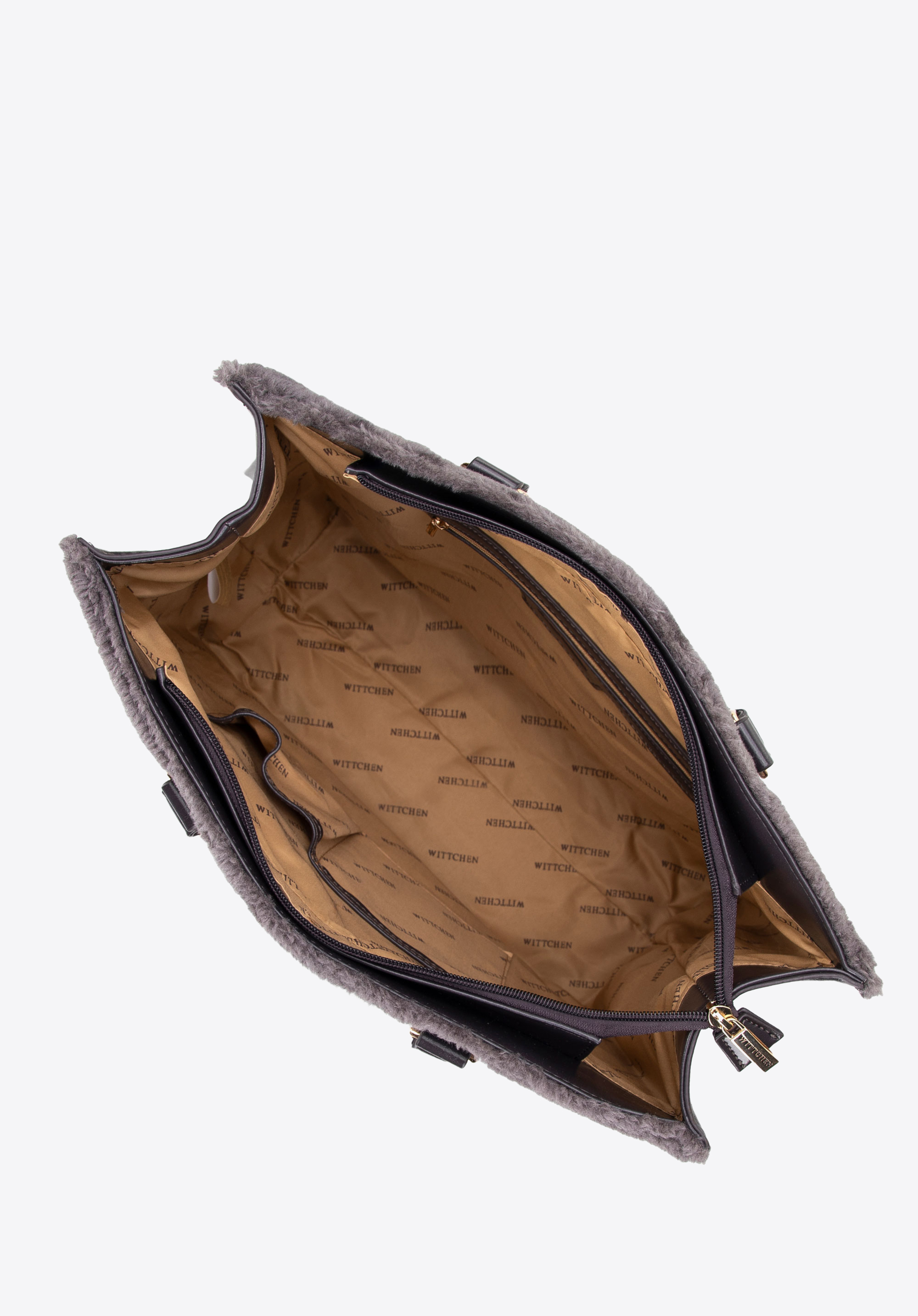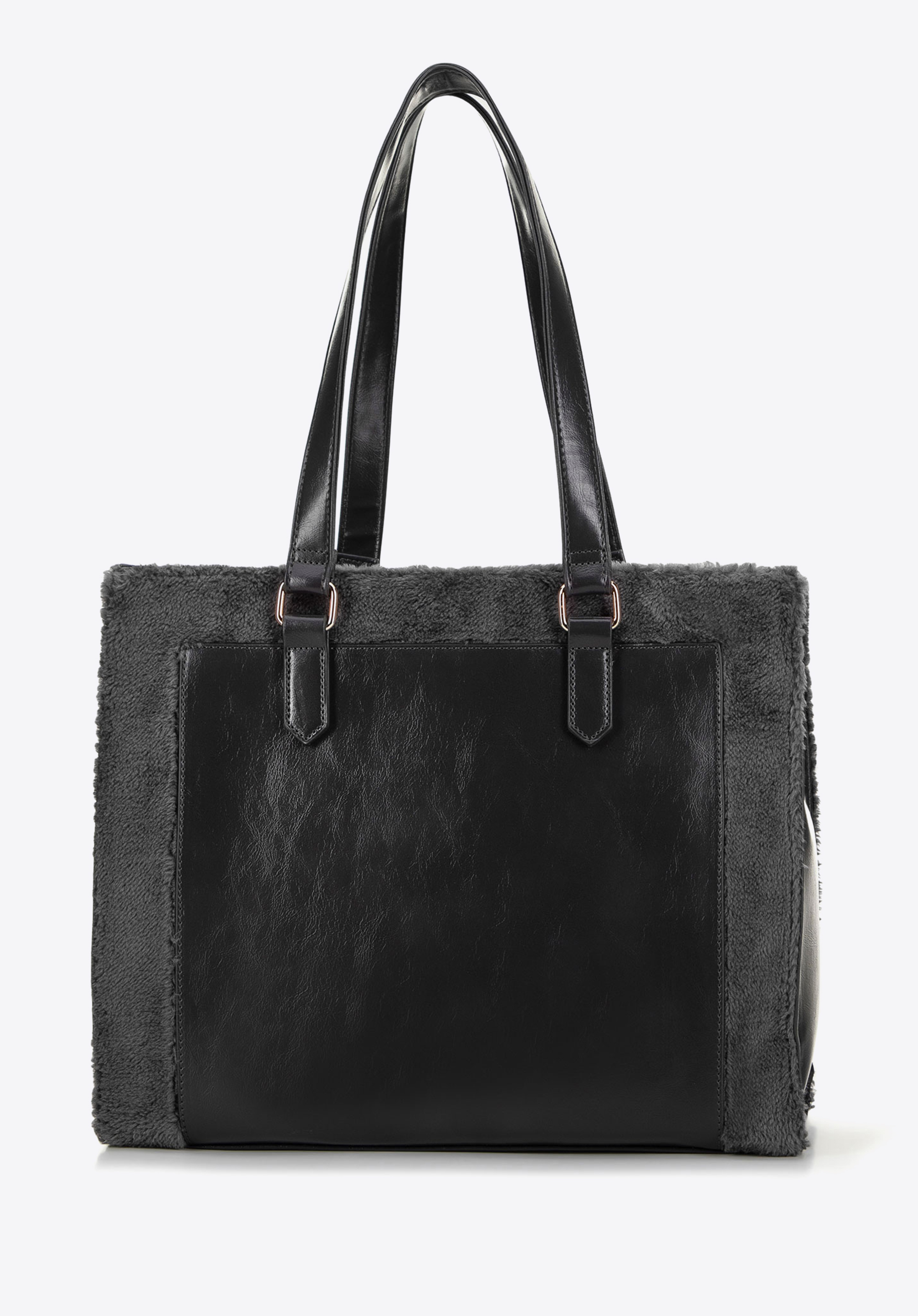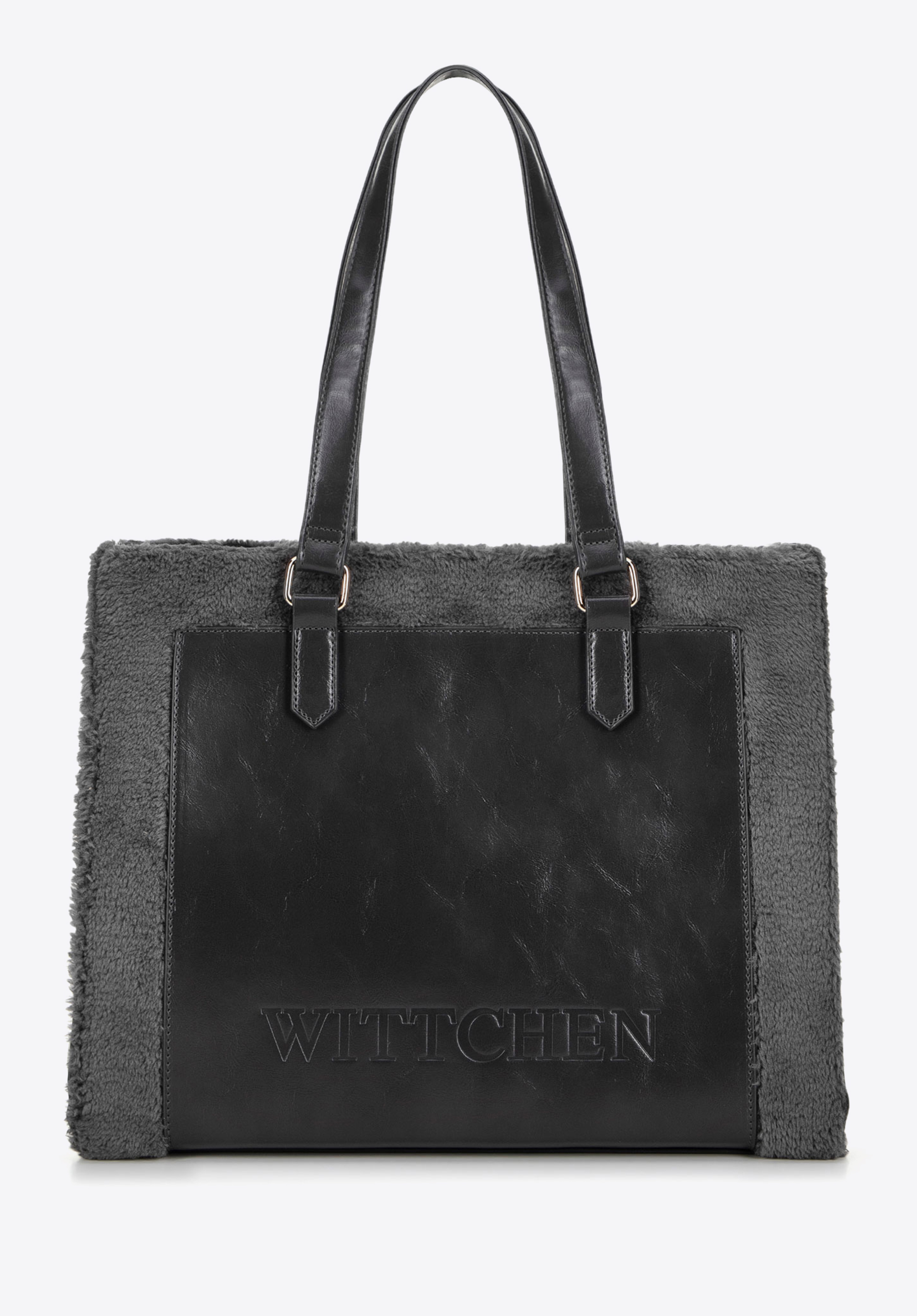Відкрийте для себе нашу елегантну сумку-шоппер з екошкіри з хутряними вставками та великим тисненням логотипу WITTCHEN. Жорстка конструкція та жорстке дно гарантують, що сумка збереже свою форму, навіть коли вона заповнена.