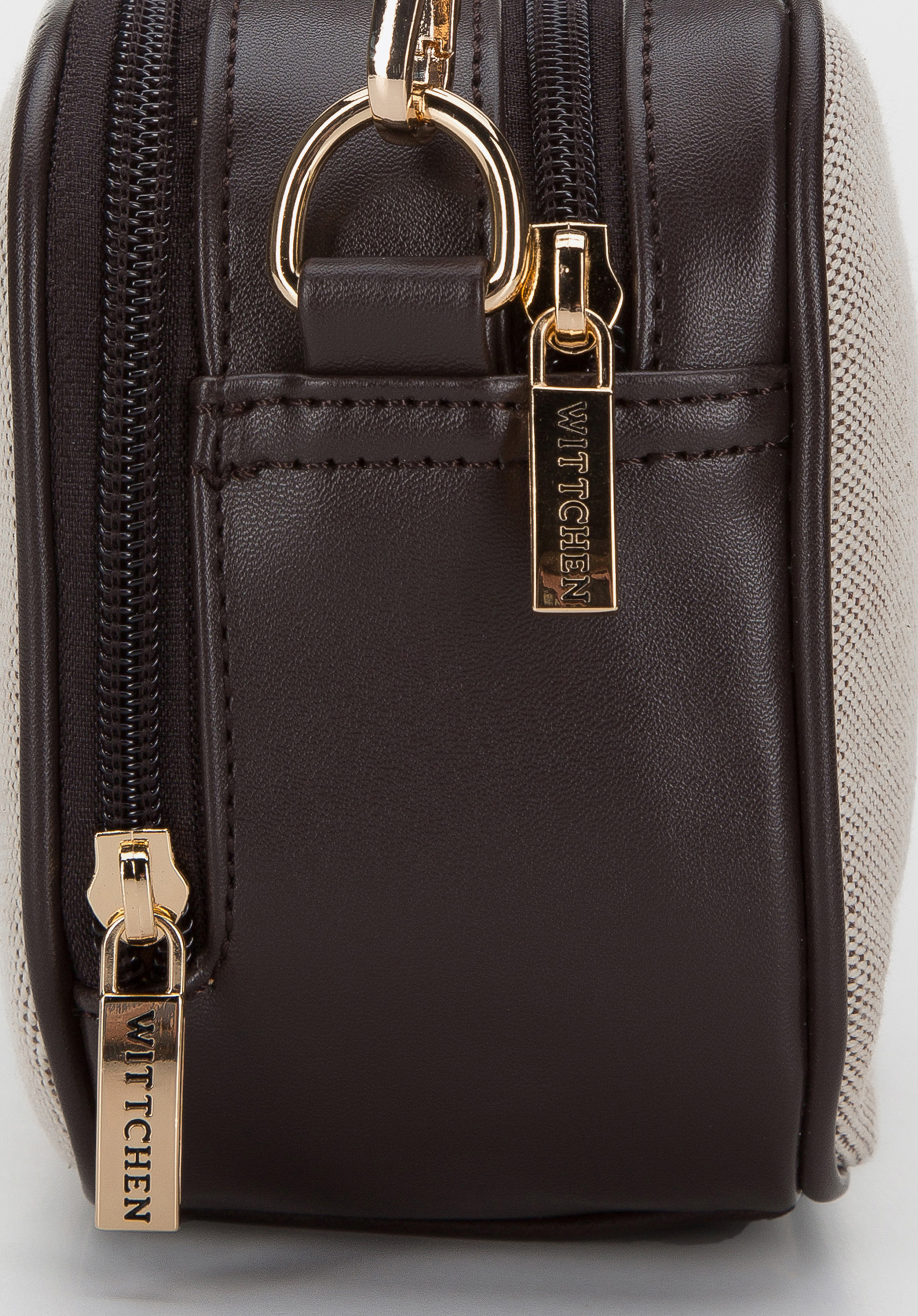 Оригінальна жіноча сумка на кожен день. Вона виготовлена з полотна з написом «WITTCHEN», що робить її невимушеною. Тому вона ідеально підійде для повсякденних нарядів – наприклад, джинсів-бойфрендів і смугастих сорочок або суконь. Це невелика сумочка, але досить містка завдяки гарному плануванню. Має два відділення (одне з відкриттям на всю висоту) і внутрішні кишені, в яких можна легко підтримувати порядок. Всередині можна помістити телефон, гаманець, крем для рук, невеликий блокнот та інші дрібниці. Жіноча двокамерна сумка з екошкіри та тканини – чудовий вибір для жінок, які люблять стильні аксесуари з характером.