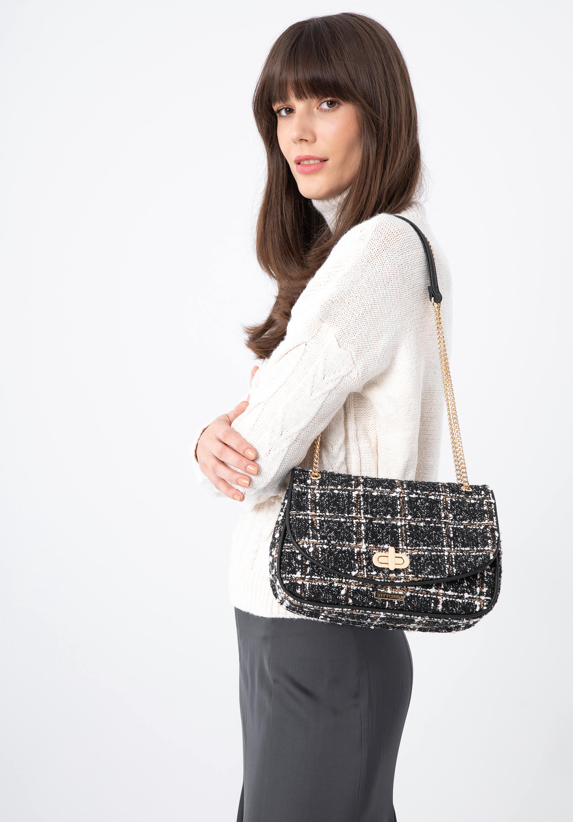 Ця приваблива сумка додасть шику будь-якому вбранню. Вона оброблена тканиною букле з елегантним малюнком, який приверне багато поглядів. Ланцюжок додає блиску, який ви можете носити на плечі або використовувати всю довжину і повісити навхрест. Всередину можна помістити гаманець, телефон, невеликий календар, трохи косметики та дрібниці. Носіть її взимку з елегантним вовняним пальто або зробіть акцент на улюбленій в''язаній сукні. Жіноча сумка-месенджер з тканини букле на ланцюжку - відмінний вибір для любительок аксесуарів з характером.