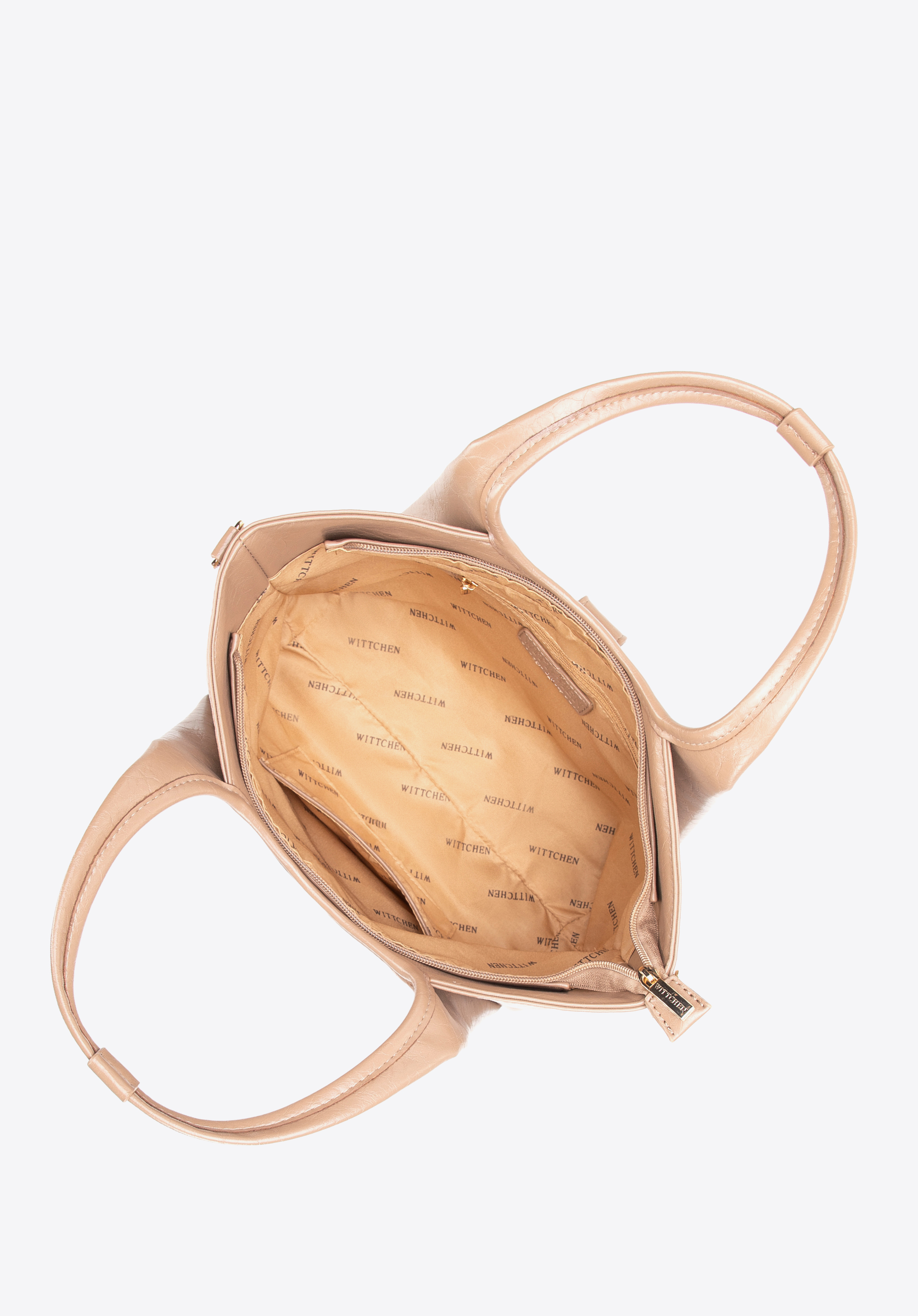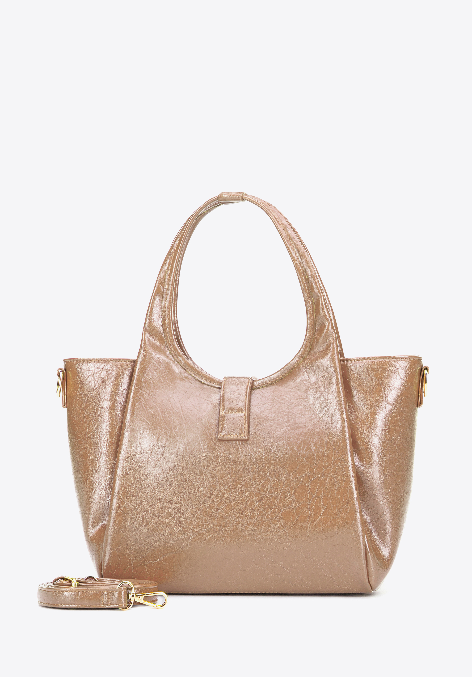 Відкрийте для себе цю сумочку , яка поєднує класичний вишуканий вигляд із практичними функціями. Виготовлена зі штучної шкіри , вона має елегантне оздоблення та ніжний блиск . Дві ручки додають їй позачасового вигляду, а знімний регульований ремінець дозволяє носити її за будь-якої нагоди. Застібка-блискавка, доповнена декоративною магнітною застібкою, забезпечує безпеку, підкреслюючи сучасний дизайн сумочки.