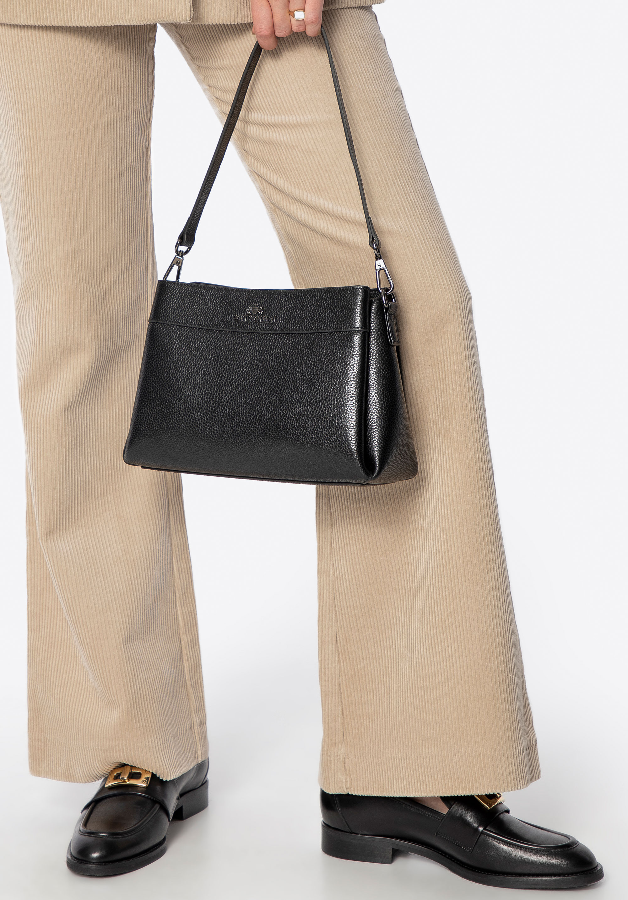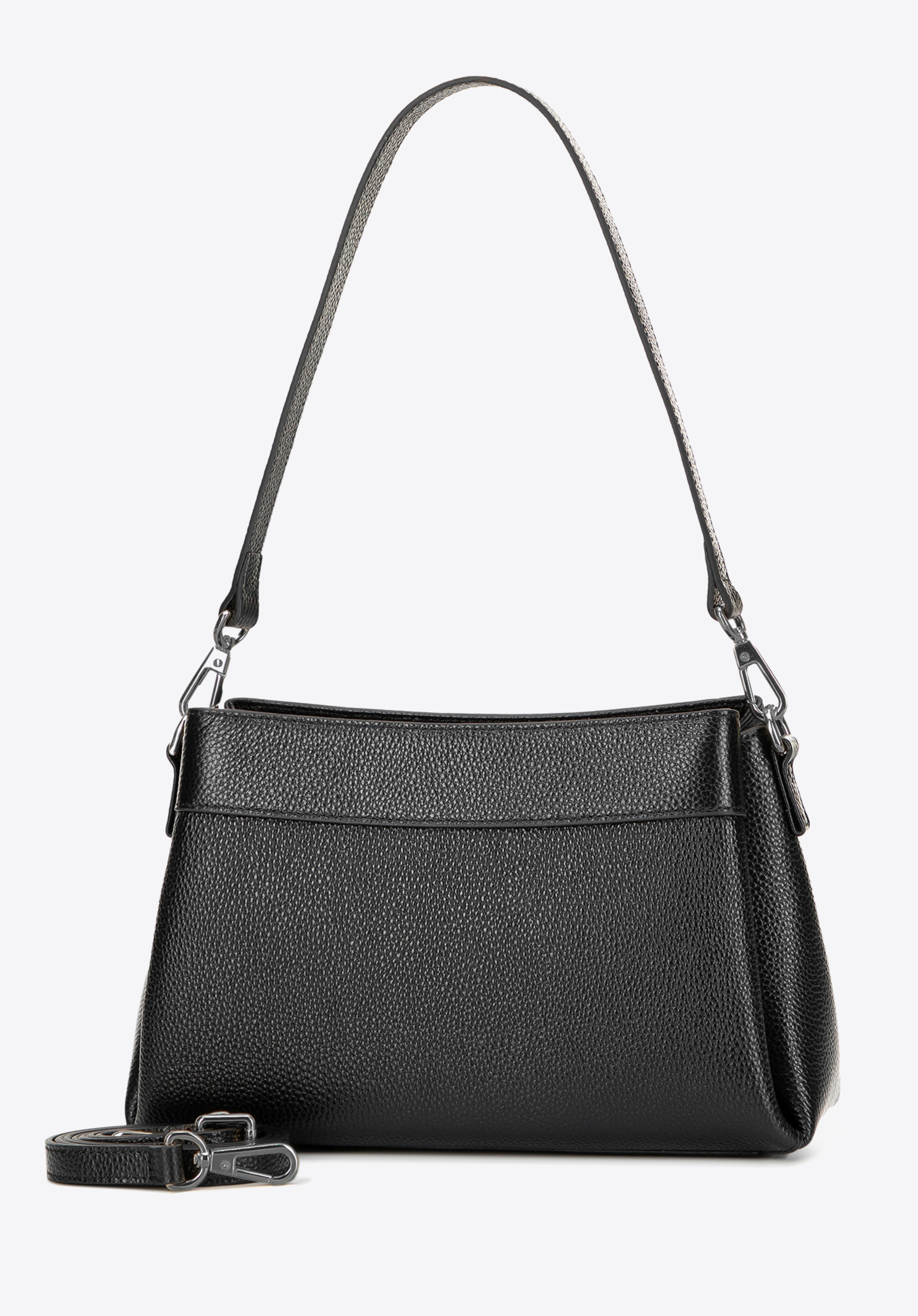 Відкрийте для себе виняткову елегантність та функціональність нашої жіночої сумки, виготовленої з зернистої натуральної шкіри. Ця модель поєднує стиль та практичність, що робить її ідеальним доповненням до будь-якого гардеробу. Внутрішній простір складається з трьох відділень, а середнє має дві кишені — одну відкриту та одну на блискавці — щоб допомогти вам організувати ваші щоденні речі. Завдяки знімній ручці та регульованому знімному ремінцю ви можете носити сумку в руці, на плечі або через плече.