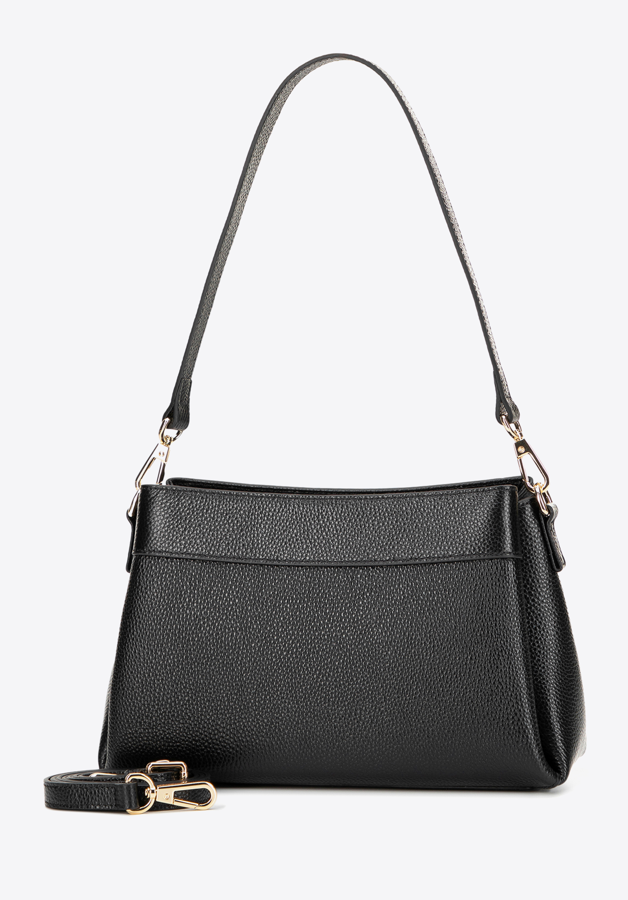 Відкрийте для себе виняткову елегантність та функціональність нашої жіночої сумки, виготовленої з зернистої натуральної шкіри. Ця модель поєднує стиль та практичність, що робить її ідеальним доповненням до будь-якого гардеробу. Внутрішній простір складається з трьох відділень, а середнє має дві кишені — одну відкриту та одну на блискавці — щоб допомогти вам організувати ваші щоденні речі. Завдяки знімній ручці та регульованому знімному ремінцю ви можете носити сумку в руці, на плечі або через плече.