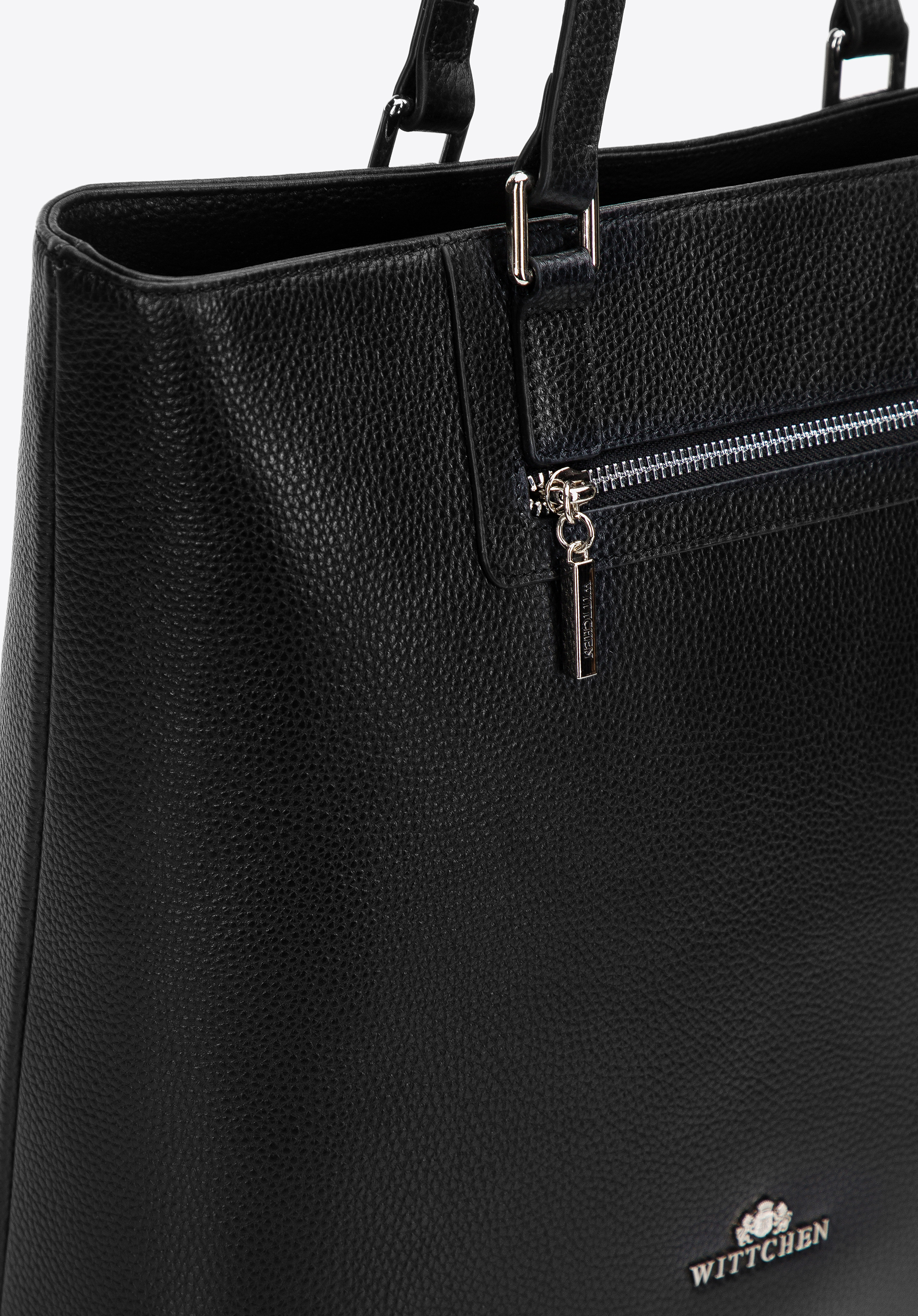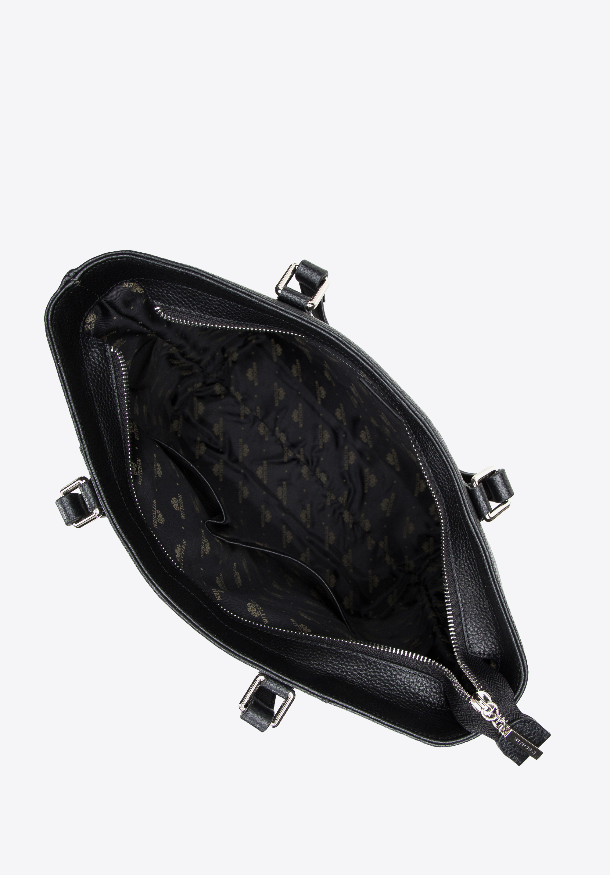 аксесуар із жорсткою структурою відкриває добре організований інтер’єр, у якому можна помістити документи формату А4, невелику косметичку, пляшку з водою, гаманець та інші необхідні речі. З легкістю помістіть усі свої щоденні речі та зберігайте їх у належному порядку в цій сумці для покупок. Застібка-блискавка зберігає все в безпеці, що робить цю сумочку ідеальним супутником для дня. Ця велика
