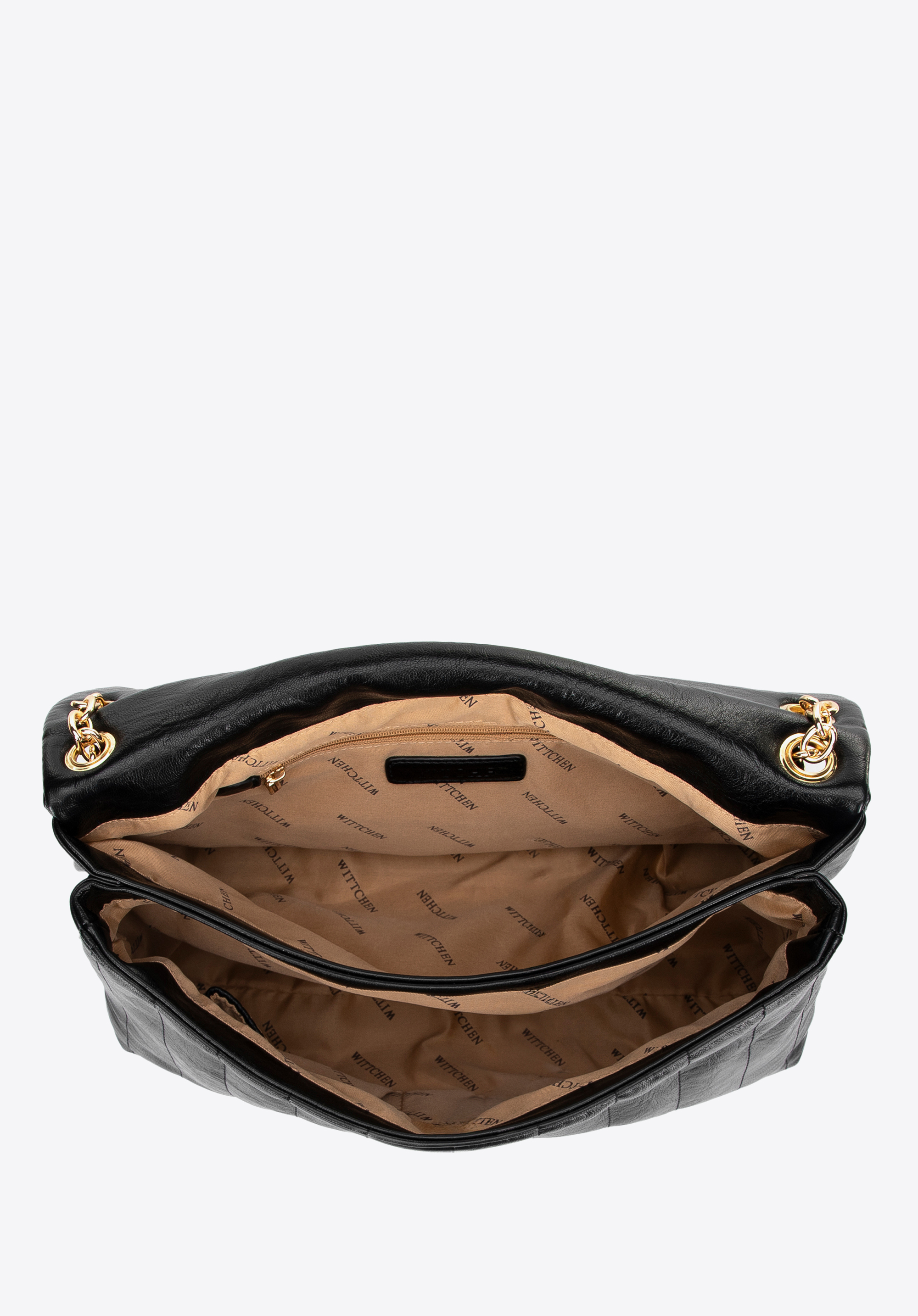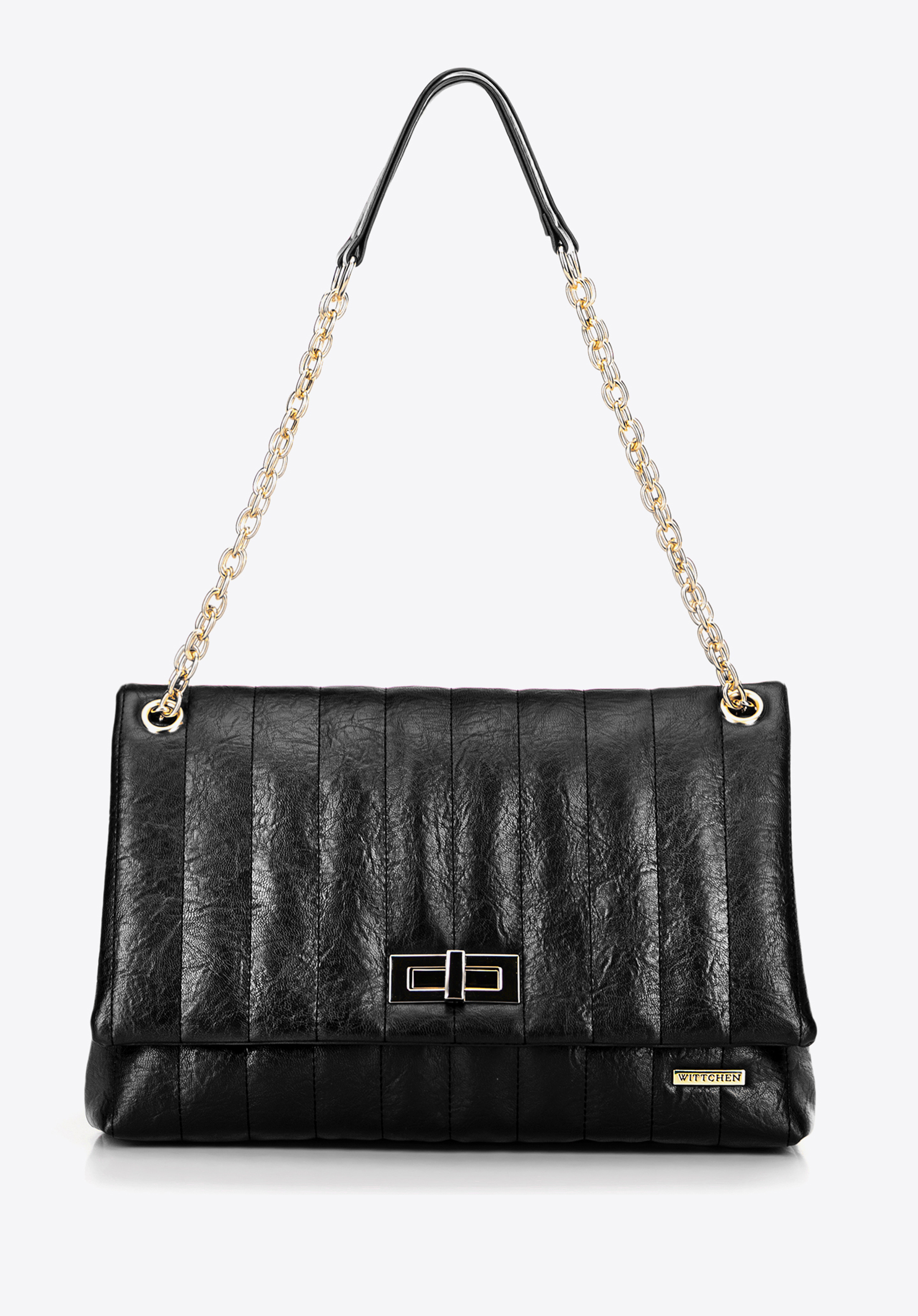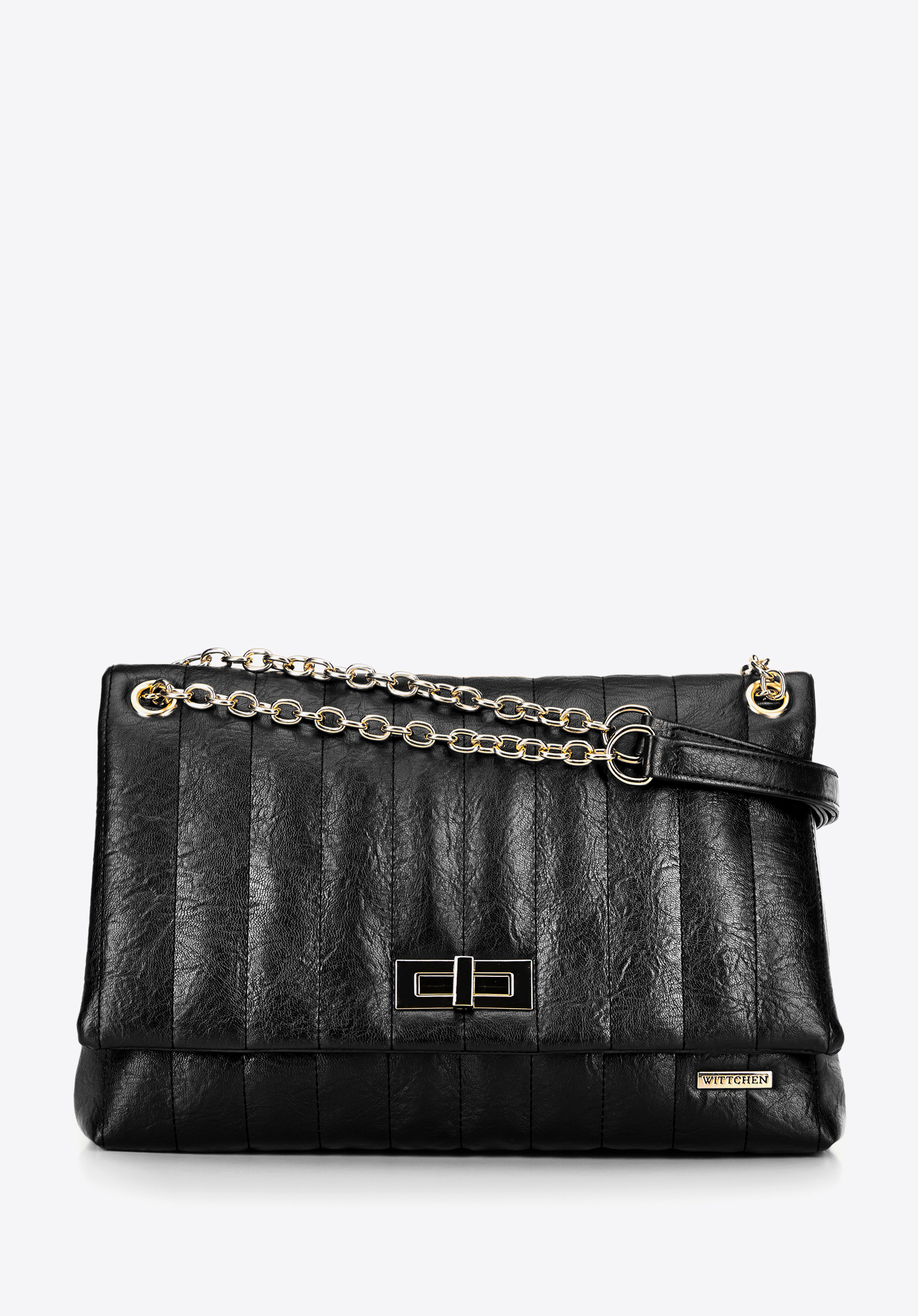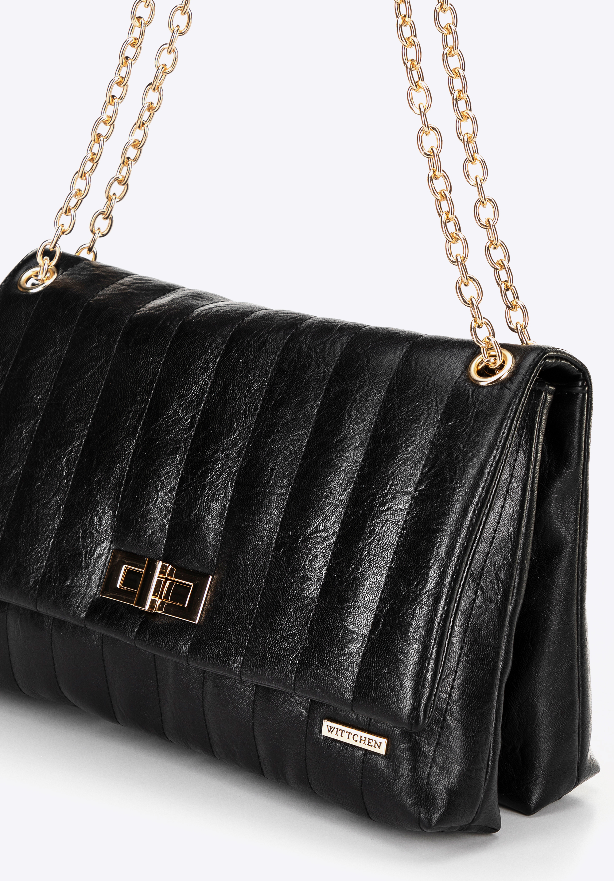 Стильна та надзвичайно функціональна – ця сумка через плече поєднує позачасовий дизайн із сучасними деталями. Виготовлена з екошкіри, вона привертає увагу декоративними швами та металевим ланцюжком, що додає витонченості. Клапан із декоративною пряжкою підкреслює її елегантний стиль, а тонкий логотип бренду на передній частині надає ексклюзивного відчуття. Завдяки просторому внутрішньому простору з трьома кишенями, включно з однією на блискавці, вона легко вміщає всі необхідні речі. Її розмір також дозволяє зручно зберігати документи формату A4.