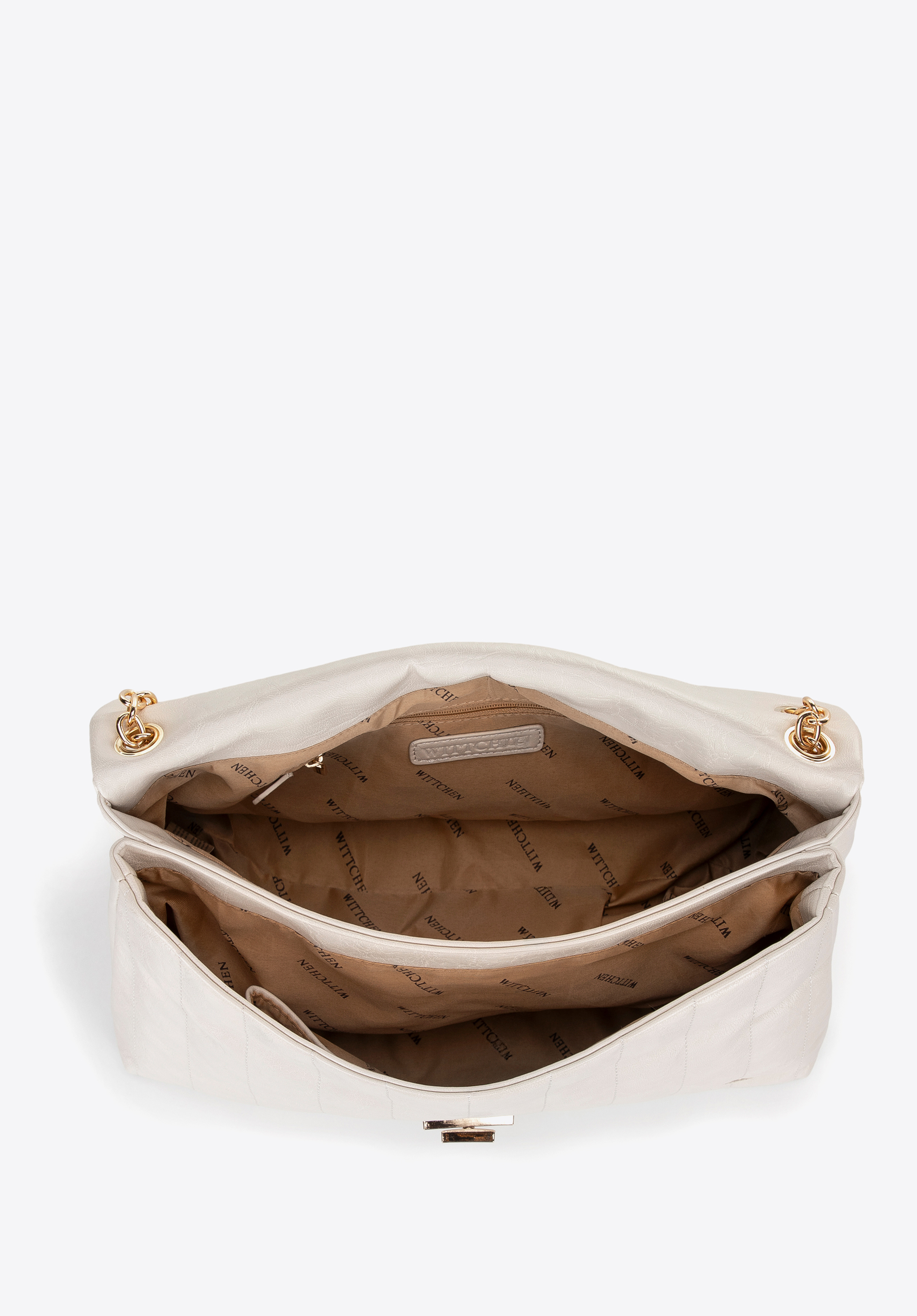 Стильна та надзвичайно функціональна – ця сумка через плече поєднує позачасовий дизайн із сучасними деталями. Виготовлена з екошкіри, вона привертає увагу декоративними швами та металевим ланцюжком, що додає витонченості. Клапан із декоративною пряжкою підкреслює її елегантний стиль, а тонкий логотип бренду на передній частині надає ексклюзивного відчуття. Завдяки просторому внутрішньому простору з трьома кишенями, включно з однією на блискавці, вона легко вміщає всі необхідні речі. Її розмір також дозволяє зручно зберігати документи формату A4.