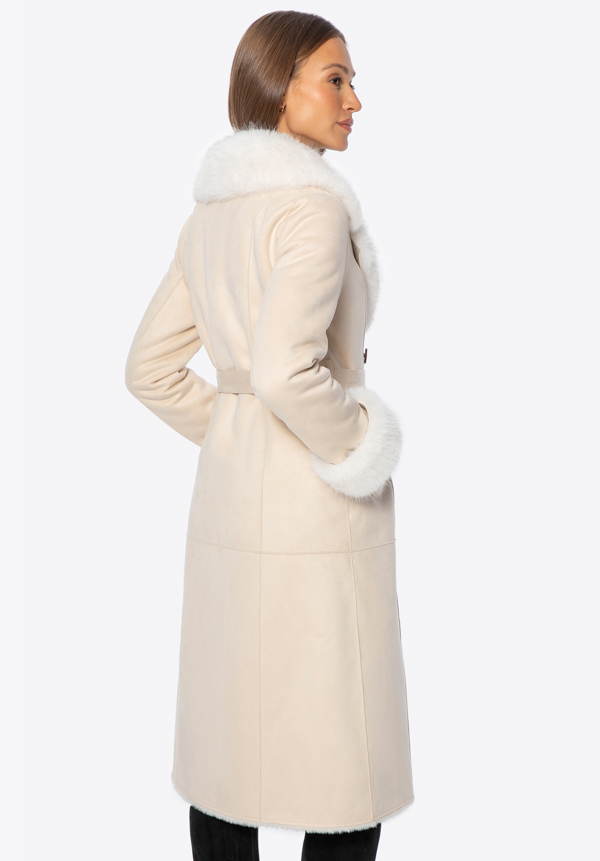 Шукаєте пальто, яке поєднує в собі позачасову елегантність і комфорт для щоденного носіння? Ця модель із декоративним коміром зі штучного хутра — справжня квінтесенція жіночого стилю для прохолодних днів. Ретельно продумане до найдрібніших деталей, воно ідеально підкреслює силует і додає шарму будь-якому образу — від офіційного до повсякденного. Виготовлене з м’якого, легкого у догляді поліестеру, пальто забезпечує тепловий комфорт і водночас залишається легким у носінні. Приталений крій із регульованим поясом красиво моделює талію, а делікатні прострочки надають виробу витонченого вигляду.